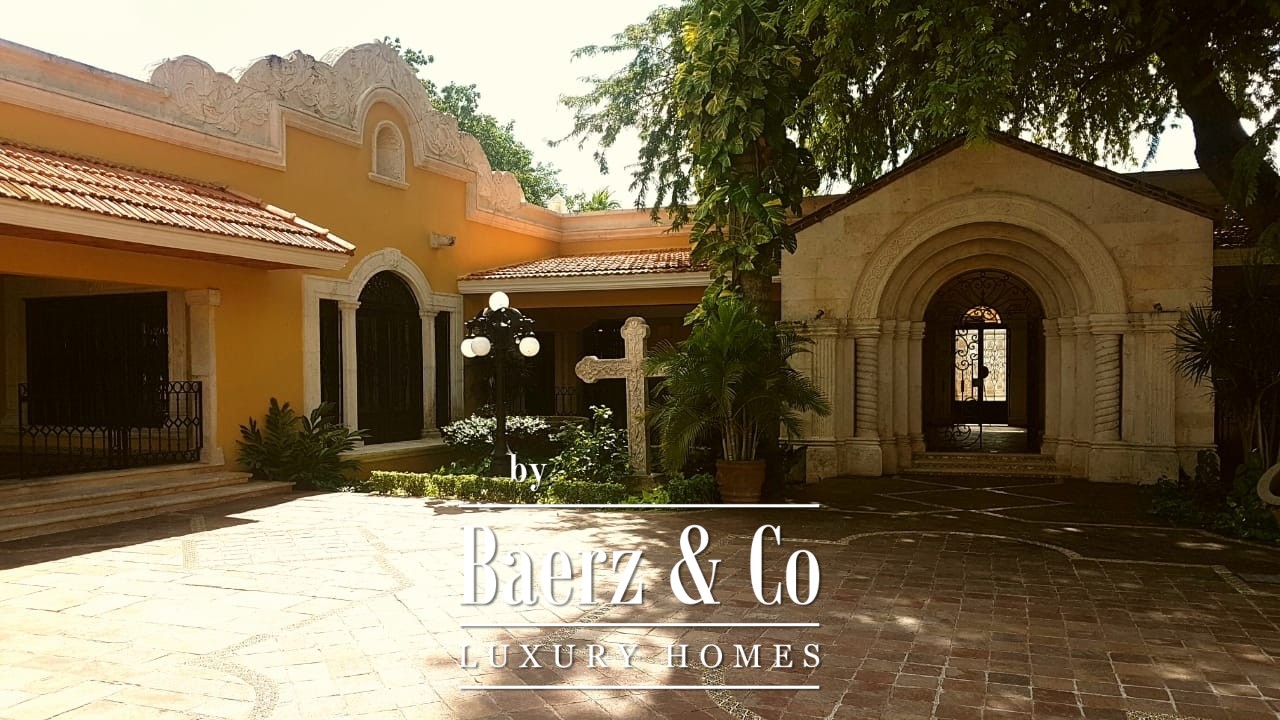 Somewhat discrete in one of the most traditional and sought-after areas known as Itzimna in the city of Merida, you will discover “Los Aluxes” Manor house. With its 4056 square meters of land and 1133 square meters of construction, this magical property has it all. Great spaces built with all the luxury for you to enjoy all year round. The house has in total 5 bedrooms with 5 bathrooms, all with unique design. At the entrance you will find a great façade that only invites to imagine the interior of the property. Spectacular spaces of living anteroom and dining room will greet you with the sensation of being in your very own palace. Floors made out of carrara marble, custom made wrought iron make a one of a kind piece with import stained glass that form part of all the main windows. All carpentry made out of fine hard wood in its beams. Hand cut stone columns with great design are laid out through all the residence, combined with exquisite rustic volcanic stone floors. It´s domes that were custom made and designed exclusively for the property make the interior even more beautiful. In the exterior you will find fascinating gardens and lush and exotic vegetation that surround this exclusive mansion, with an enormous pool at the end of the property that has it´s own terrace and bathrooms. To the side your own rustic chapel. “Los Aluxes” Manor makes for those who come near forget where they were headed to and feel a pleasant sensation of harmony and peace.