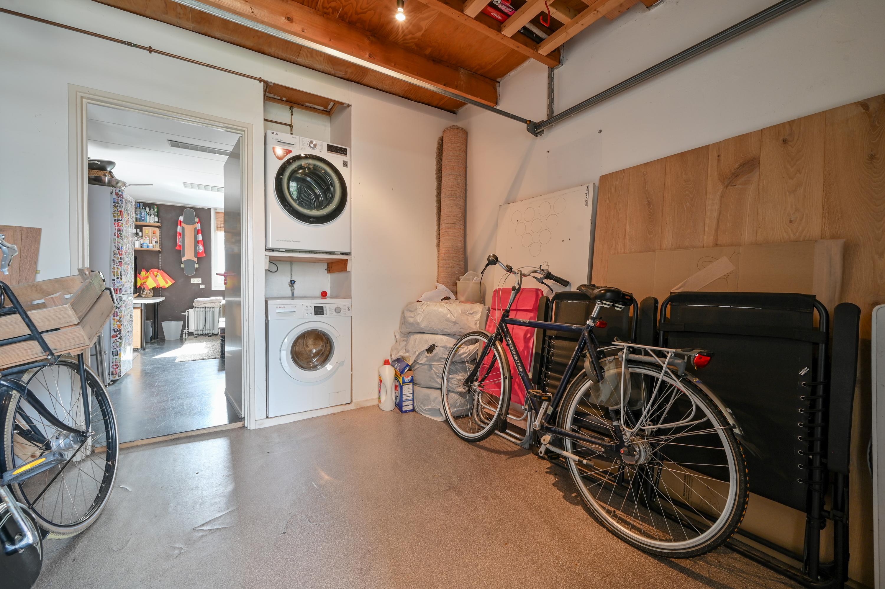The garage is practically laid out and divided into two sections: at the front, there is a convenient storage area with connections for a washing machine and dryer, while the rear is currently used as an atmospheric lounge area — a versatile extra living space. The house is also well-equipped: a spacious driveway with room for at least three cars, a charging point for an electric vehicle, and 14 solar panels contribute to comfortable and future-proof living. The generous 400 m² plot completes the picture and enhances the sense of space around the property.