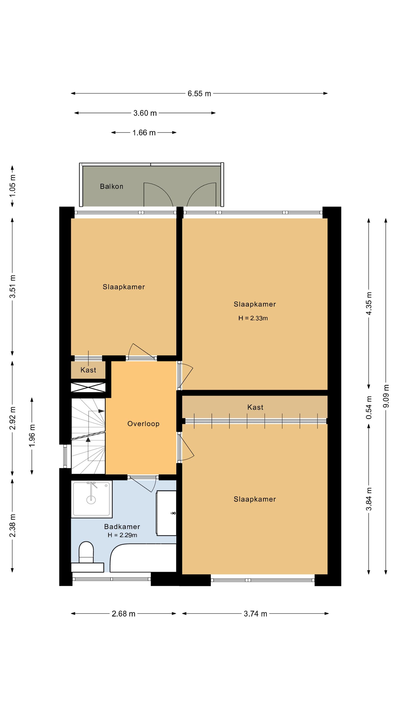 The second floor is surprisingly spacious and bright. The landing is generously sized and ideal for use as a workspace or home office. Thanks to the windows in the stairwell, there is an abundance of natural light, creating an open and pleasant atmosphere.