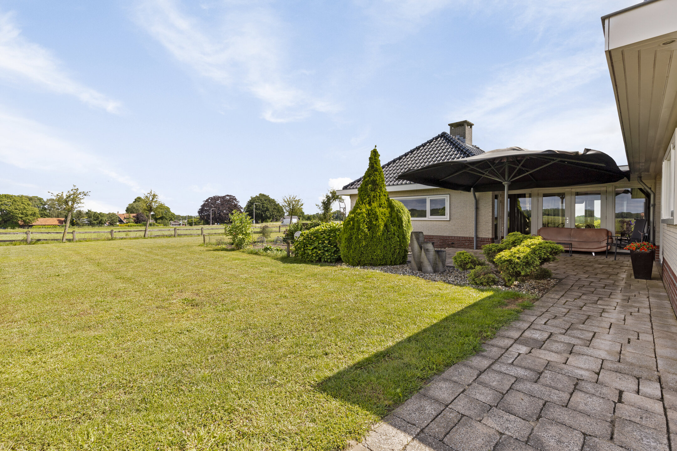 Here you experience the land, the weather and the seasons, but above all you experience nature. The current residents have put their heart and soul into making this a true Garden of Eden, with an eye for biodiversity and aesthetics. The colorful borders are a poem of color and form throughout the garden. At the back of the garden, half an acre has been sown with wildflowers, and this is something spectacular; around May and June it is a sensory feast of fragrance and color here, due to the many thousands of cornflowers, chamomile buds and poppies.