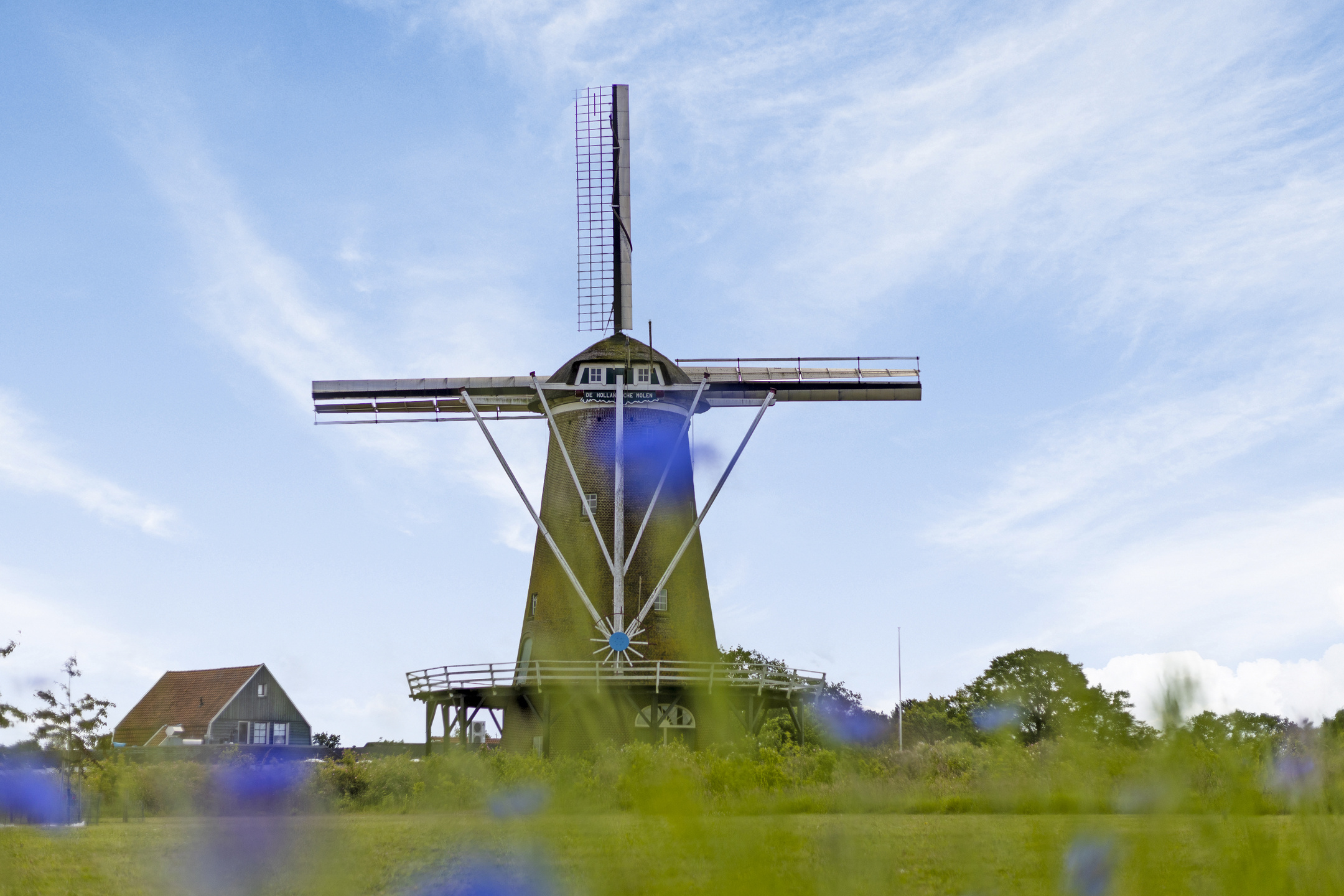 The garden is divided with an ornamental garden at the front and side, at the back of the house there is a vegetable garden. The back of the plot is covered with carpet of field flowers, with daisies, chamomile, stork's beak, sunflowers, cornflowers and poppies in all colors. Behind the garden runs the bike path where people regularly take the time to literally stop and take in the beautiful view.