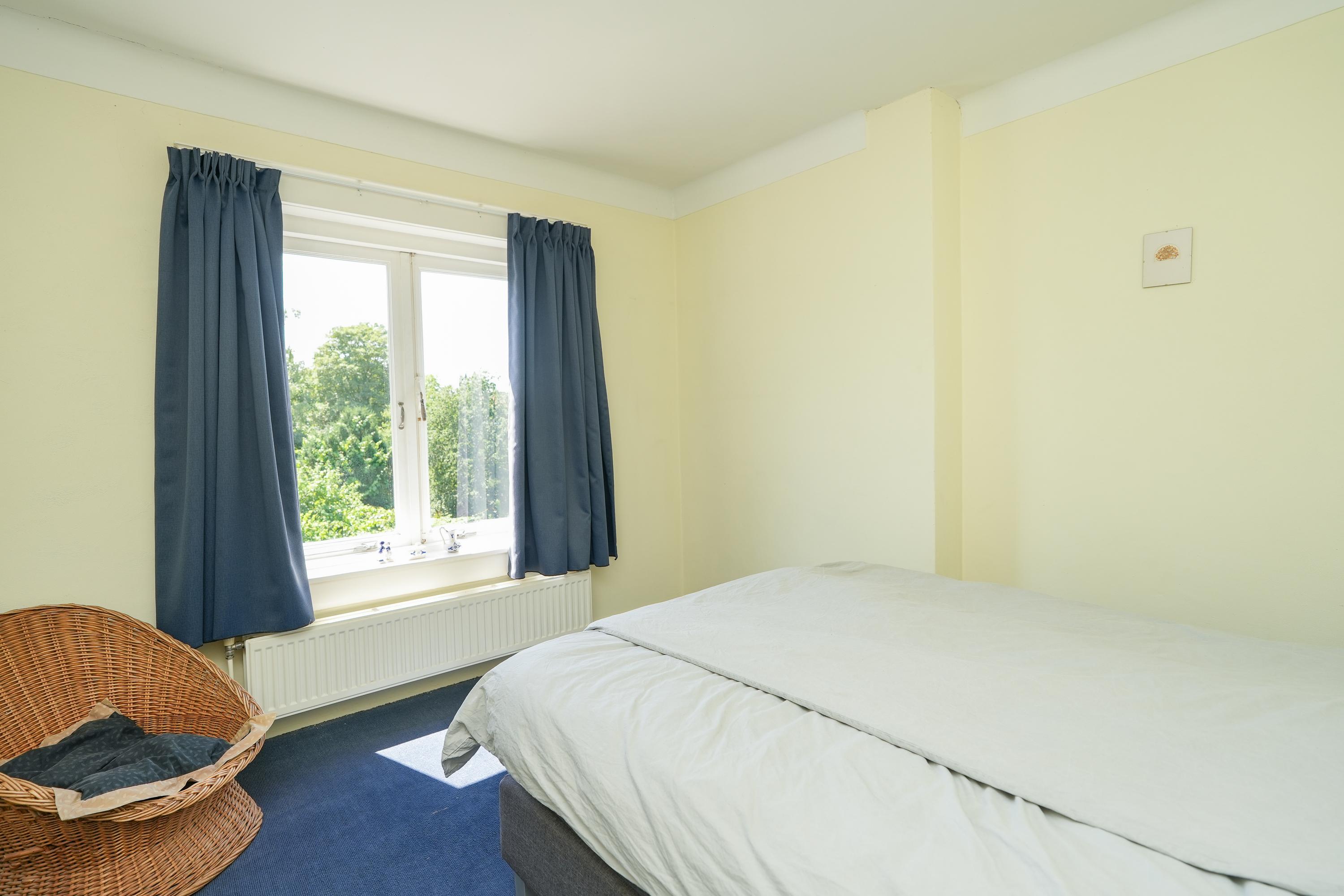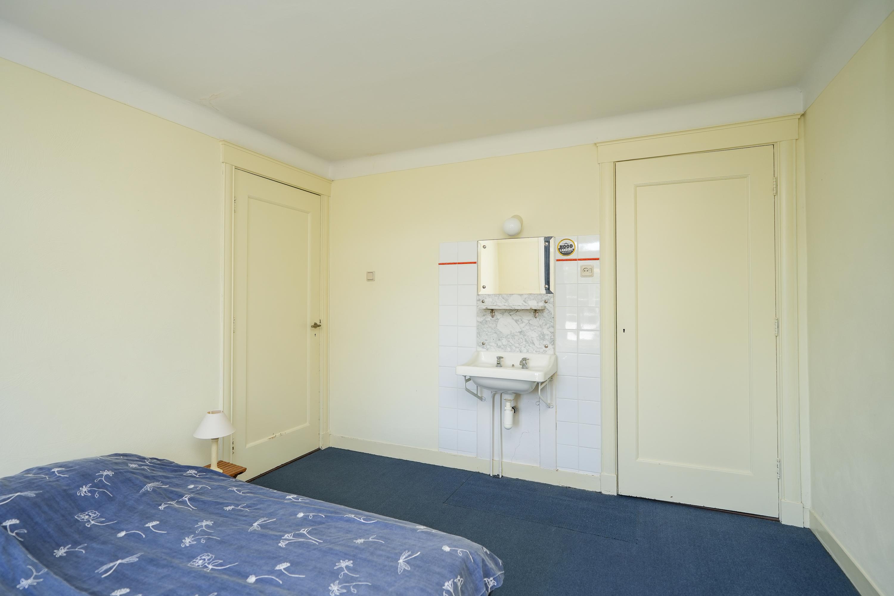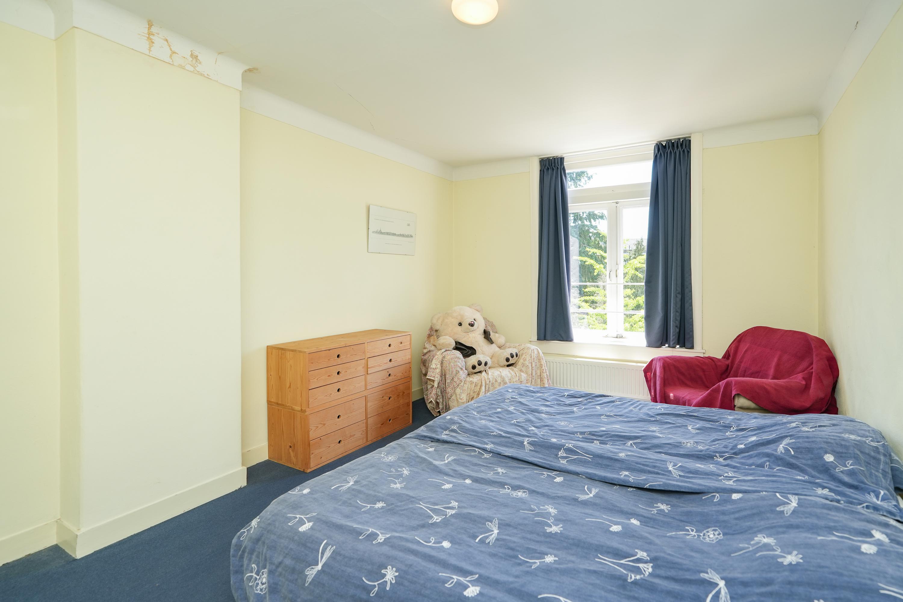 Overloop met bergkast en vaste trap naar de 2e verdieping. Op deze etage bevinden zich drie van de zes slaapkamers. De slaapkamer aan de voorzijde beschikt over vaste kasten en openslaande deuren naar het balkon. De grootste slaapkamer aan de achterzijde is voorzien van vaste kasten, een fraaie schouw en openslaande deuren naar het dakterras, vanwaar je mooi uitkijkt over de groene achtertuin. De derde slaapkamer heeft een praktische kastenwand. De ruime badkamer is uitgerust met een ligbad, een douche en een dubbele wastafel. Daarnaast is er een separaat toilet met fonteintje.