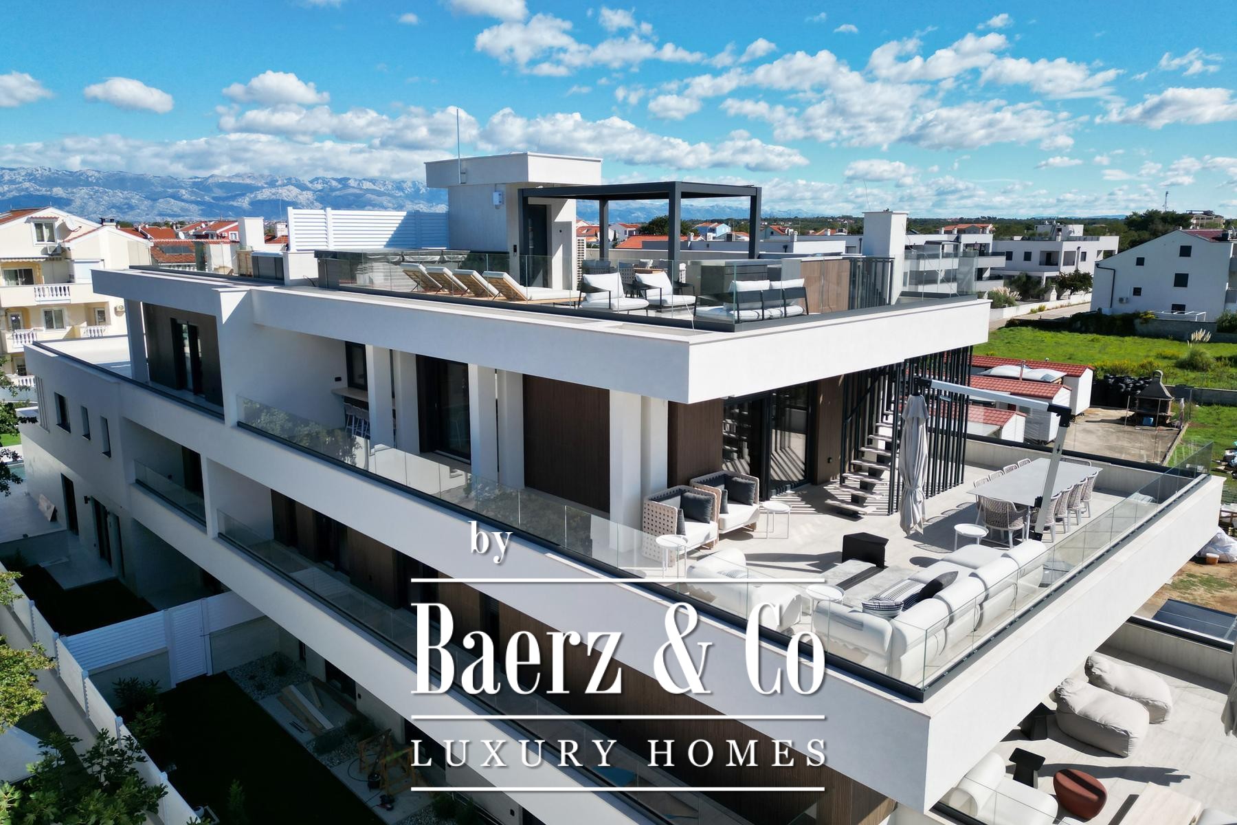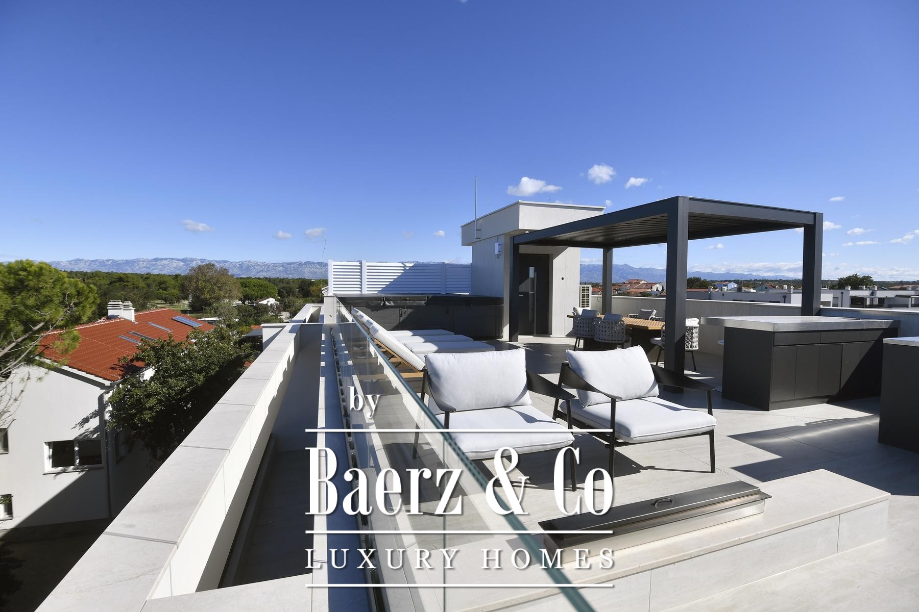 Penthouse Zadar Zaton stands fifty meters from the Adriatic, offering a level of refined coastal living defined by contemporary architecture and considered design. This penthouse Zadar Zaton property spans 231 m², complemented by generous terraces and a private garage, all crafted for seamless luxury in a coveted enclave.