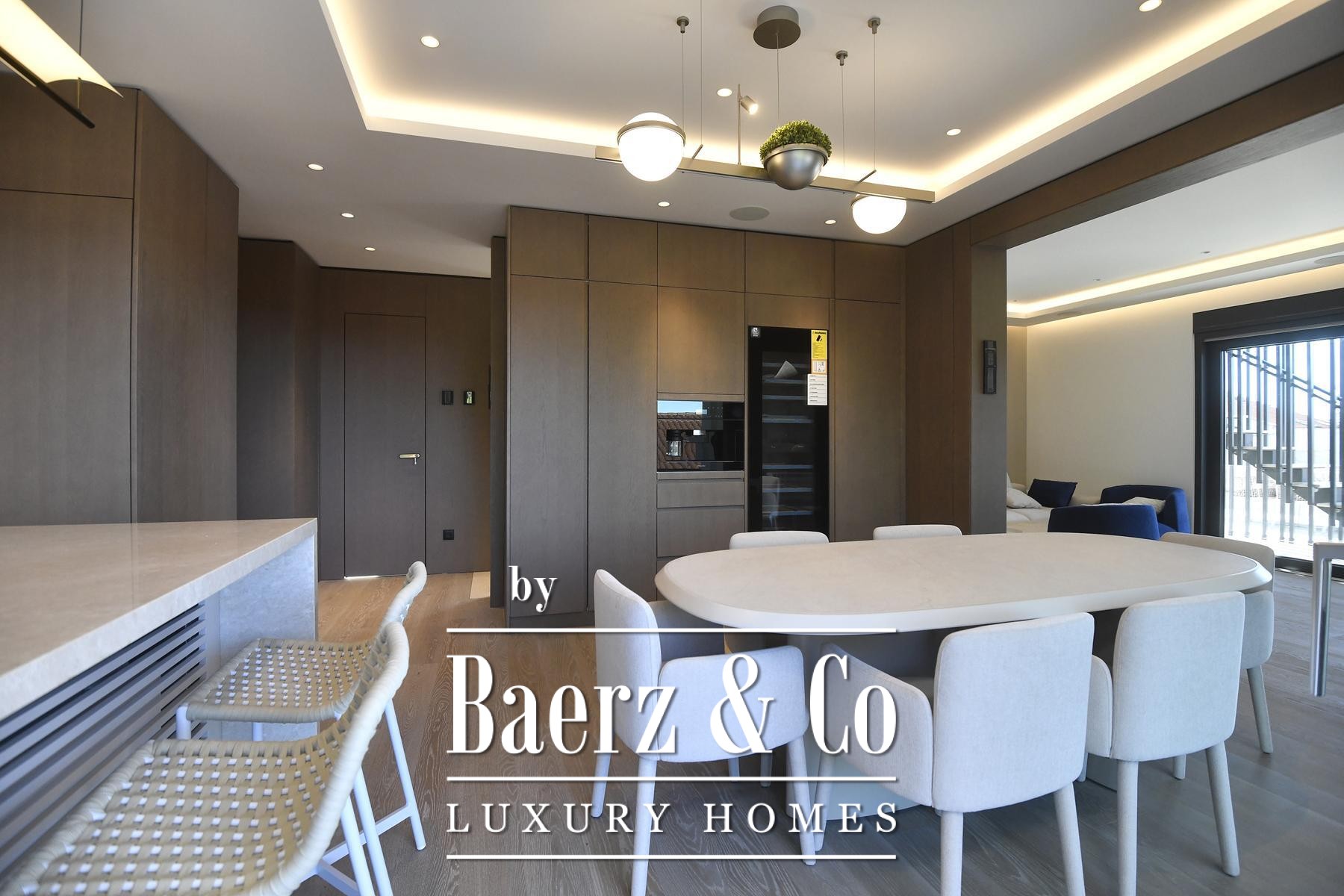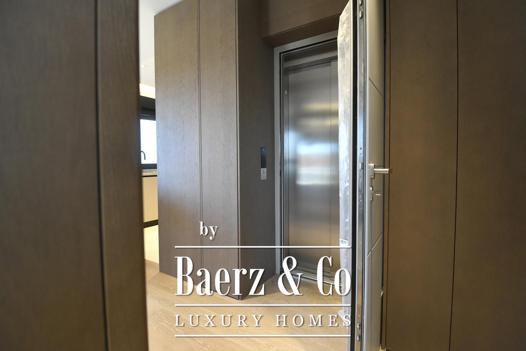 Distinct features including a private elevator, a Smart Home KNX system for climate and lighting, and full air-conditioning enhance daily life, while three parking spaces—one with an EV charger—affirm discretion and security. Technology, including the option for seamless global connectivity, serves clarity rather than spectacle.