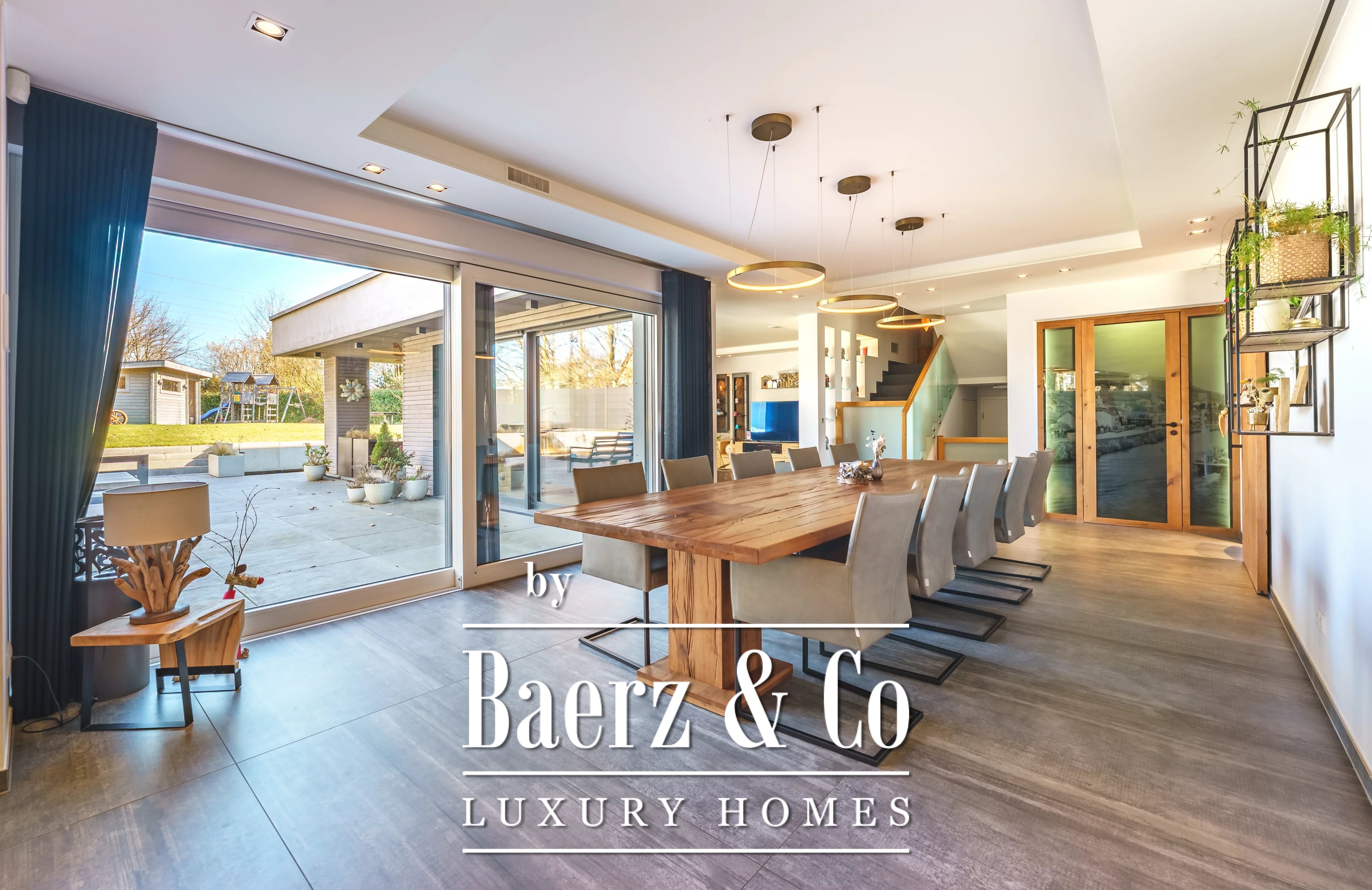 The wellness area is both distinctive and serene, featuring sauna, Jacuzzi, and shower on a covered terrace, suited for all seasons. The home’s systems are forward-thinking, with a KNX home automation system, triple-glazed windows, geothermal and photovoltaic energy, solar hot water, security, and preparation for a future lift. This luxury house for sale in Nocher-Route offers a rare balance of contemporary technology and pastoral calm, set against far-reaching country views.