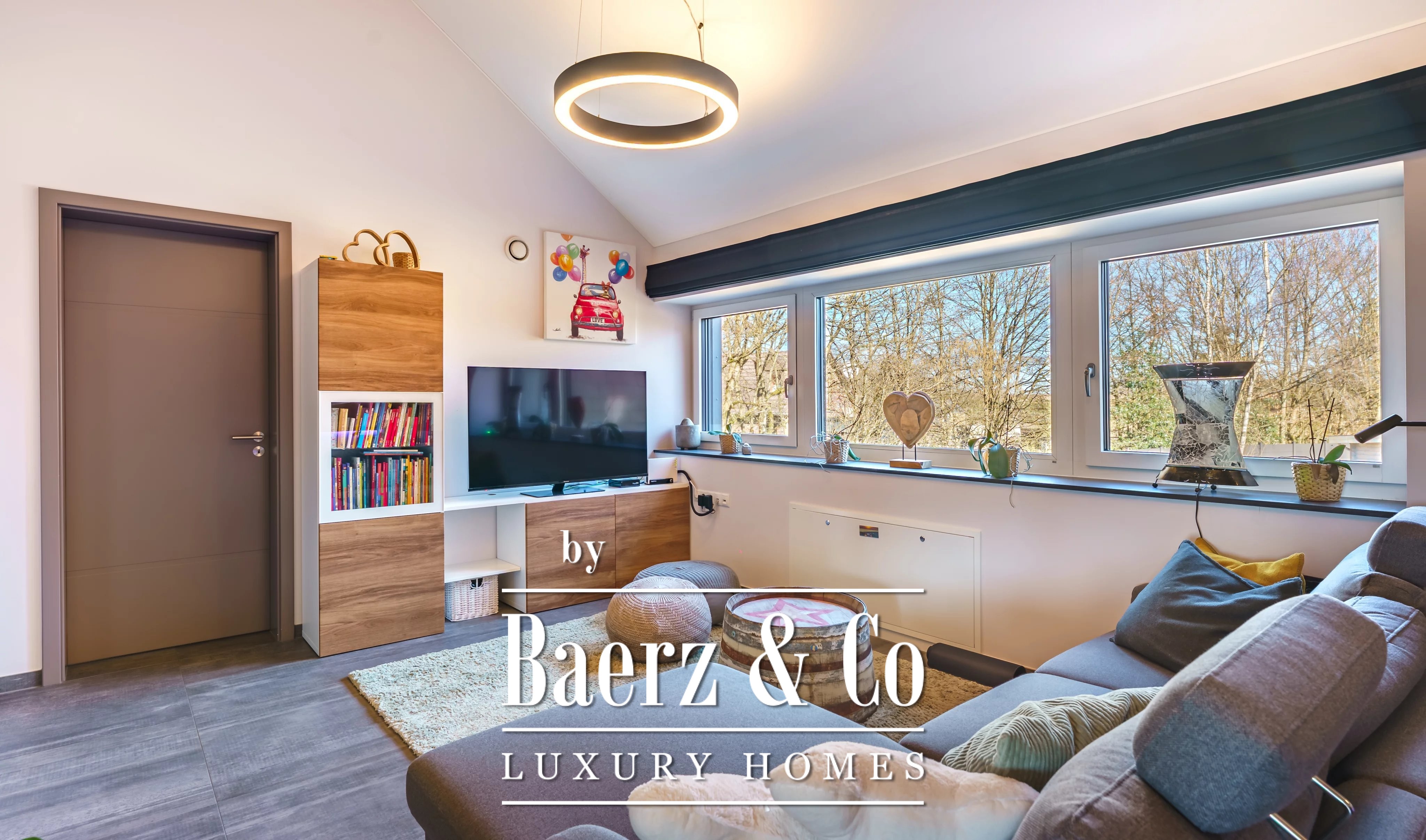 Upstairs, an additional living room creates a private retreat for family gatherings. There are five bedrooms and four bathrooms, including a master suite with a dressing room, private shower room, and a guest bedroom with en-suite. The laundry room is discreet and efficient, supporting daily comfort.