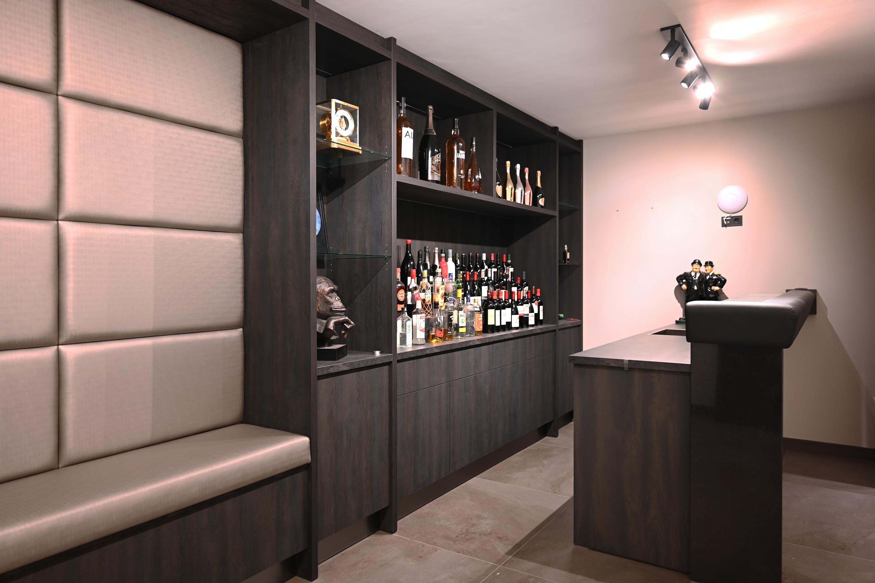 The home has a full basement, but skylights on this level provide natural light and additional ventilation. This level features a practical layout and offers a surprising amount of space. Here you’ll find a spacious entryway with a toilet, two spacious bedrooms, and a luxurious bathroom with a walk-in shower and vanity; the same warm atmosphere is carried through here as well. There is also a large utility room and, finally, a stylish bar/man cave with a pantry and built-in cabinets.