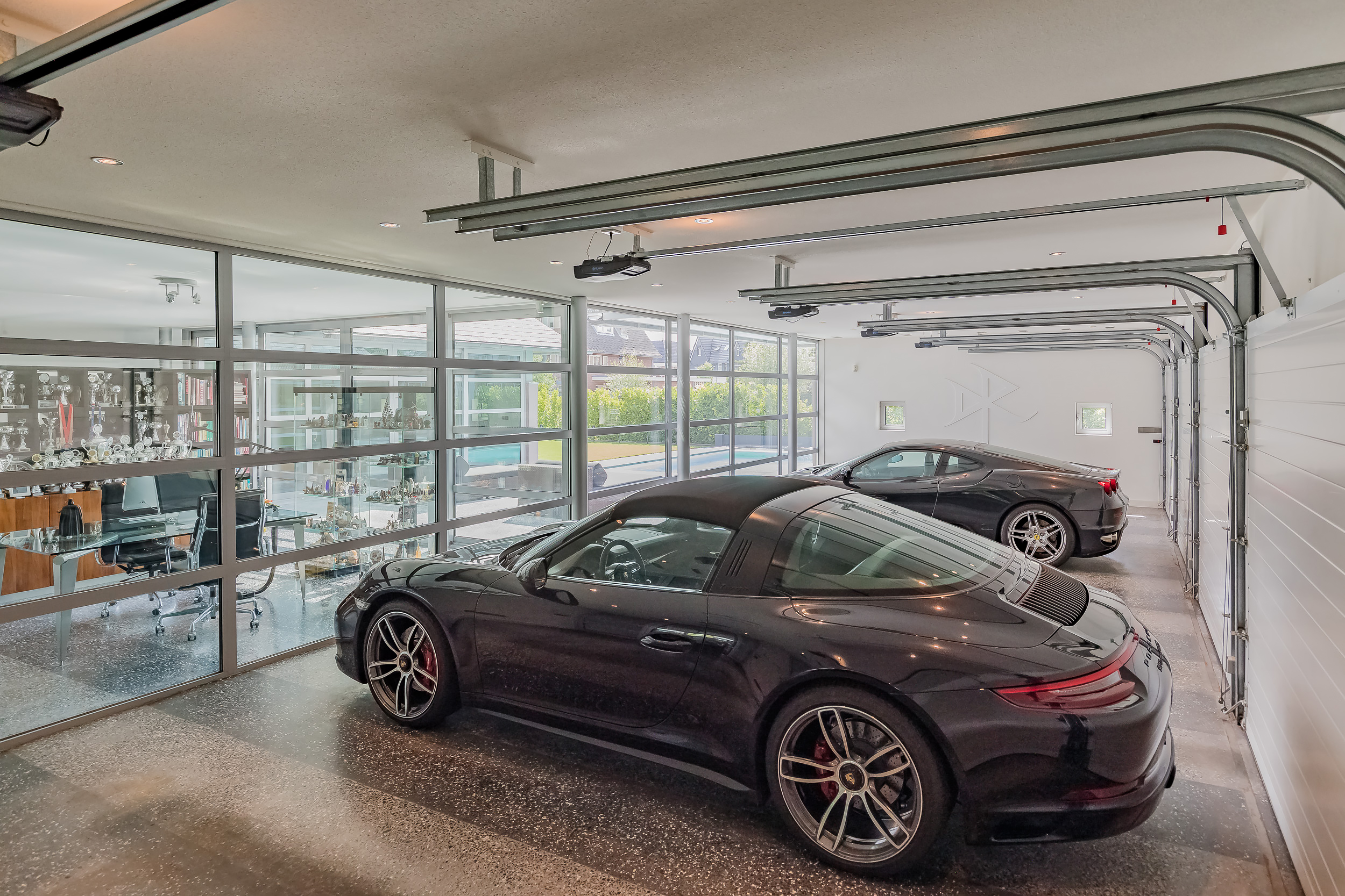 The indoor garage can accommodate 5 cars. If you do not have so many cars, then that is not a problem; equipped with underfloor heating, this space can easily be added to the house and is multifunctional in use.