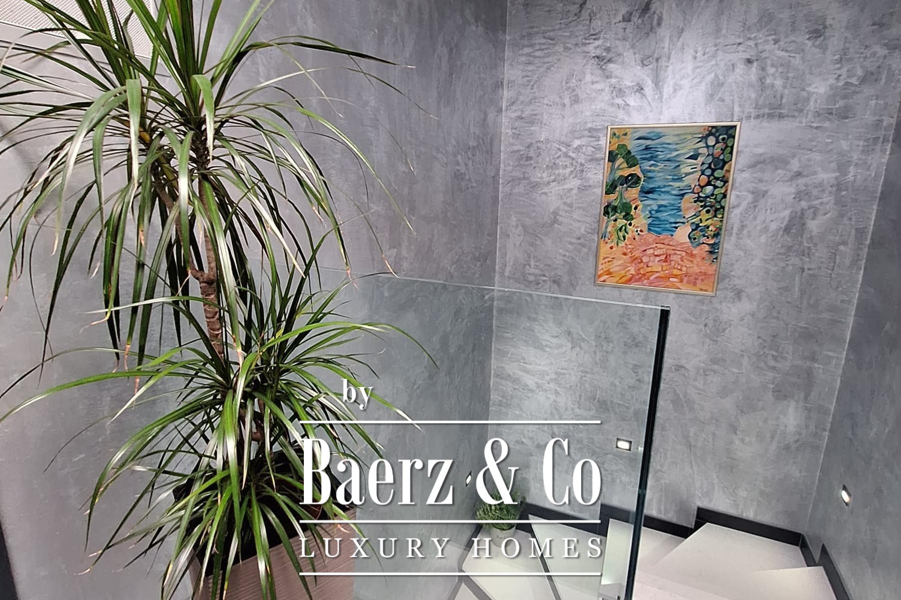The layout is carefully orchestrated for contemporary comfort and elegant privacy. The lower level introduces a dedicated wellness area, a gym, and a space for sports or recreation, complemented by a practical laundry room. On the ground floor, a spacious living room connects seamlessly with an open kitchen and dining area, while a guest toilet and a bedroom with en-suite bathroom add versatility to the plan.