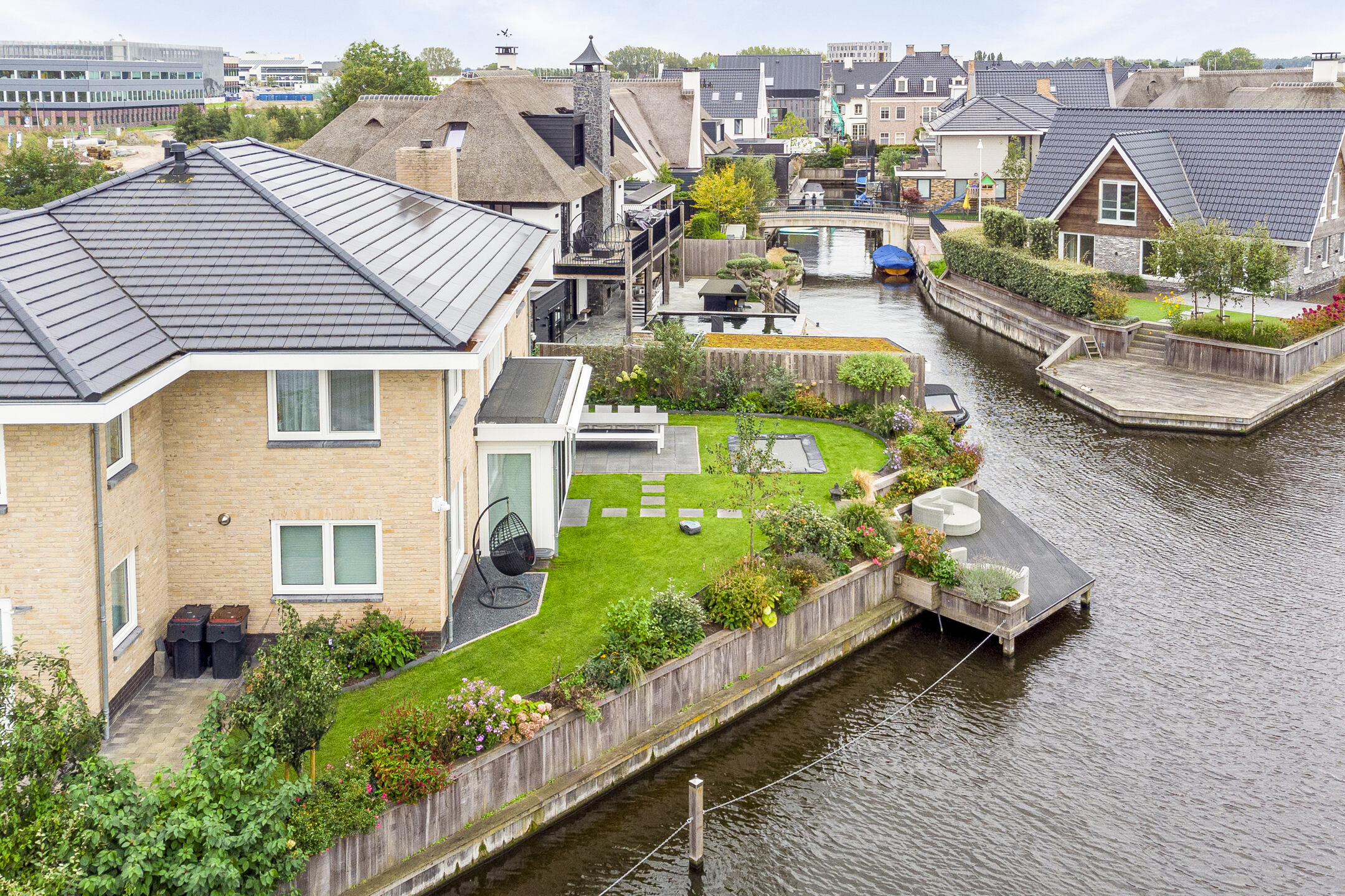 Detached villa Oegstgeest presents a sheltered world where contemporary design meets the tranquility of waterside living. This modern home, completed in 2019, anchors itself on a 762 m² plot bordered by water on three sides, offering unobstructed views and mooring for several boats, one fitted with a boat lift. The 311 m² residence is a study in sustainability, with A energy class, triple glazing, full insulation, and solar panels that balance comfort with responsibility.