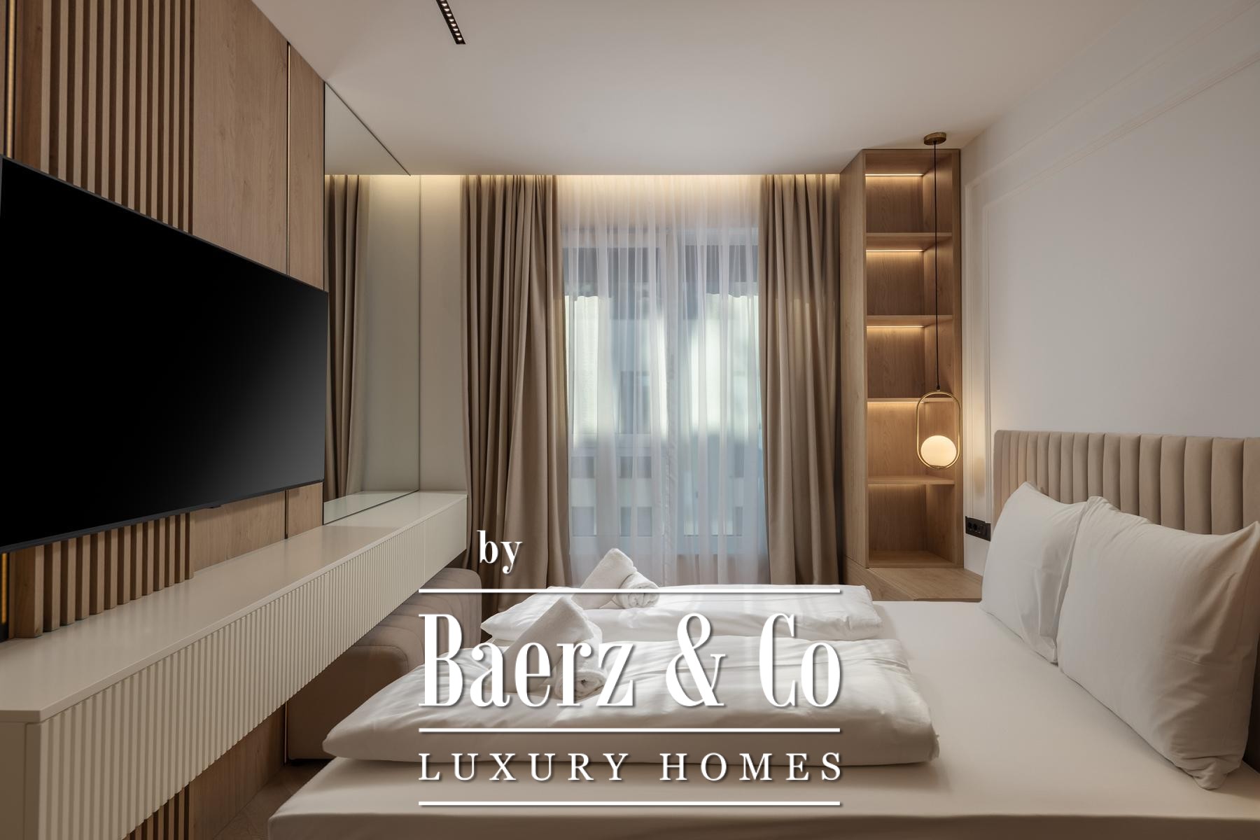 Modern materials and discreet detailing set the tone throughout, supported by a garage, two dedicated parking spaces, and additional storage to lend practical ease. The apartment is situated in a new building, providing contemporary infrastructure while inviting a sense of timelessness through curated furnishings and harmonious spaces.