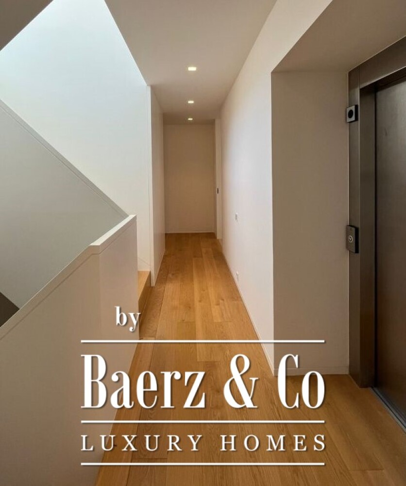 Three bedrooms and four bathrooms invite a measured rhythm, while noble wood finishes and automated air conditioning create interiors of understated comfort. The internal elevator connects every level, offering direct passage to the private garage for calm arrivals and departures. Living spaces are oriented to maximize natural light, with the terrace unveiling private moments beside a pool that surveys the mouth of the Douro and out to the Atlantic.