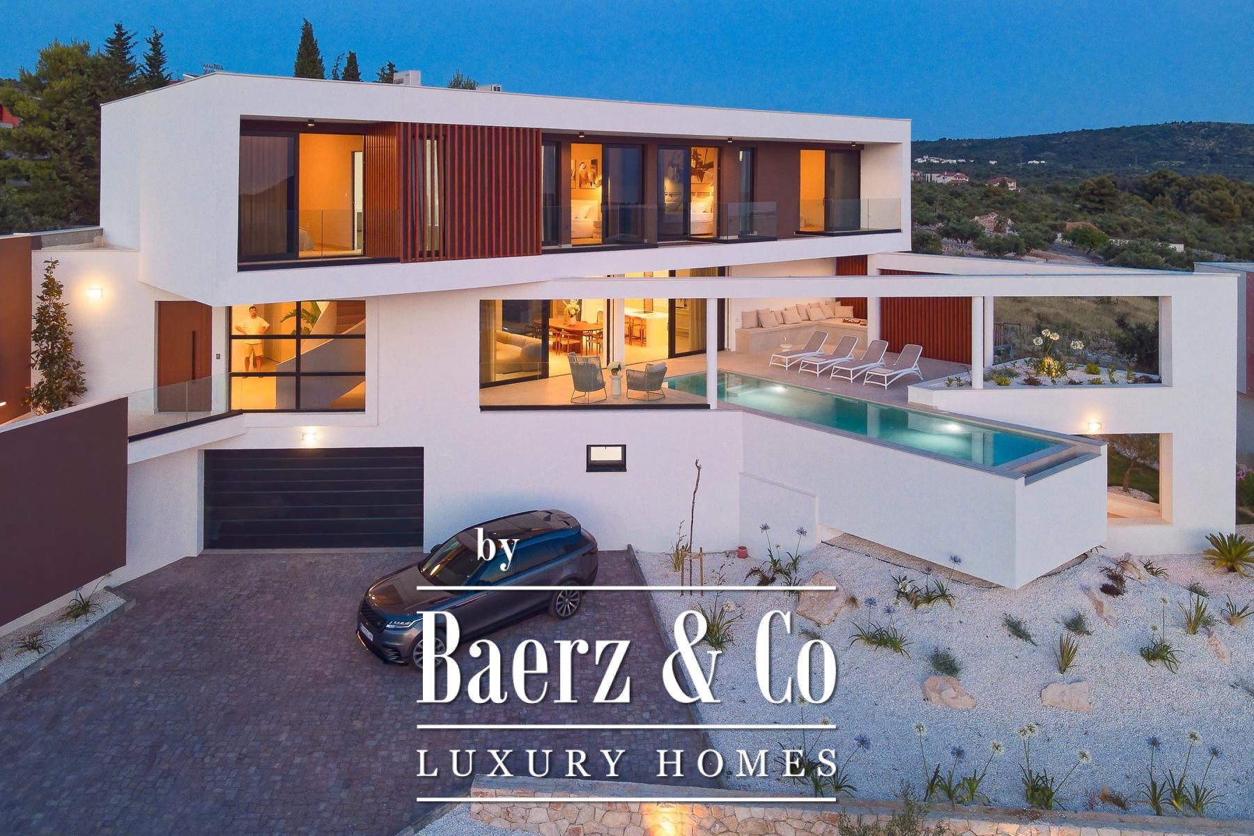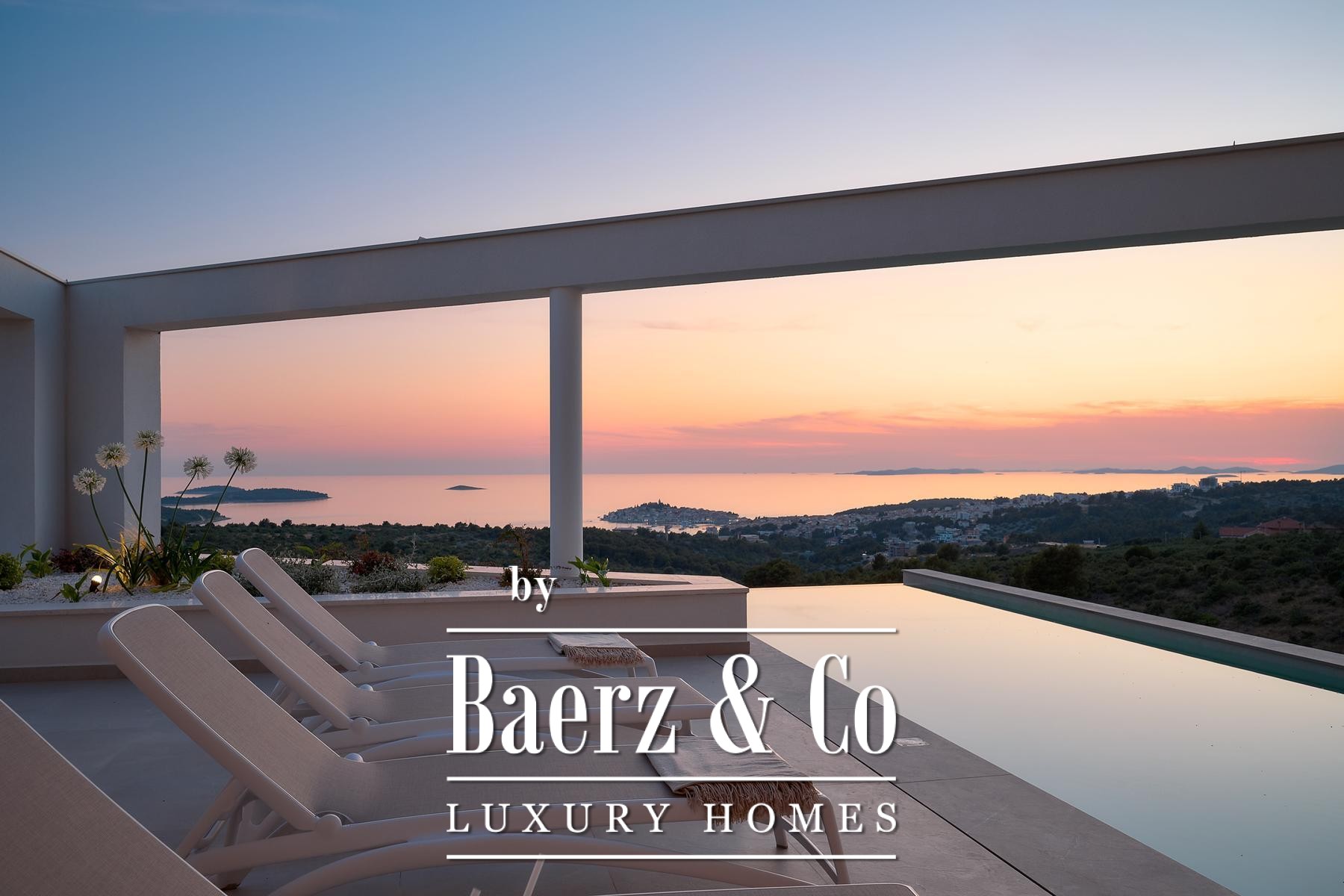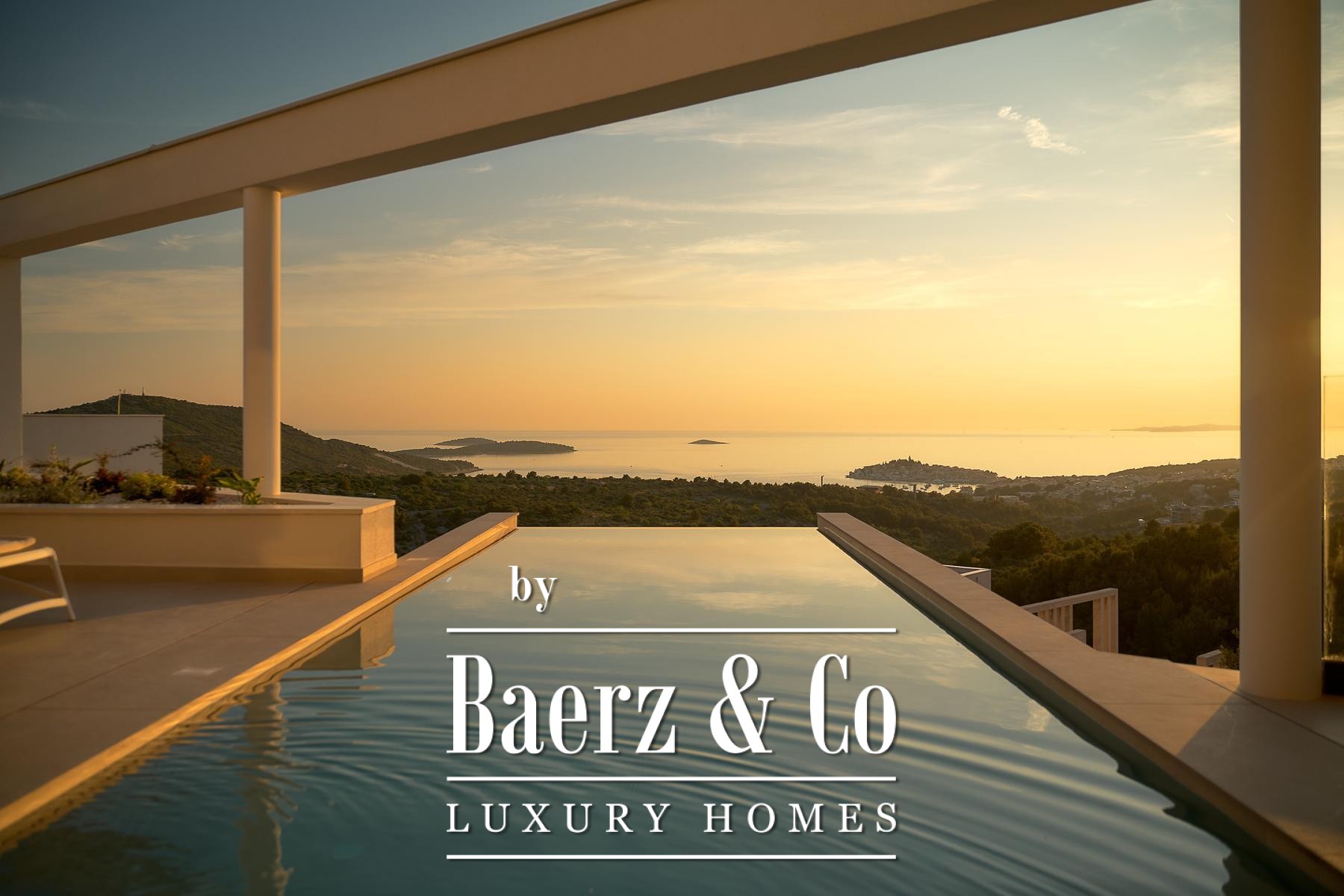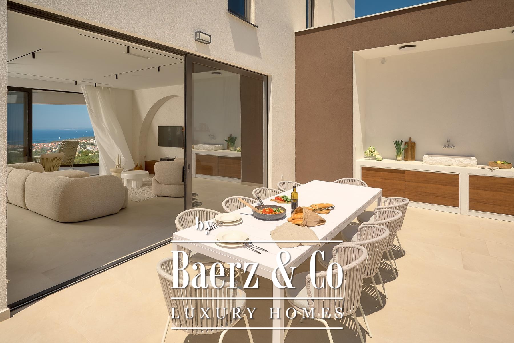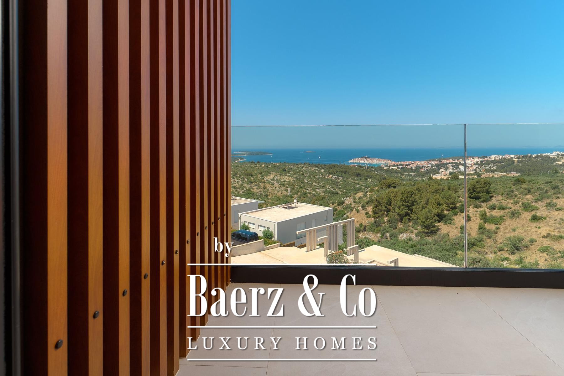 Villa Primošten with panoramic sea views is a striking contemporary residence in Croatia, offering 559 m² of refined living space and a total plot size of 1,106 m². This villa is conceived for those who appreciate architectural excellence and wish to enjoy unobstructed vistas of the sea from every level. The living experience is anchored by an infinity pool that merges visually with the horizon, and sweeping terraces that offer a curated blend of privacy and openness.