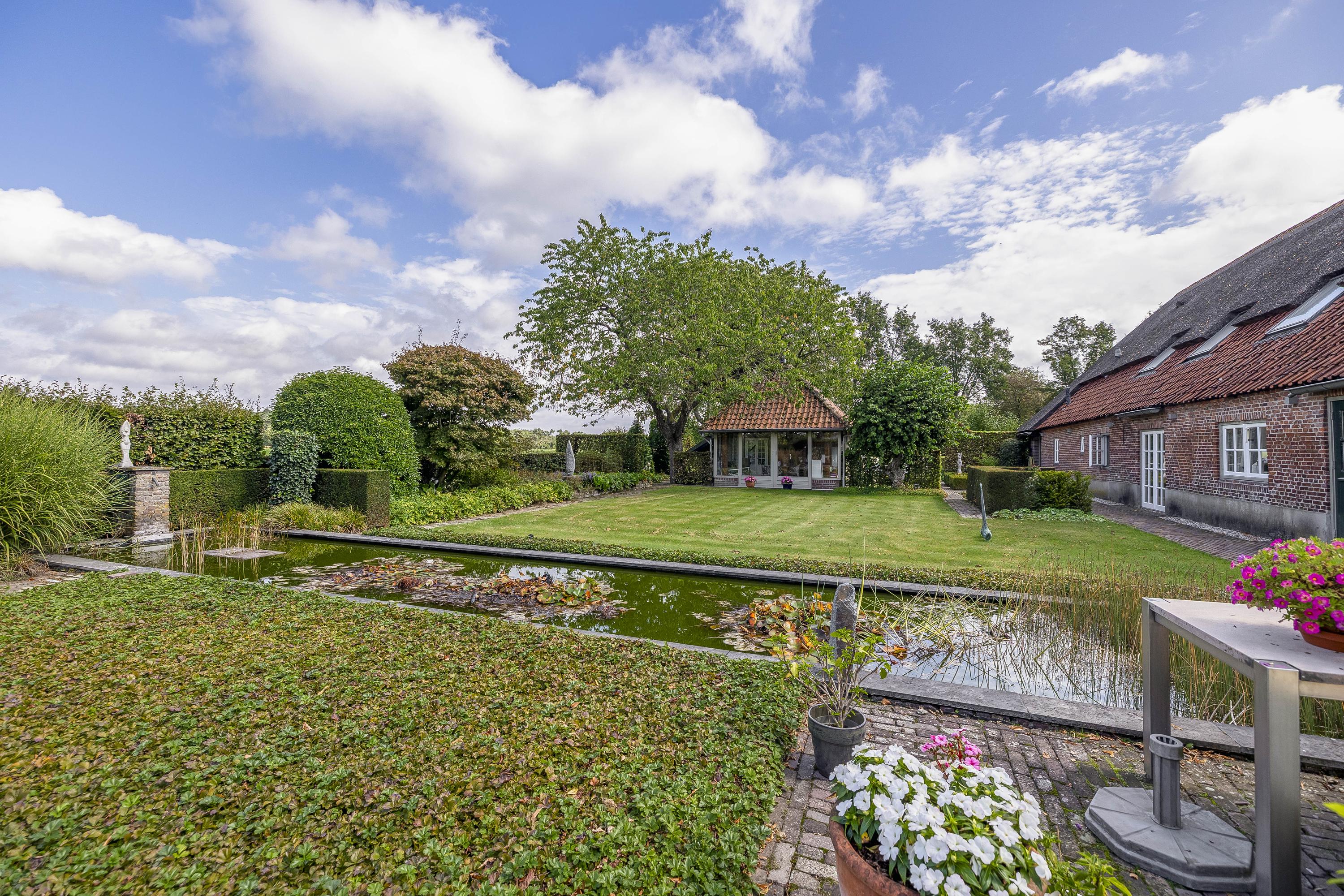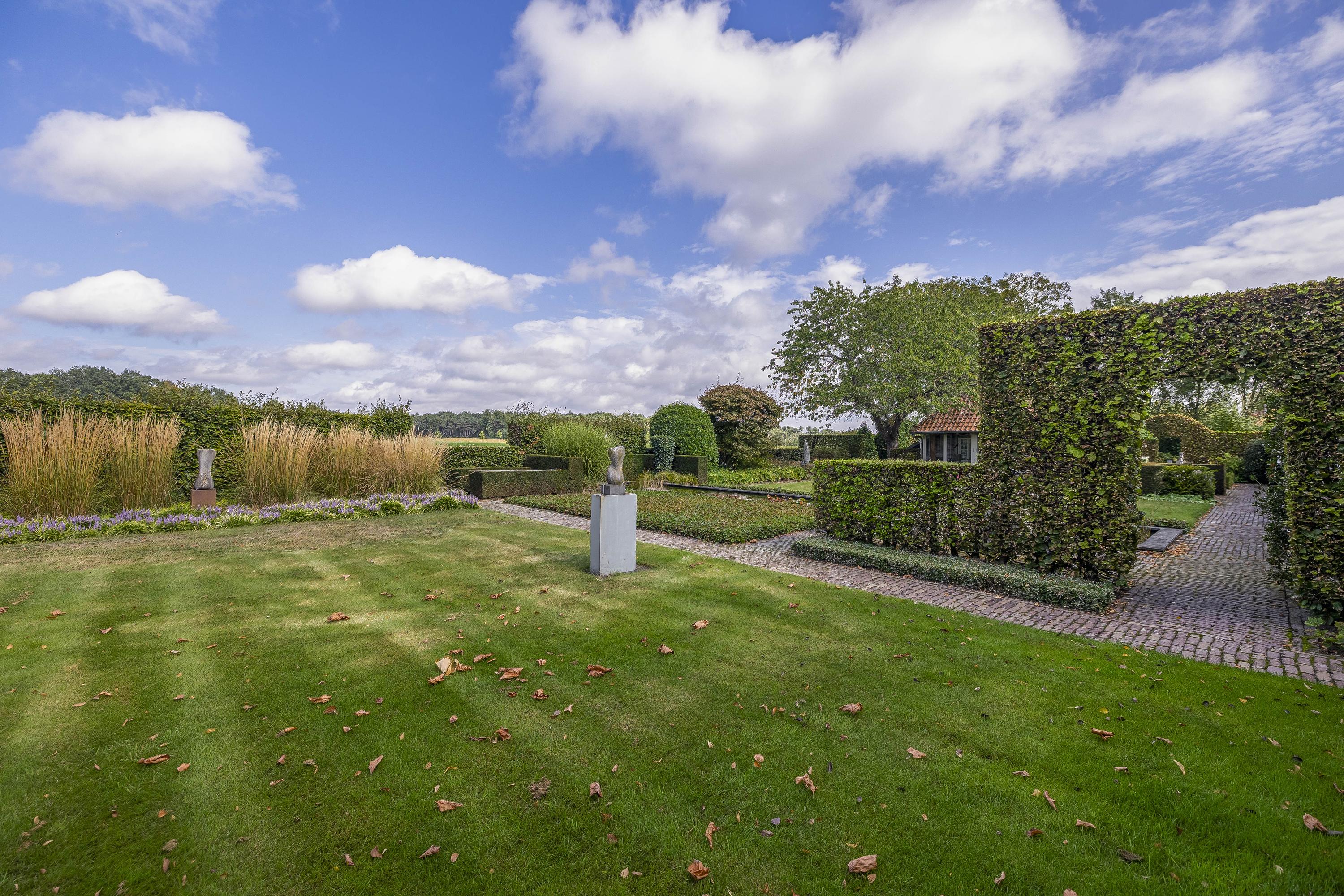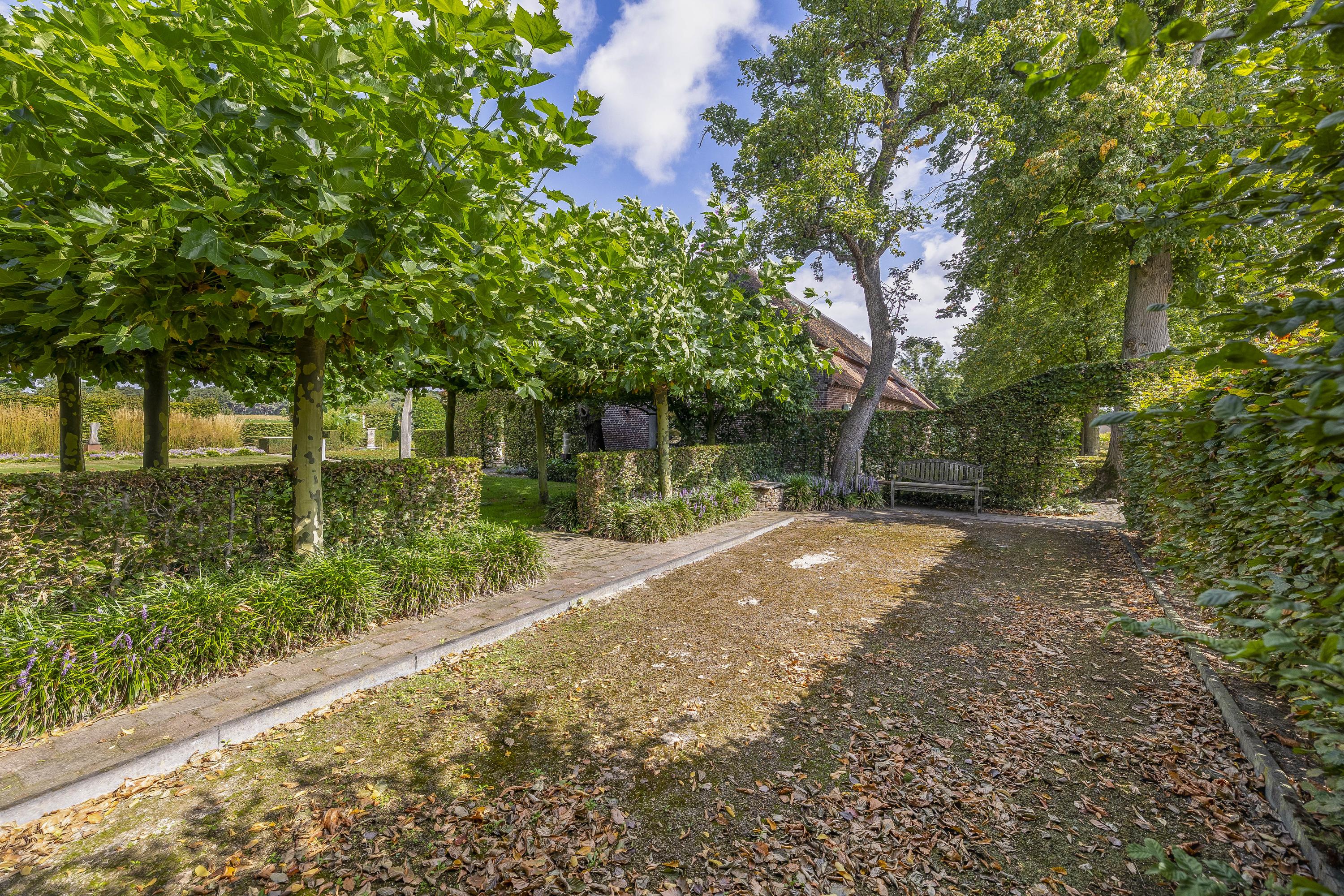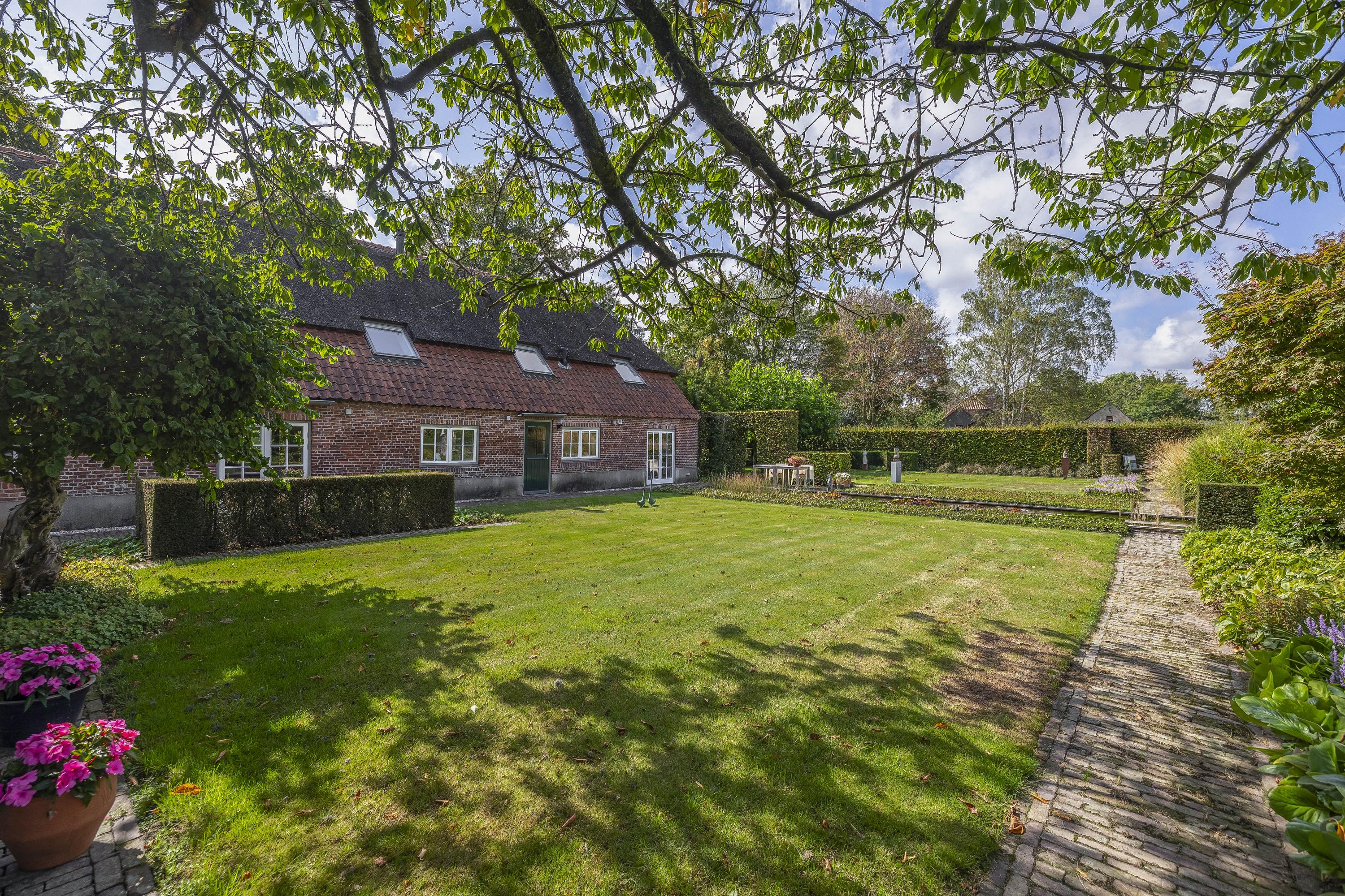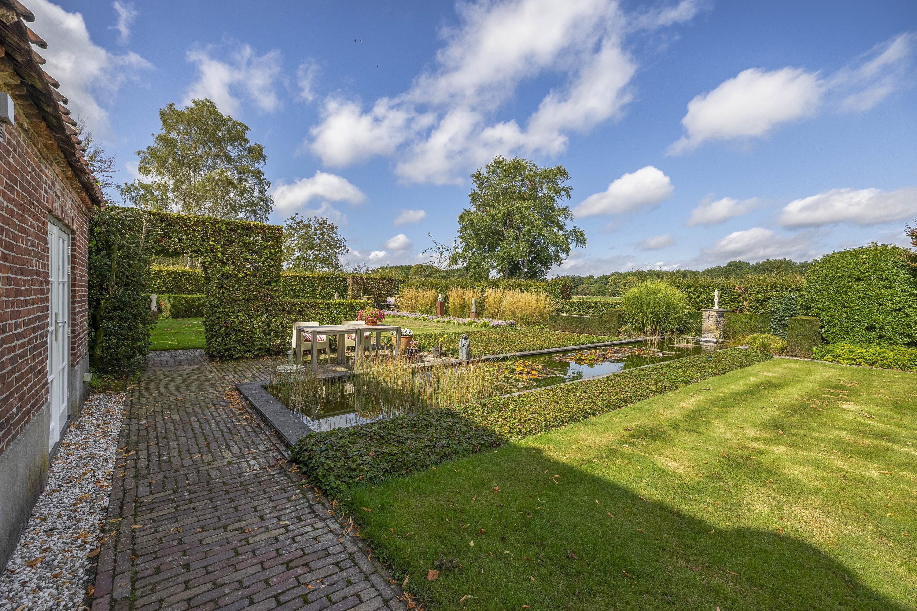 Beyond the primary residence, outbuildings extend possibility: a glazed garden house with fireplace, a studio with wine cellar, a double garage, and a barn crafted in old timber. Every segment is finished with practical sensibility—insulated, serviced, and offering ample storage. The gardens, landscaped and fully irrigated, unfold with private spaces and a variety of mature plantings, framed by rural views yet within easy reach of Valkenswaard and Veldhoven. This farmhouse for sale in Riethoven represents both continuity and progress—a place where every detail conveys care and consideration for a cultivated rural lifestyle.