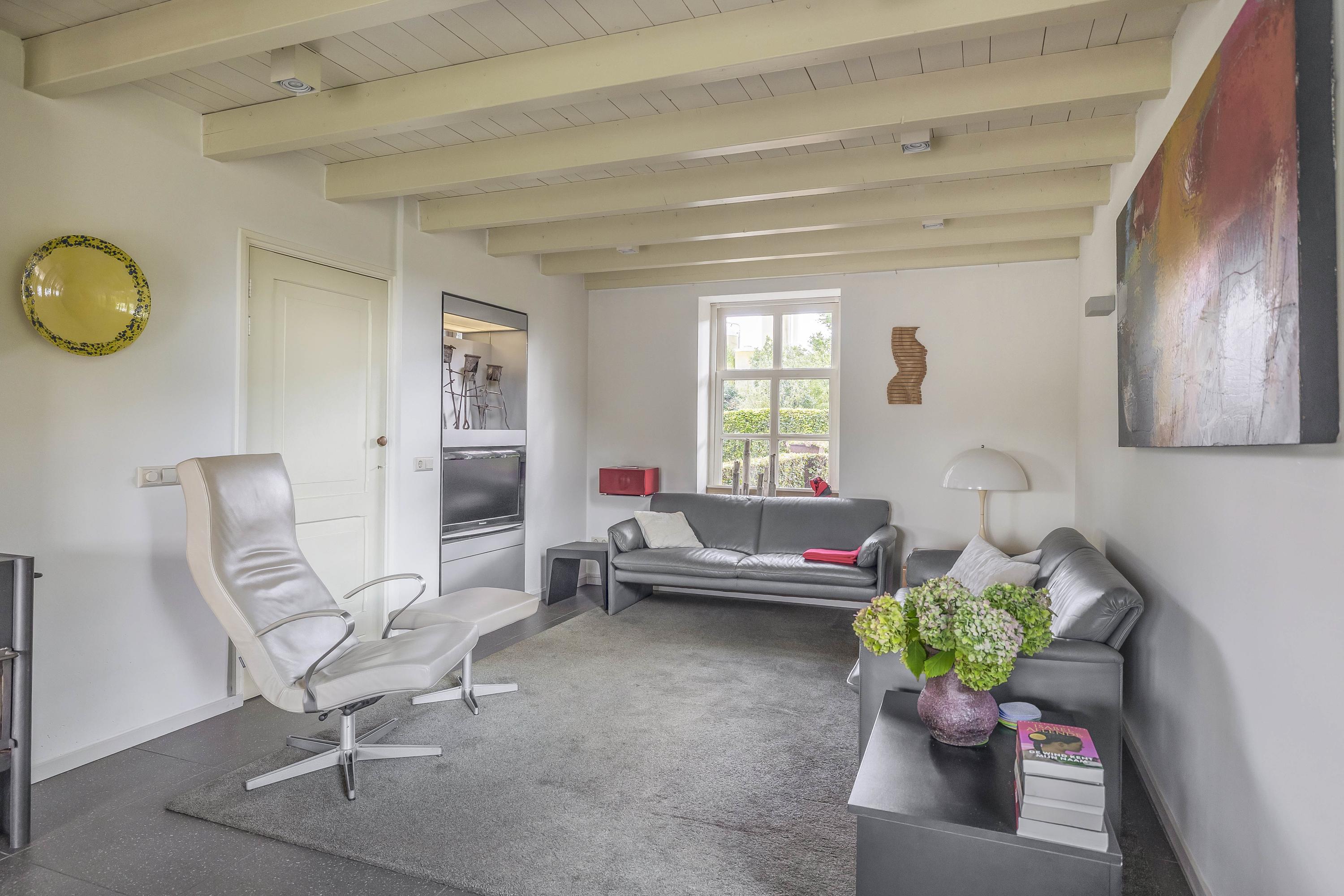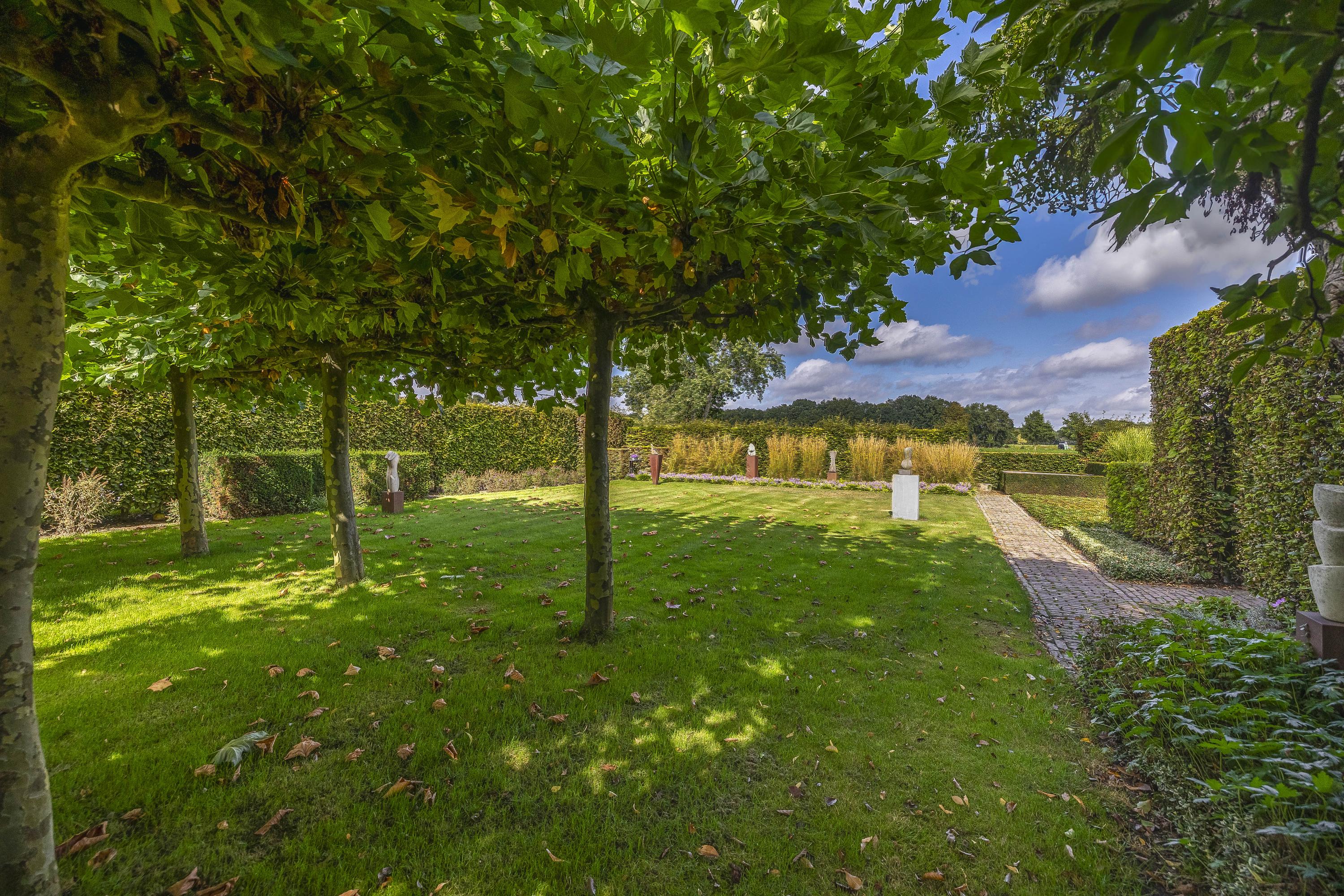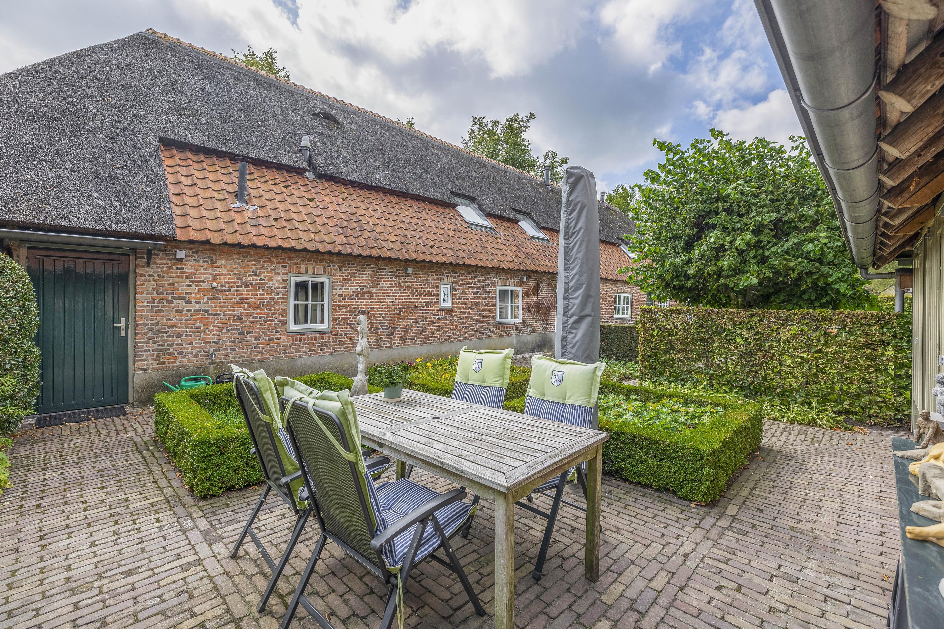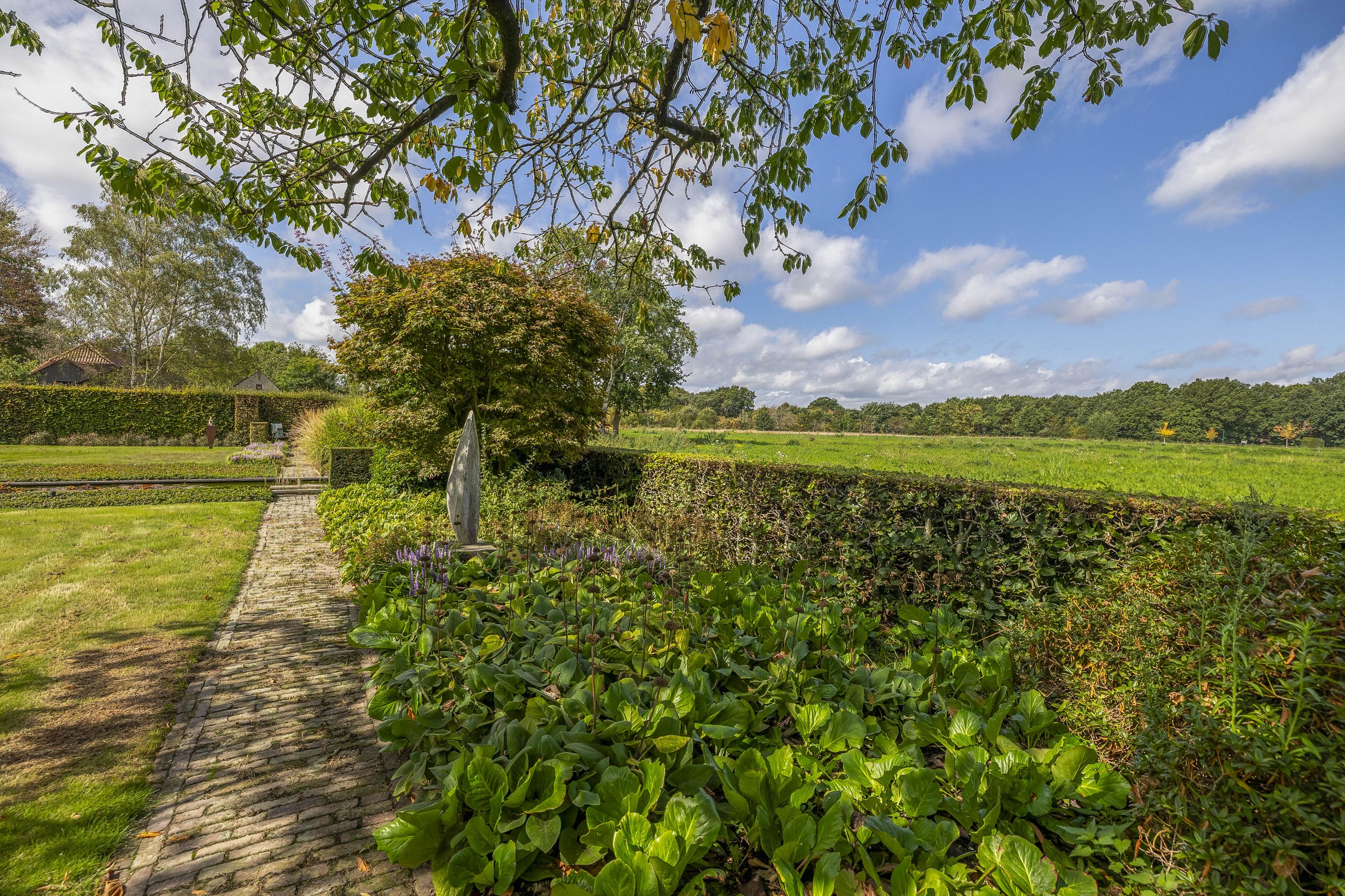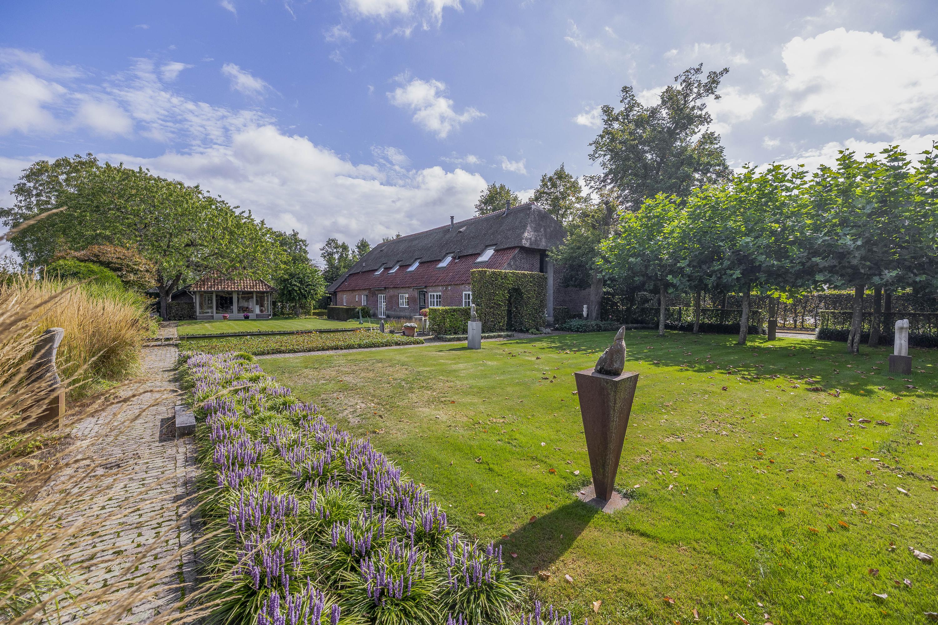 Beyond the primary residence, outbuildings extend possibility: a glazed garden house with fireplace, a studio with wine cellar, a double garage, and a barn crafted in old timber. Every segment is finished with practical sensibility—insulated, serviced, and offering ample storage. The gardens, landscaped and fully irrigated, unfold with private spaces and a variety of mature plantings, framed by rural views yet within easy reach of Valkenswaard and Veldhoven. This farmhouse for sale in Riethoven represents both continuity and progress—a place where every detail conveys care and consideration for a cultivated rural lifestyle.