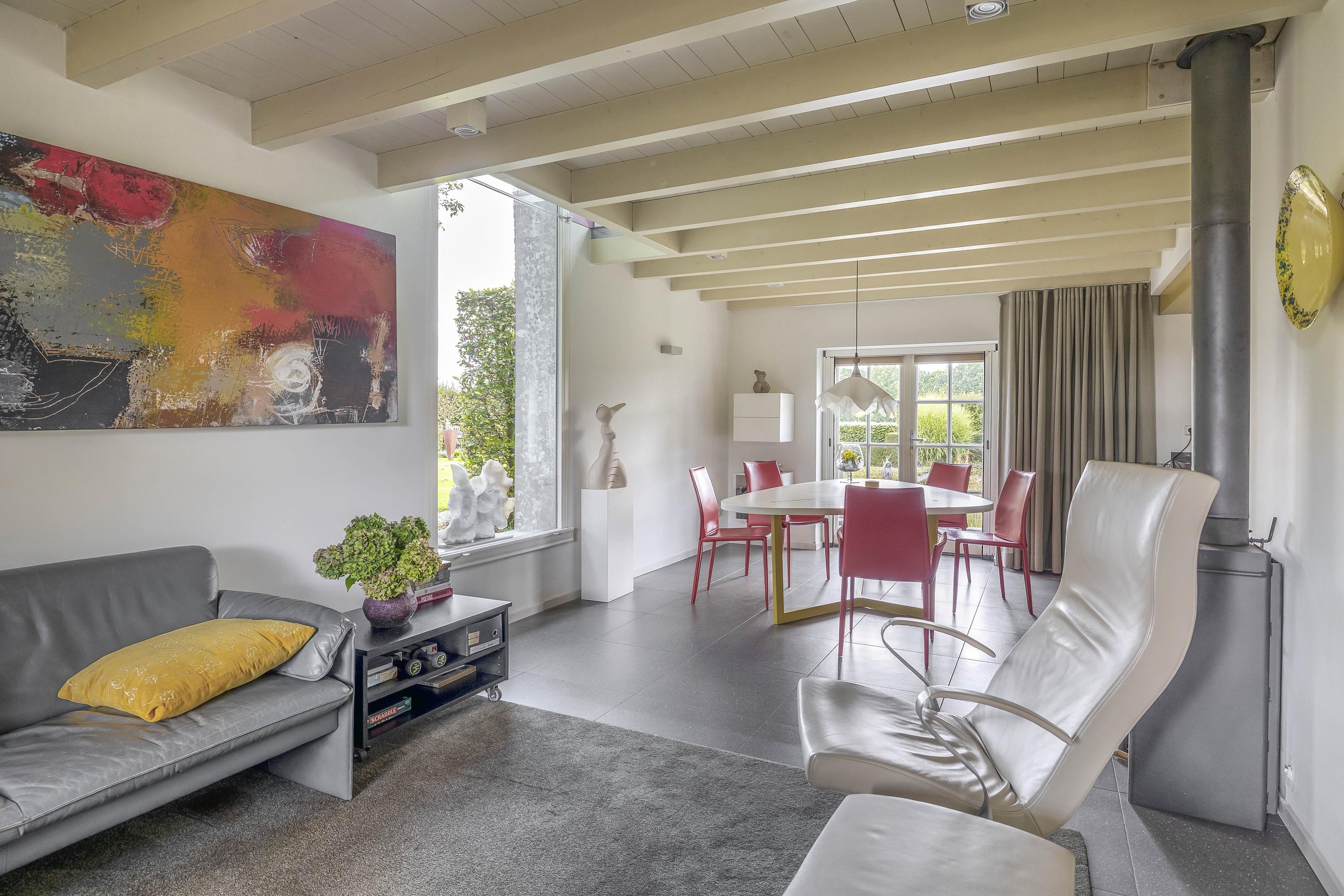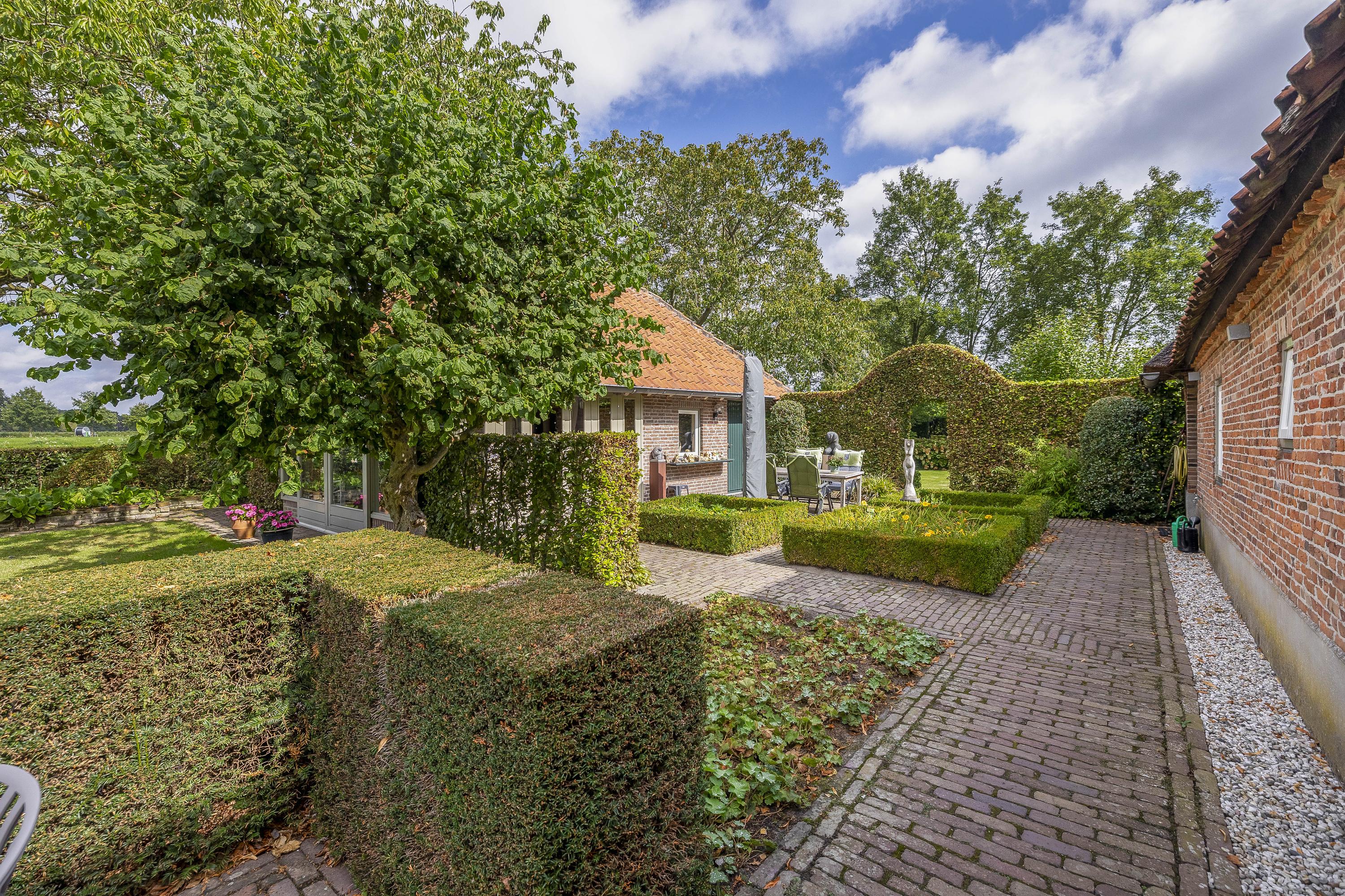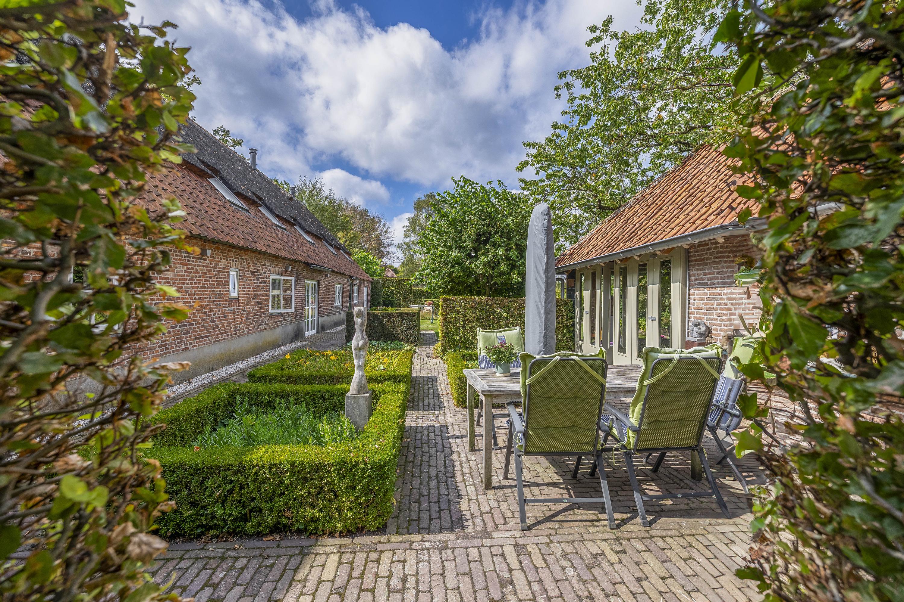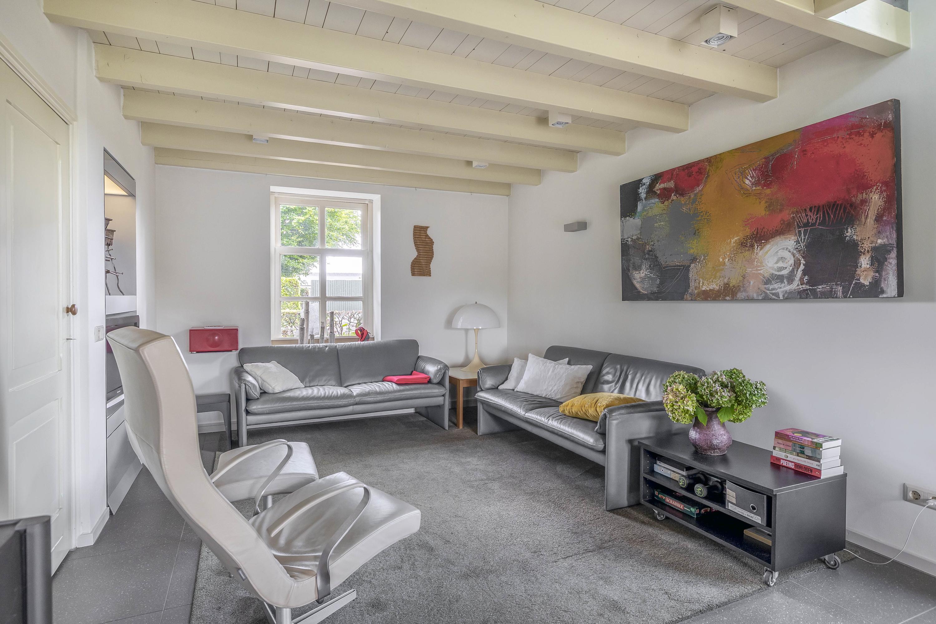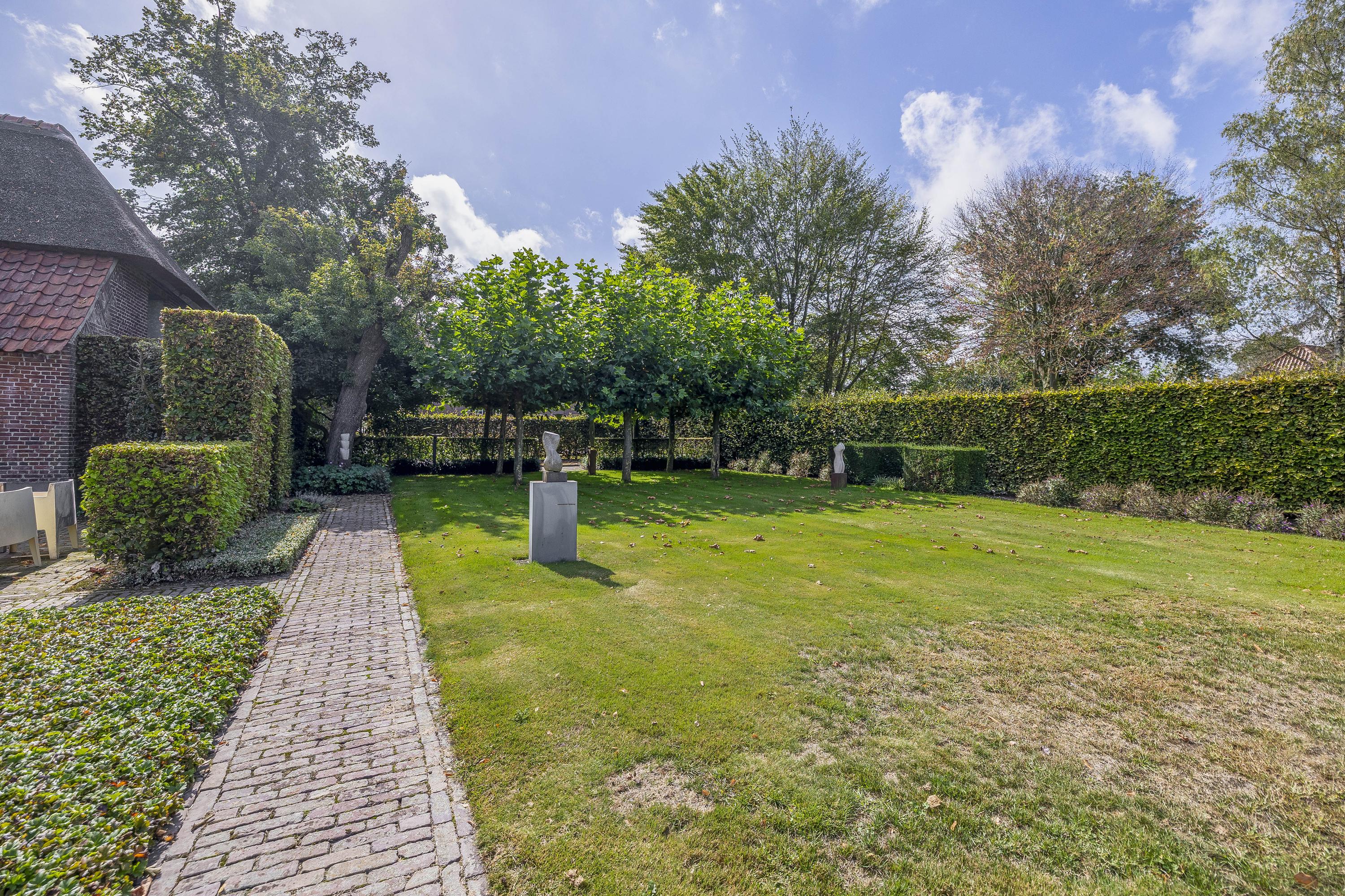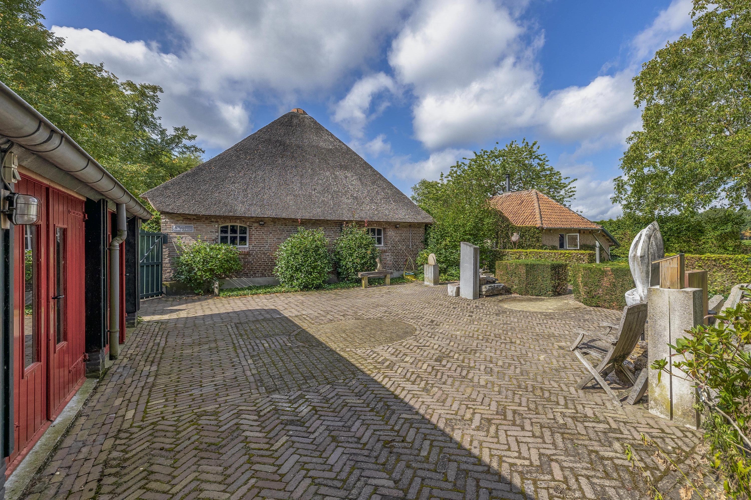 Beyond the primary residence, outbuildings extend possibility: a glazed garden house with fireplace, a studio with wine cellar, a double garage, and a barn crafted in old timber. Every segment is finished with practical sensibility—insulated, serviced, and offering ample storage. The gardens, landscaped and fully irrigated, unfold with private spaces and a variety of mature plantings, framed by rural views yet within easy reach of Valkenswaard and Veldhoven. This farmhouse for sale in Riethoven represents both continuity and progress—a place where every detail conveys care and consideration for a cultivated rural lifestyle.