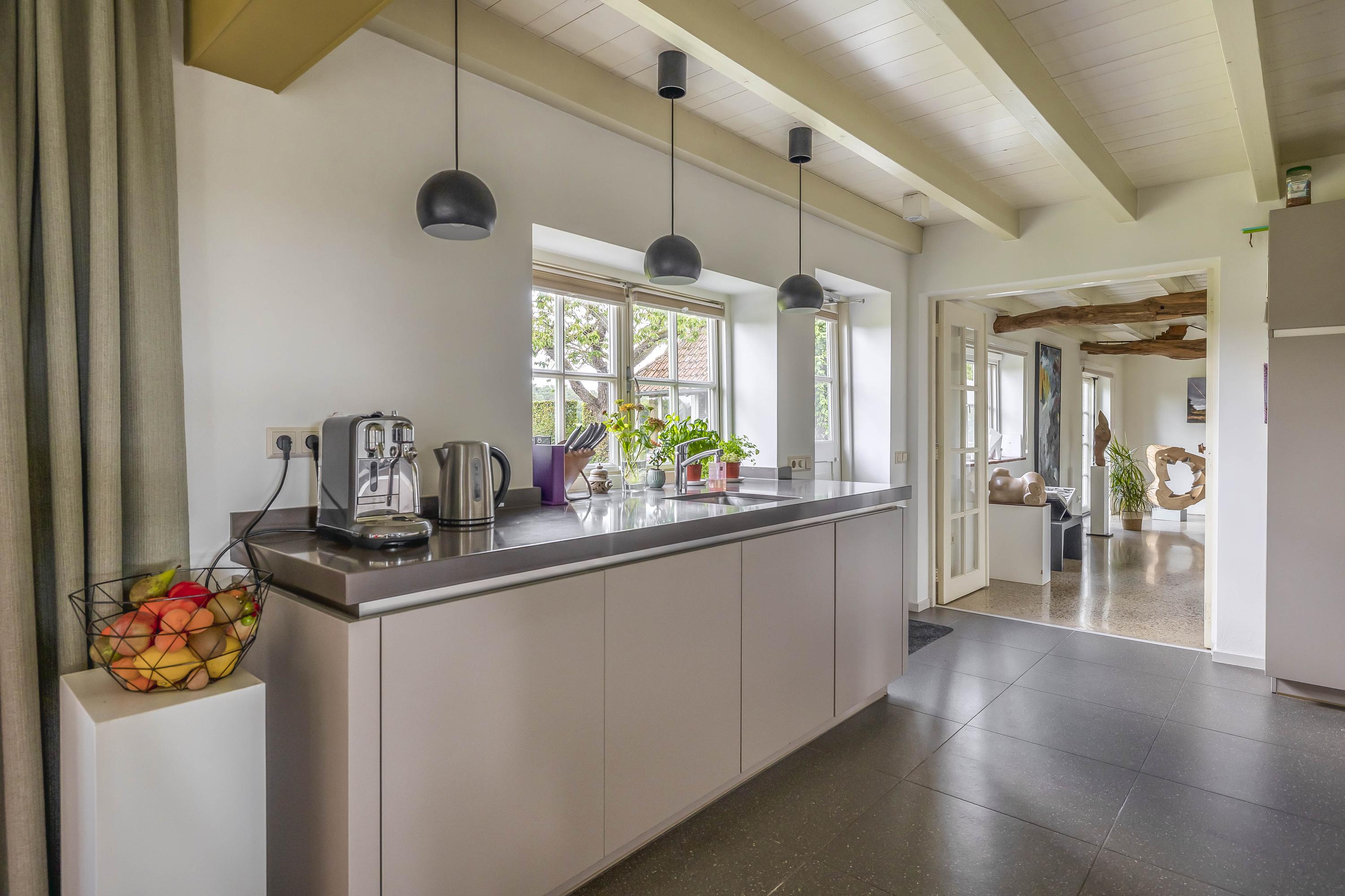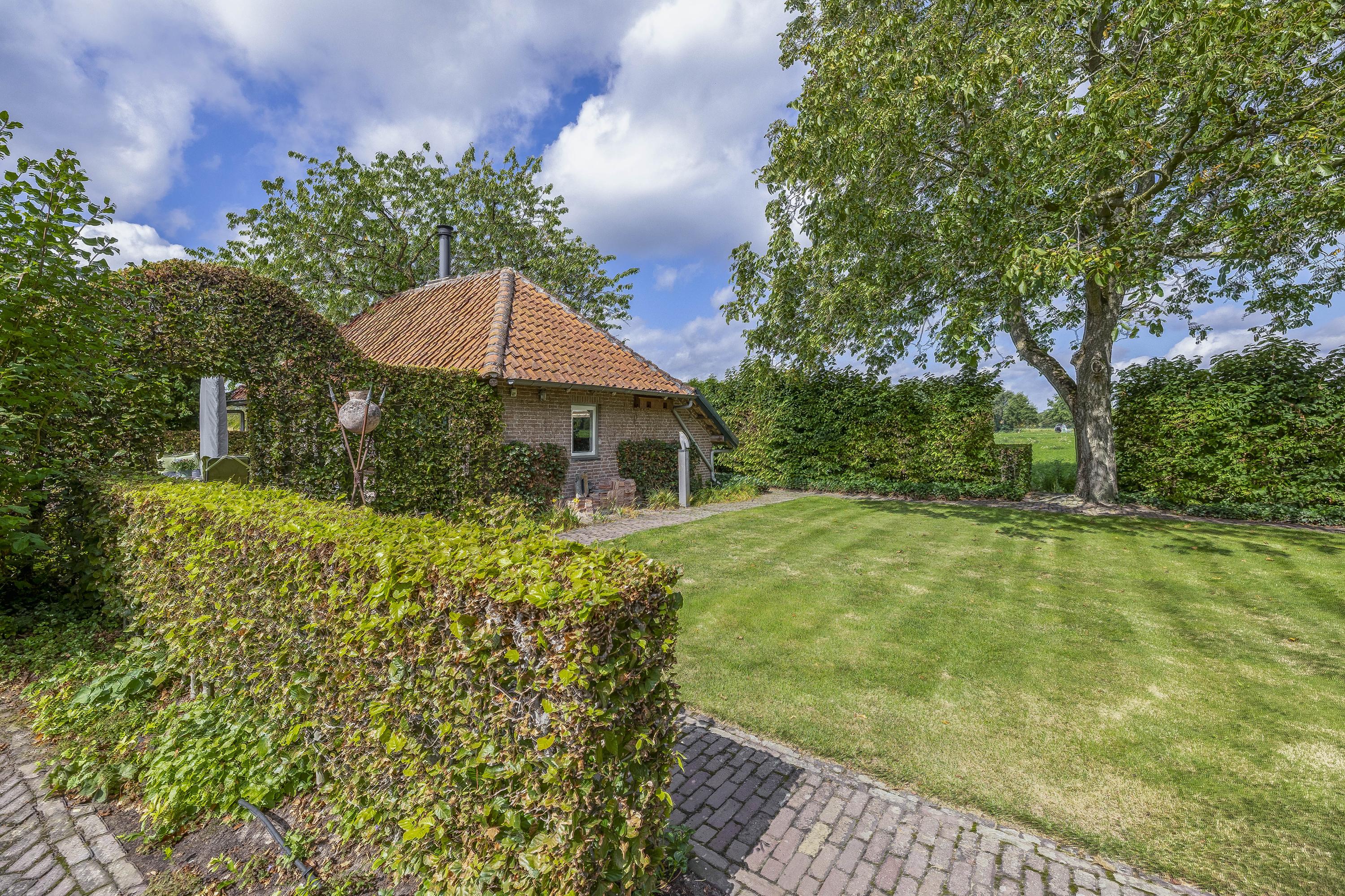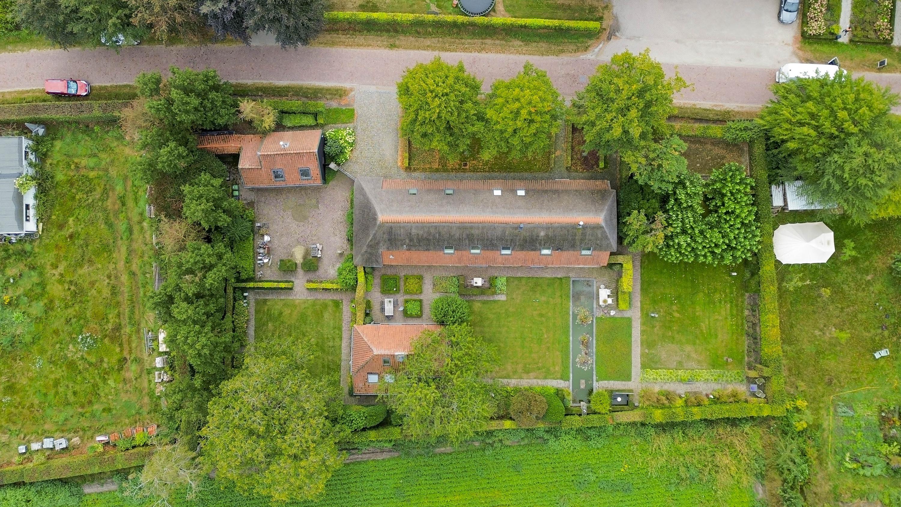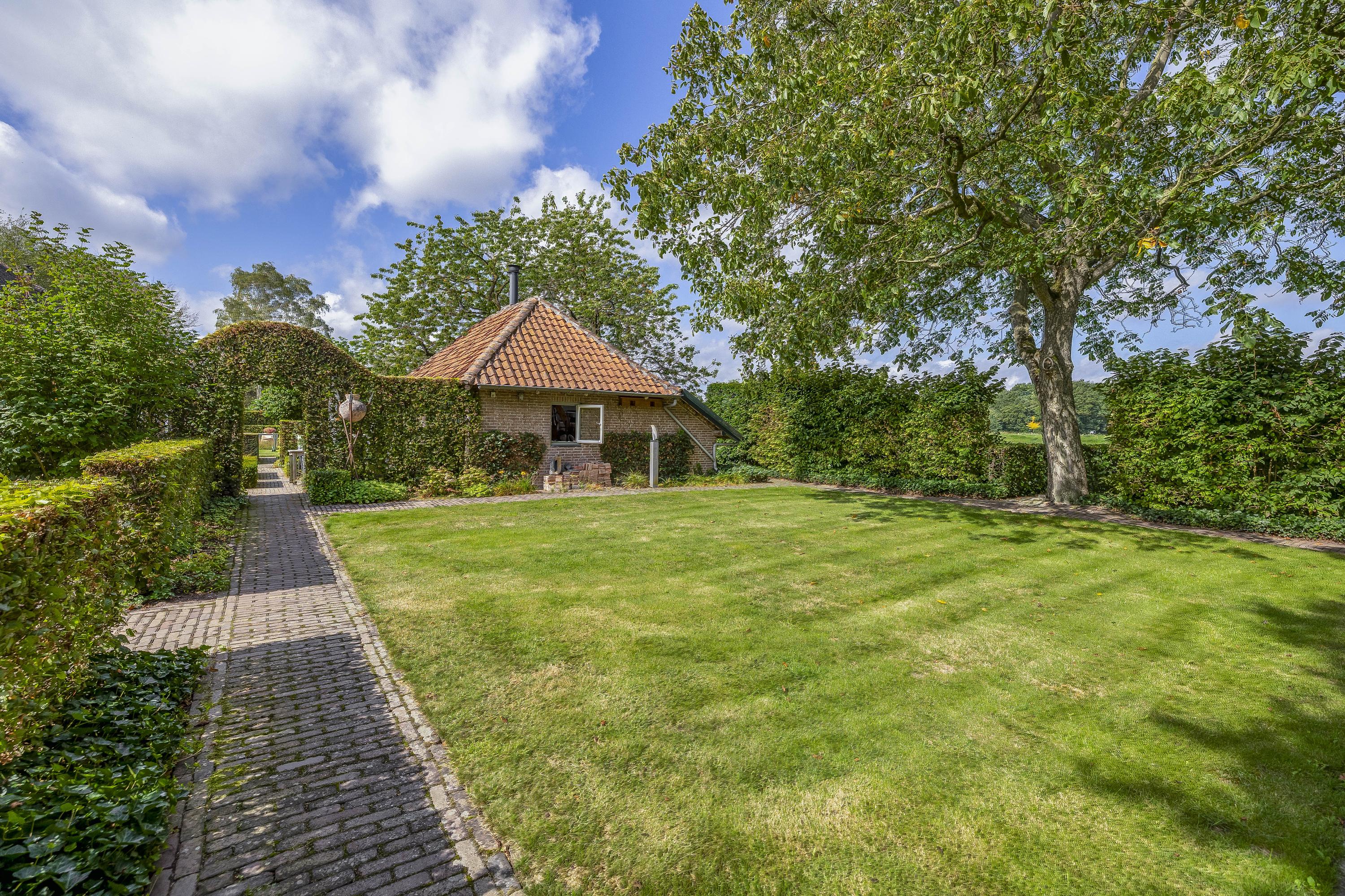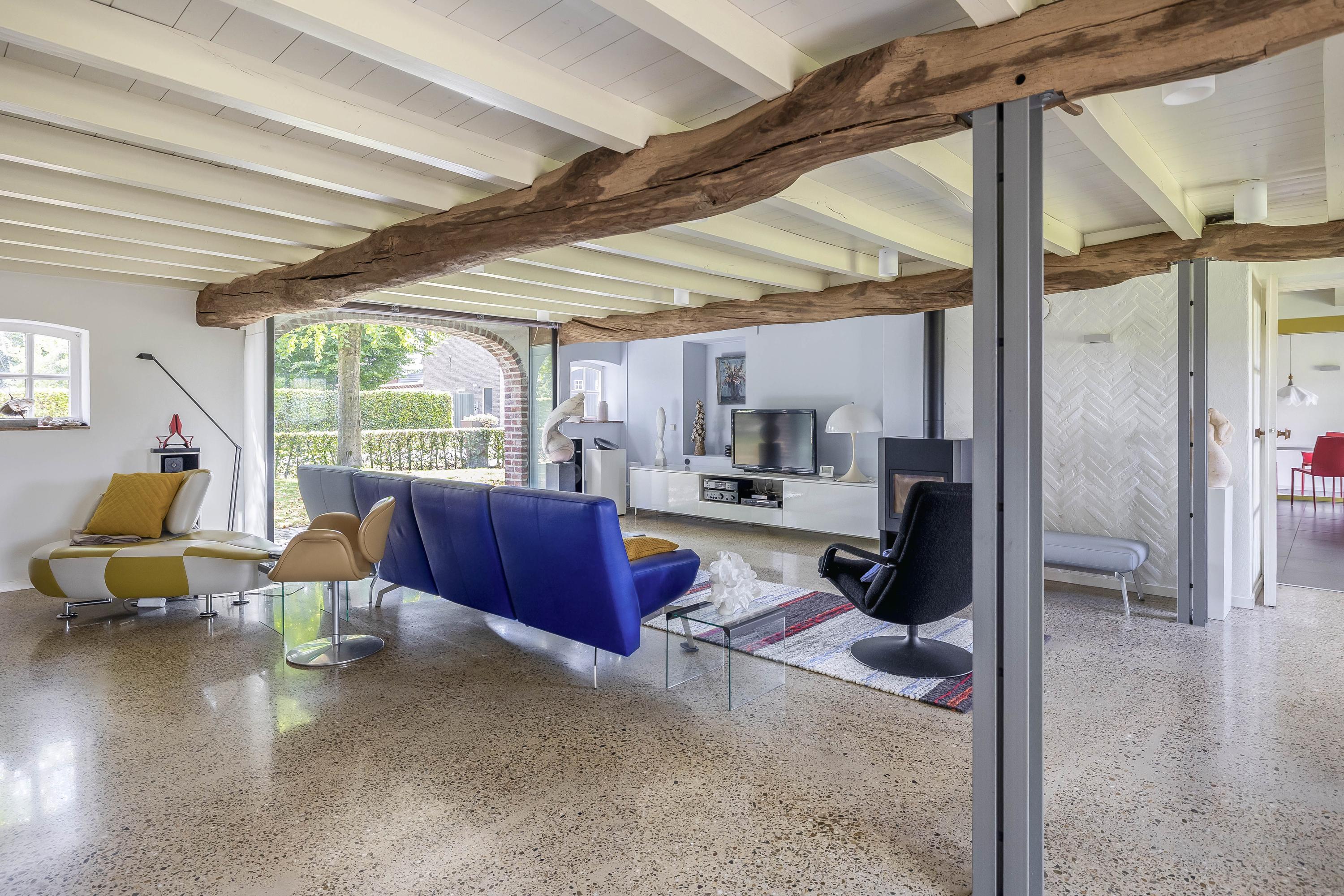 Beyond the primary residence, outbuildings extend possibility: a glazed garden house with fireplace, a studio with wine cellar, a double garage, and a barn crafted in old timber. Every segment is finished with practical sensibility—insulated, serviced, and offering ample storage. The gardens, landscaped and fully irrigated, unfold with private spaces and a variety of mature plantings, framed by rural views yet within easy reach of Valkenswaard and Veldhoven. This farmhouse for sale in Riethoven represents both continuity and progress—a place where every detail conveys care and consideration for a cultivated rural lifestyle.