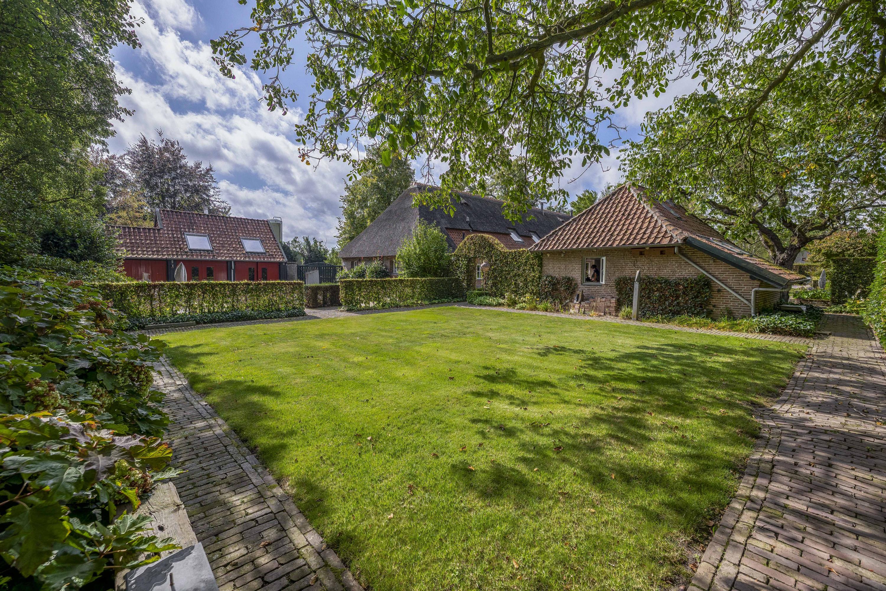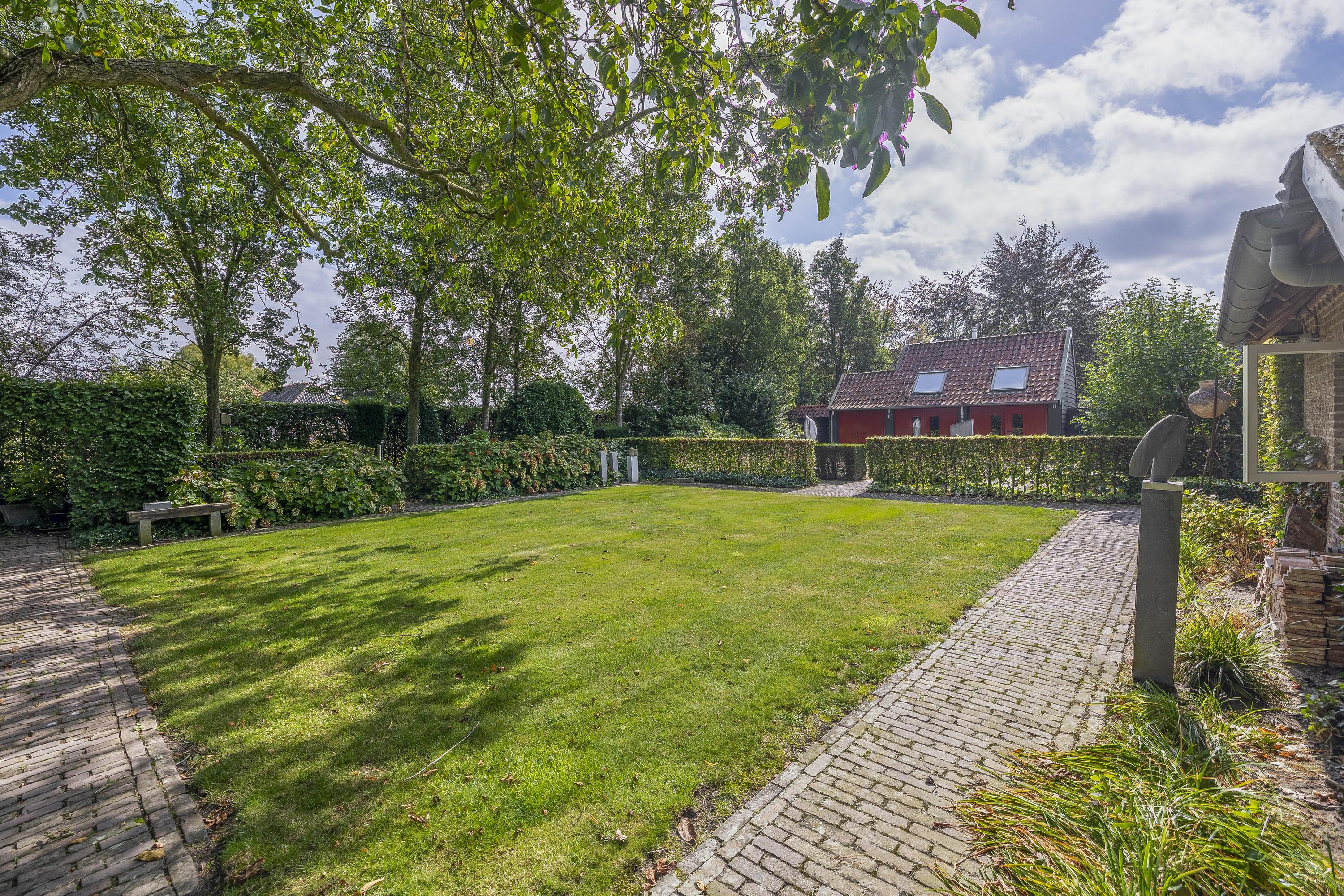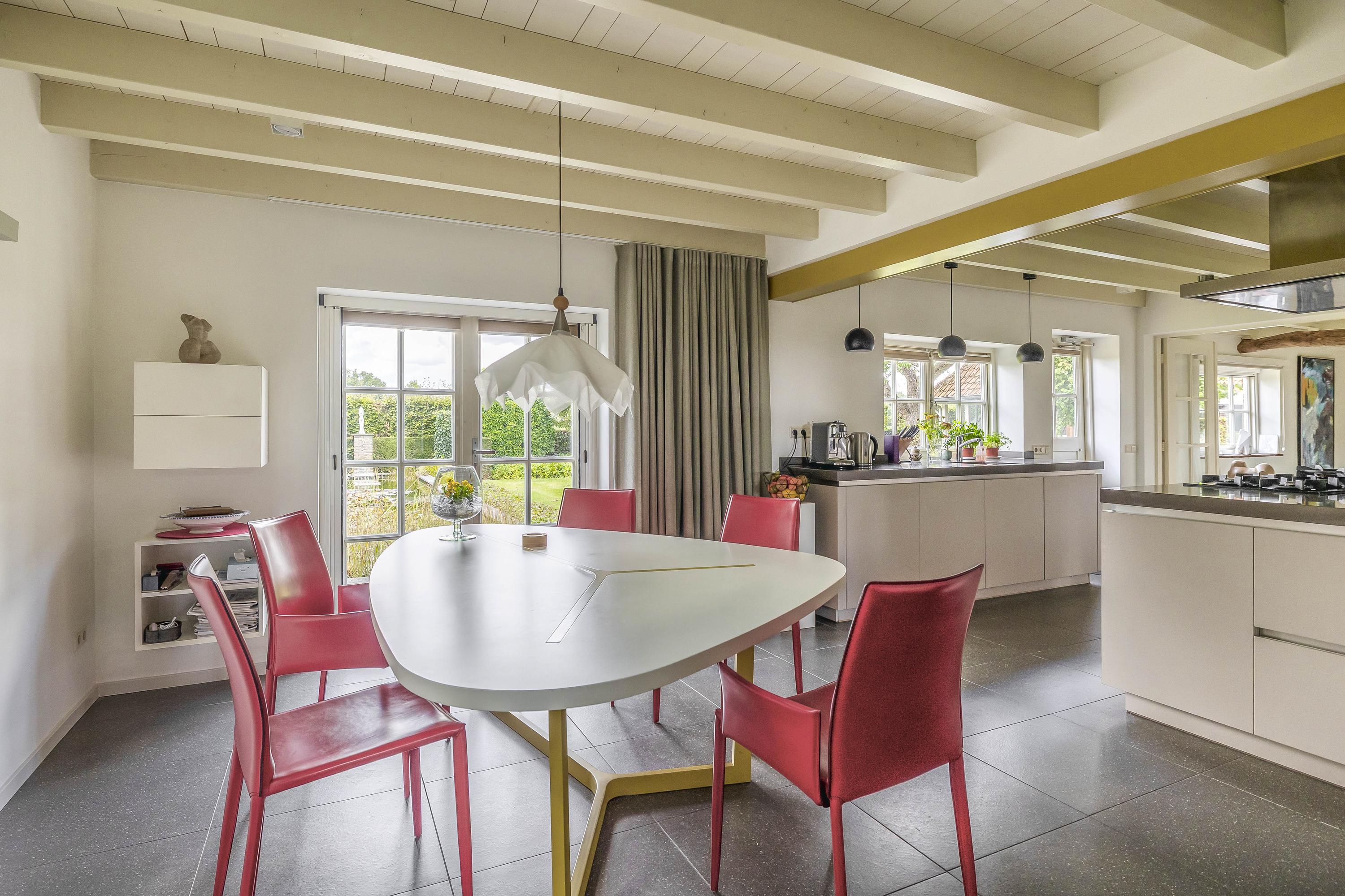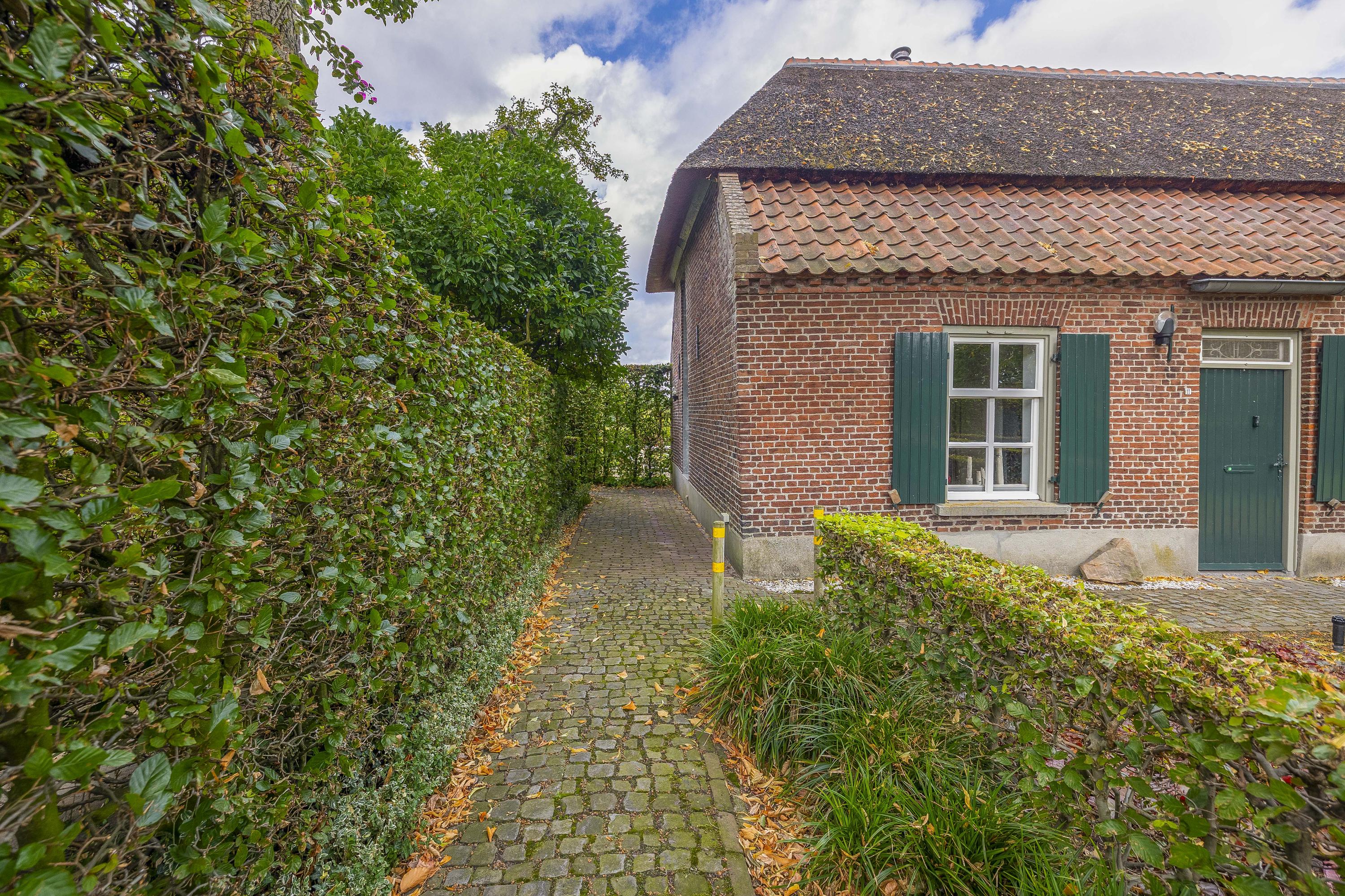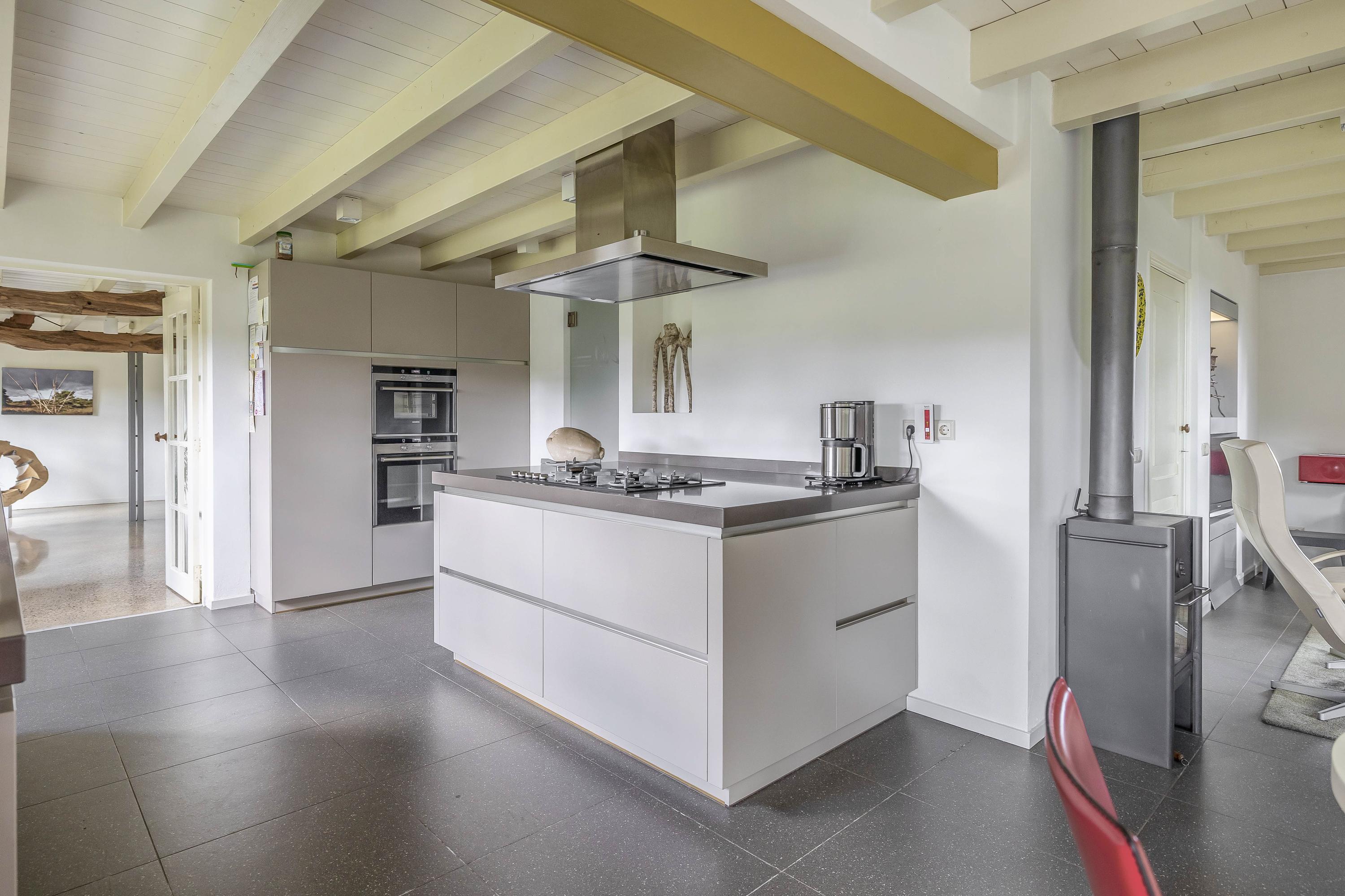 Beyond the primary residence, outbuildings extend possibility: a glazed garden house with fireplace, a studio with wine cellar, a double garage, and a barn crafted in old timber. Every segment is finished with practical sensibility—insulated, serviced, and offering ample storage. The gardens, landscaped and fully irrigated, unfold with private spaces and a variety of mature plantings, framed by rural views yet within easy reach of Valkenswaard and Veldhoven. This farmhouse for sale in Riethoven represents both continuity and progress—a place where every detail conveys care and consideration for a cultivated rural lifestyle.