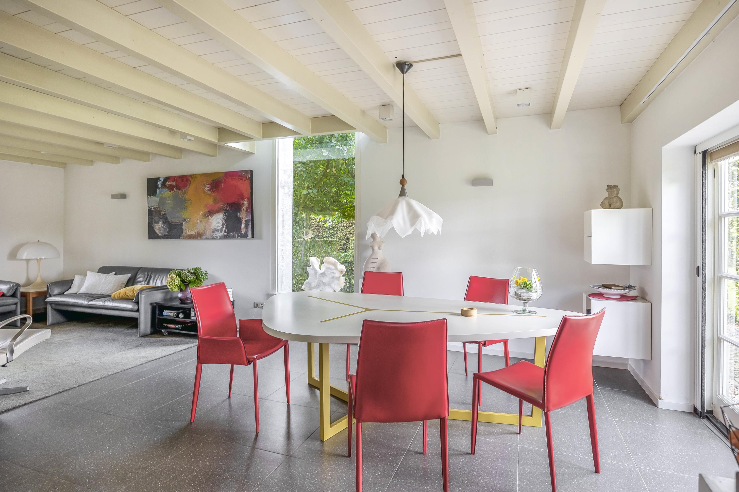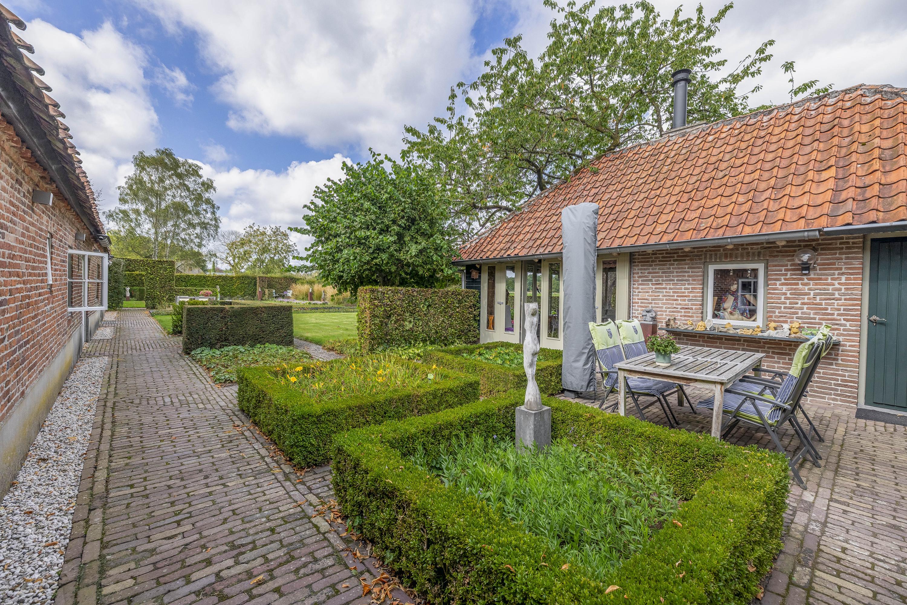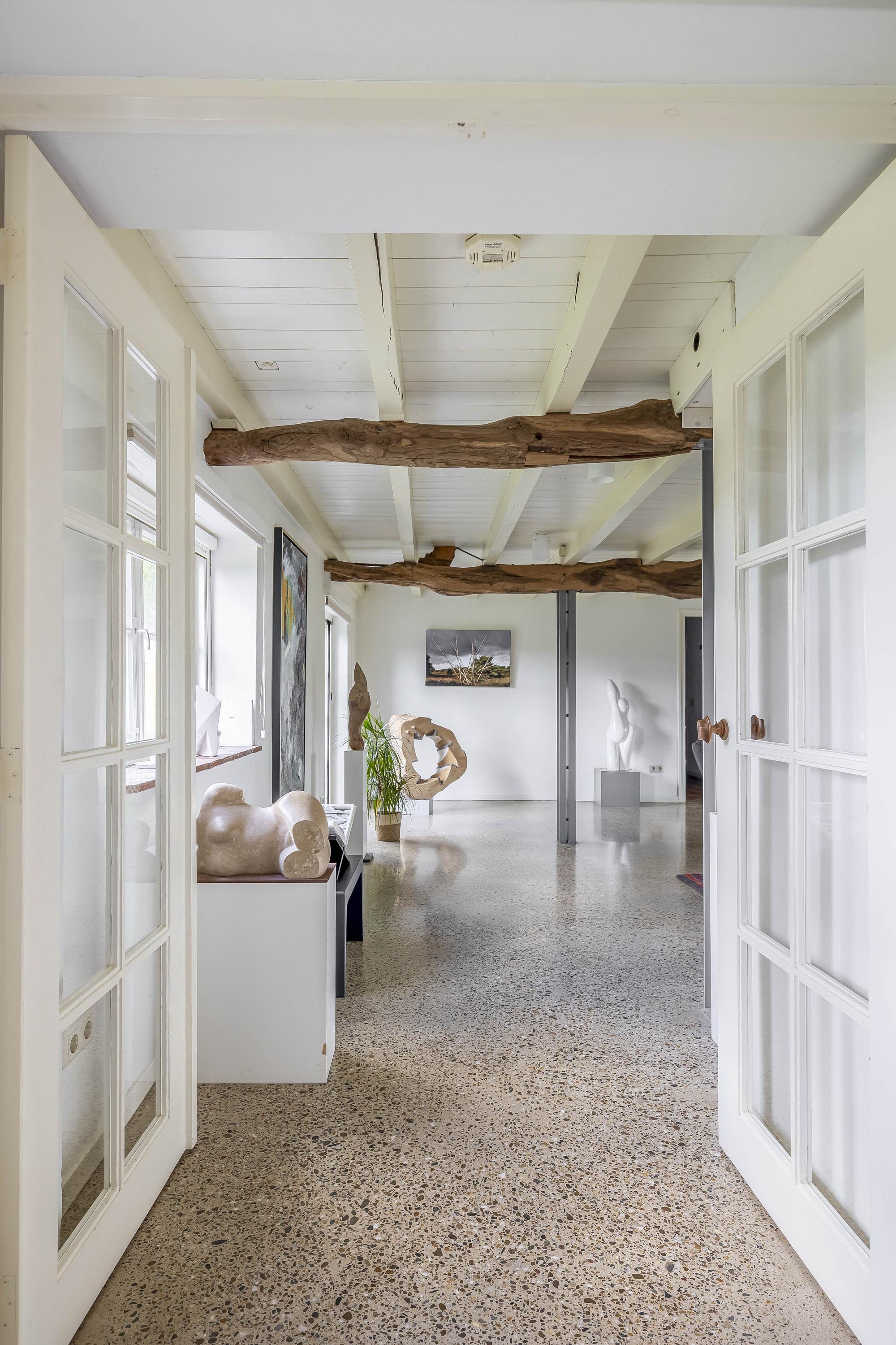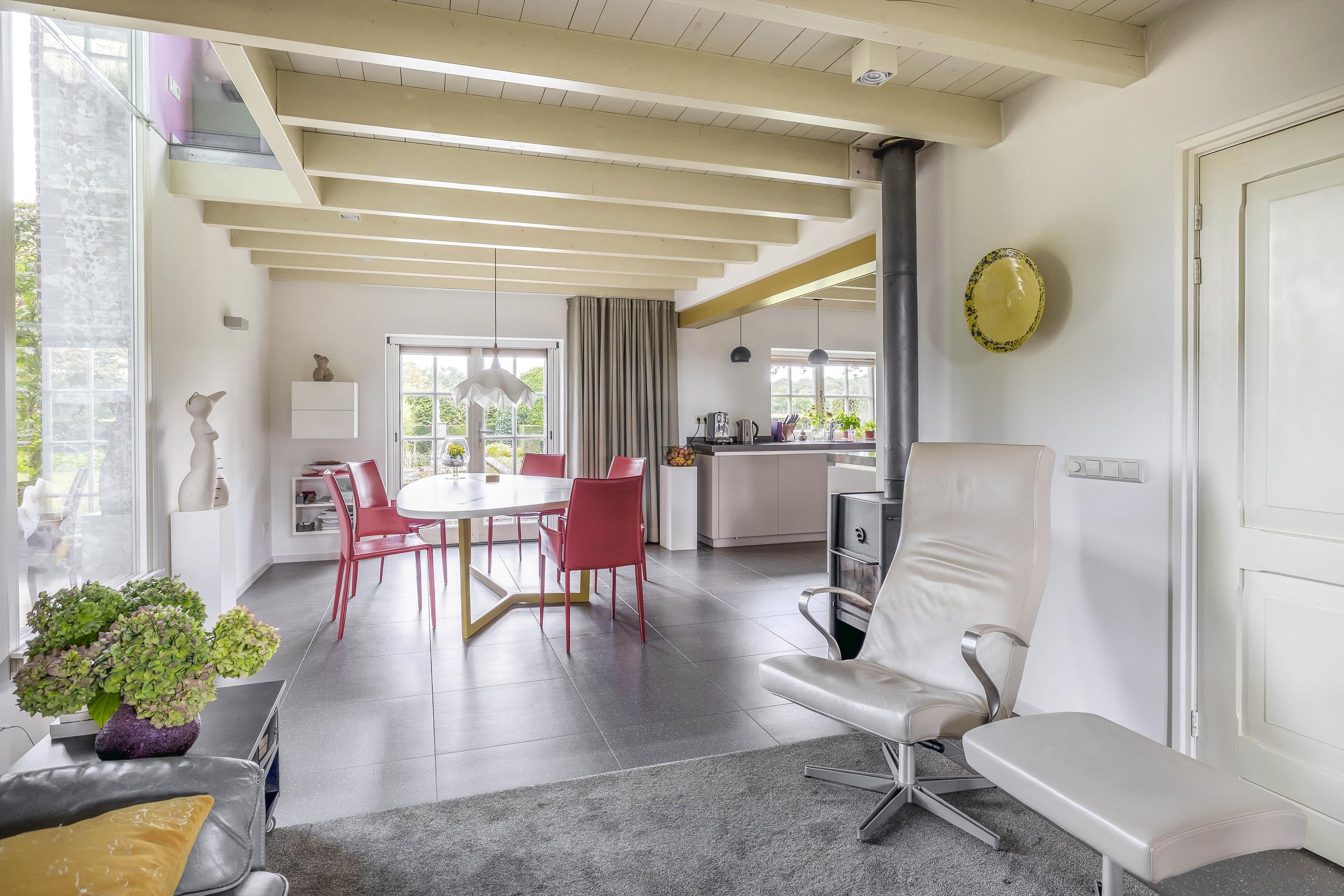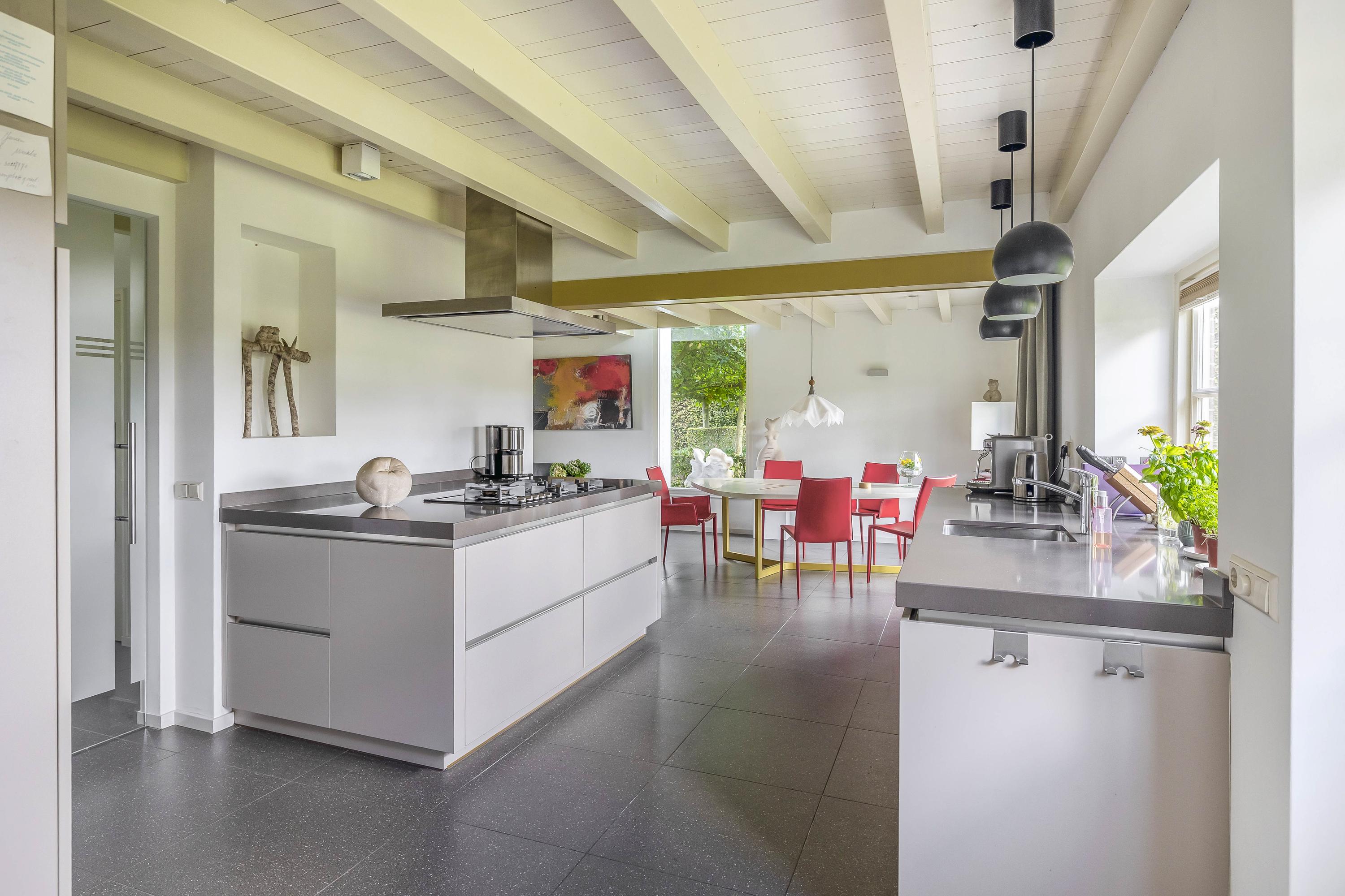 Beyond the primary residence, outbuildings extend possibility: a glazed garden house with fireplace, a studio with wine cellar, a double garage, and a barn crafted in old timber. Every segment is finished with practical sensibility—insulated, serviced, and offering ample storage. The gardens, landscaped and fully irrigated, unfold with private spaces and a variety of mature plantings, framed by rural views yet within easy reach of Valkenswaard and Veldhoven. This farmhouse for sale in Riethoven represents both continuity and progress—a place where every detail conveys care and consideration for a cultivated rural lifestyle.