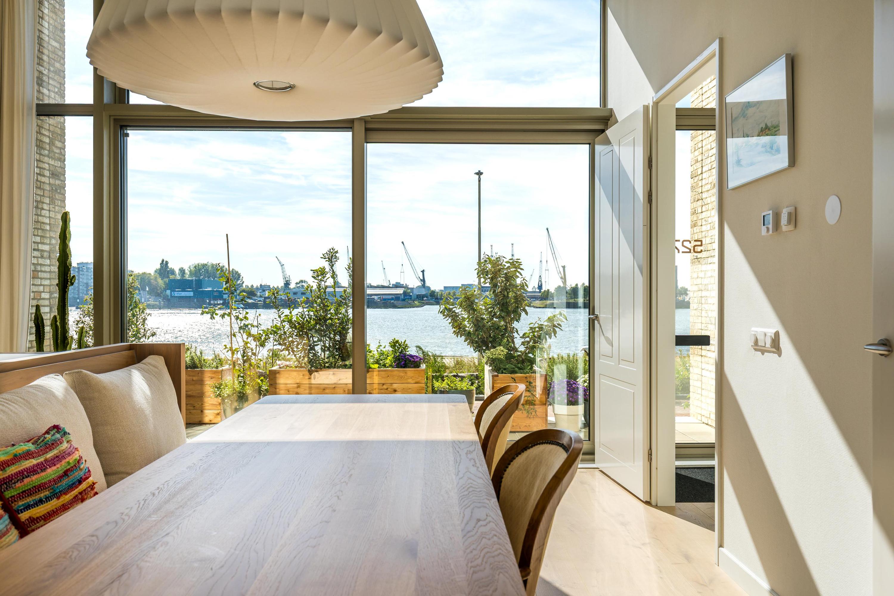 A living painting in your window every day: this spacious and stylishly finished apartment on the Lloydkade offers luxury, space, and panoramic views of the Maas River from sunrise to sunset.