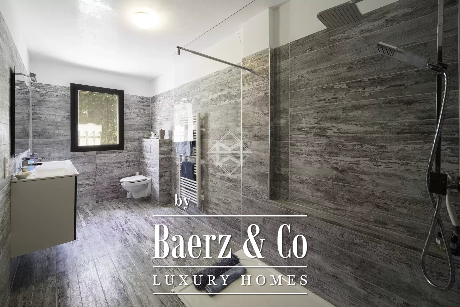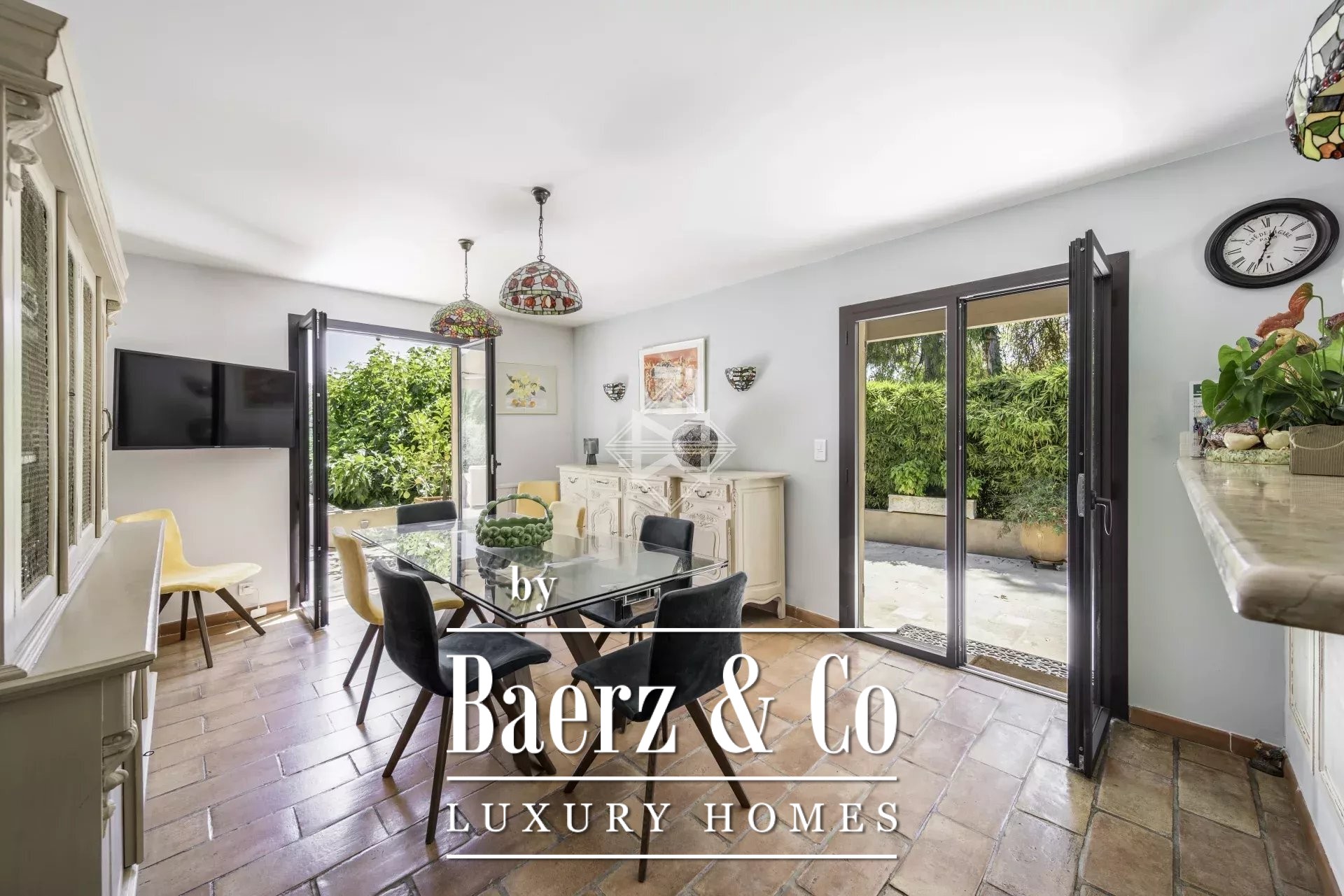 Accommodation is thoughtful and substantial, with five bedrooms, four of which rest at garden level for ease and intimacy. The home is arranged for both family and guests, offering comfort and intelligent separation of living spaces. Practical amenities include an irrigation sprinkler, intercom, electric gate, convector heating, garage, and carport. The grounds offer the potential for a swimming pool, completing a property that values composure and connection to its Provençal setting. For those seeking a luxury villa for sale in Saint-Paul-de-Vence, this residence offers a restrained modernity with a sense of place.