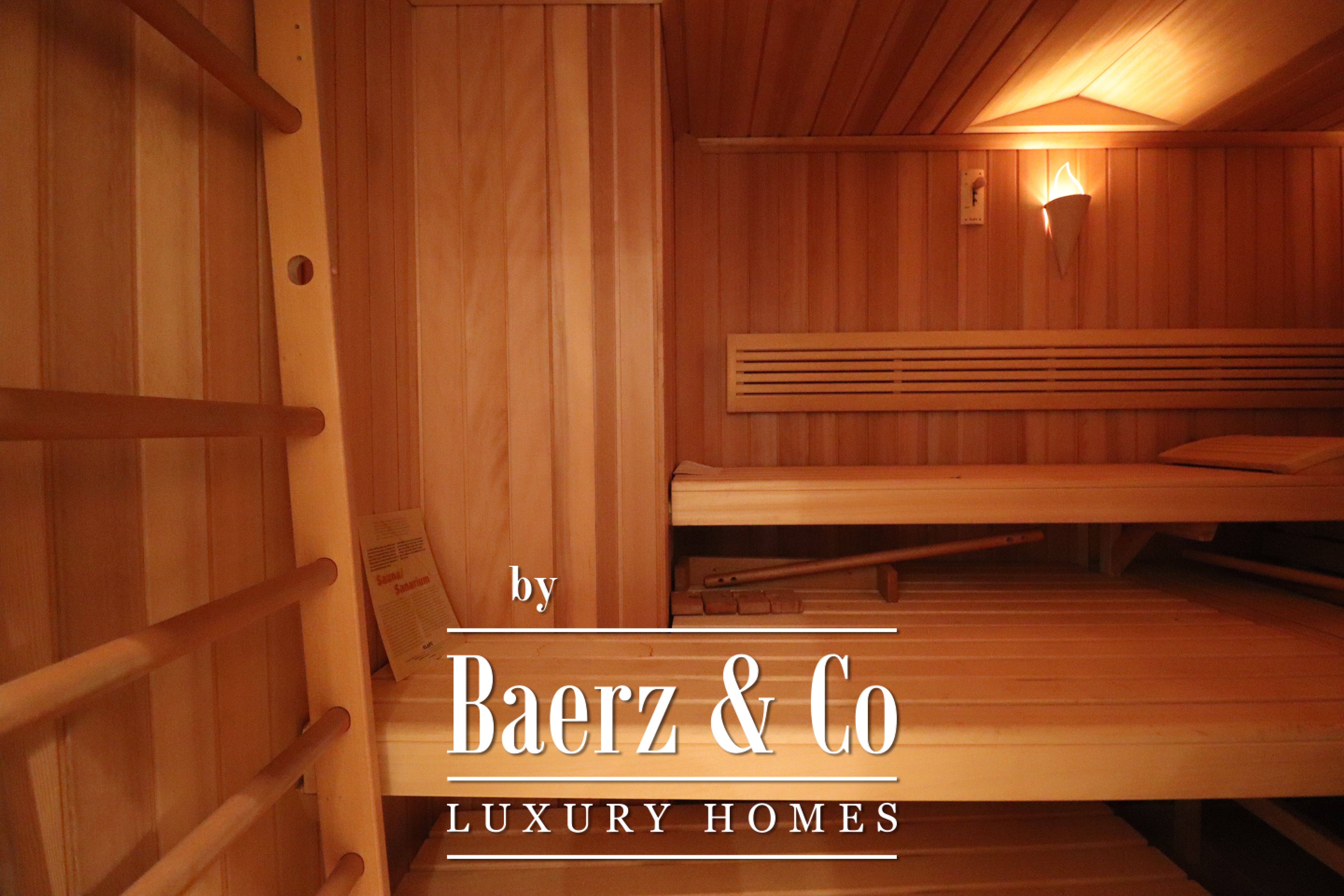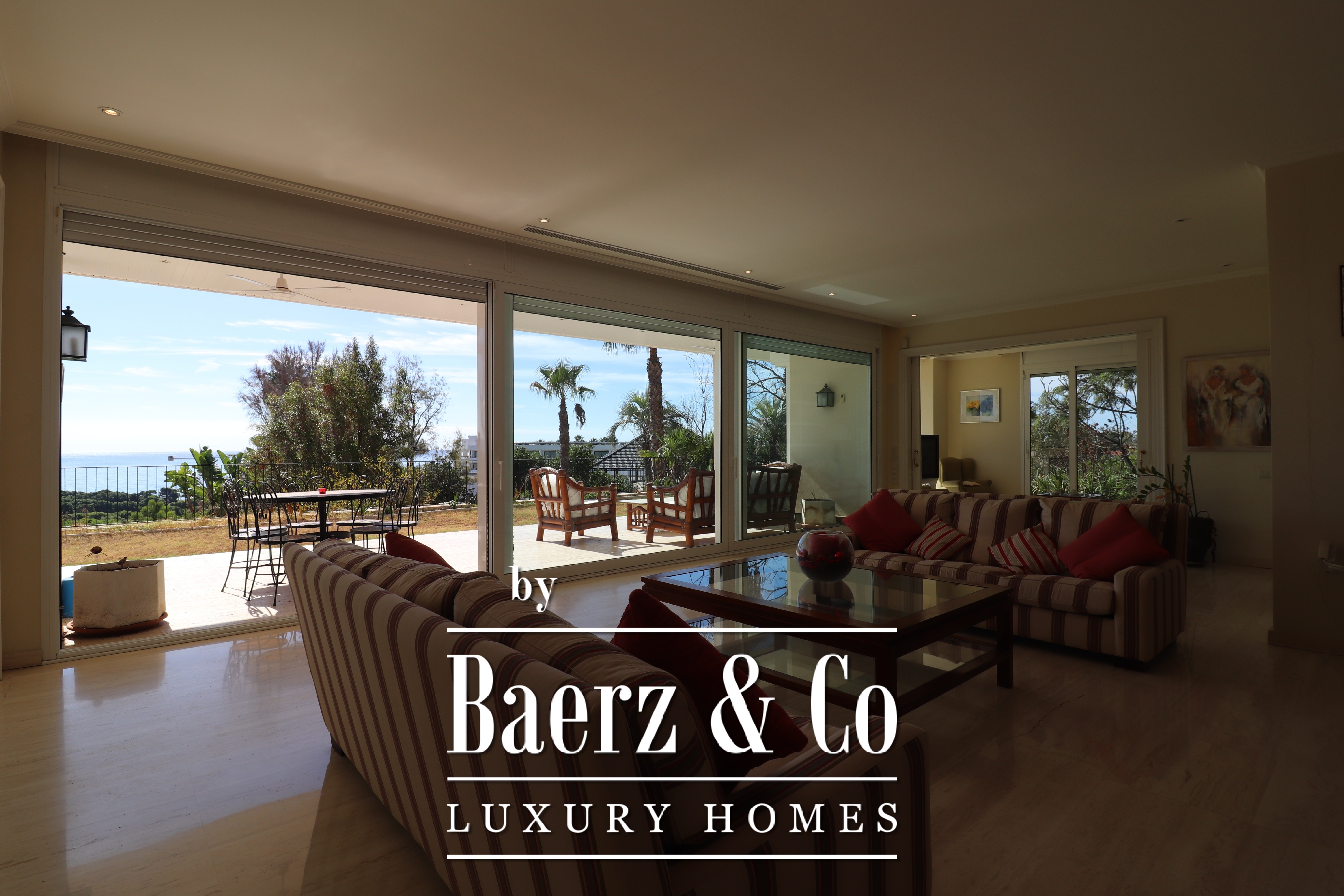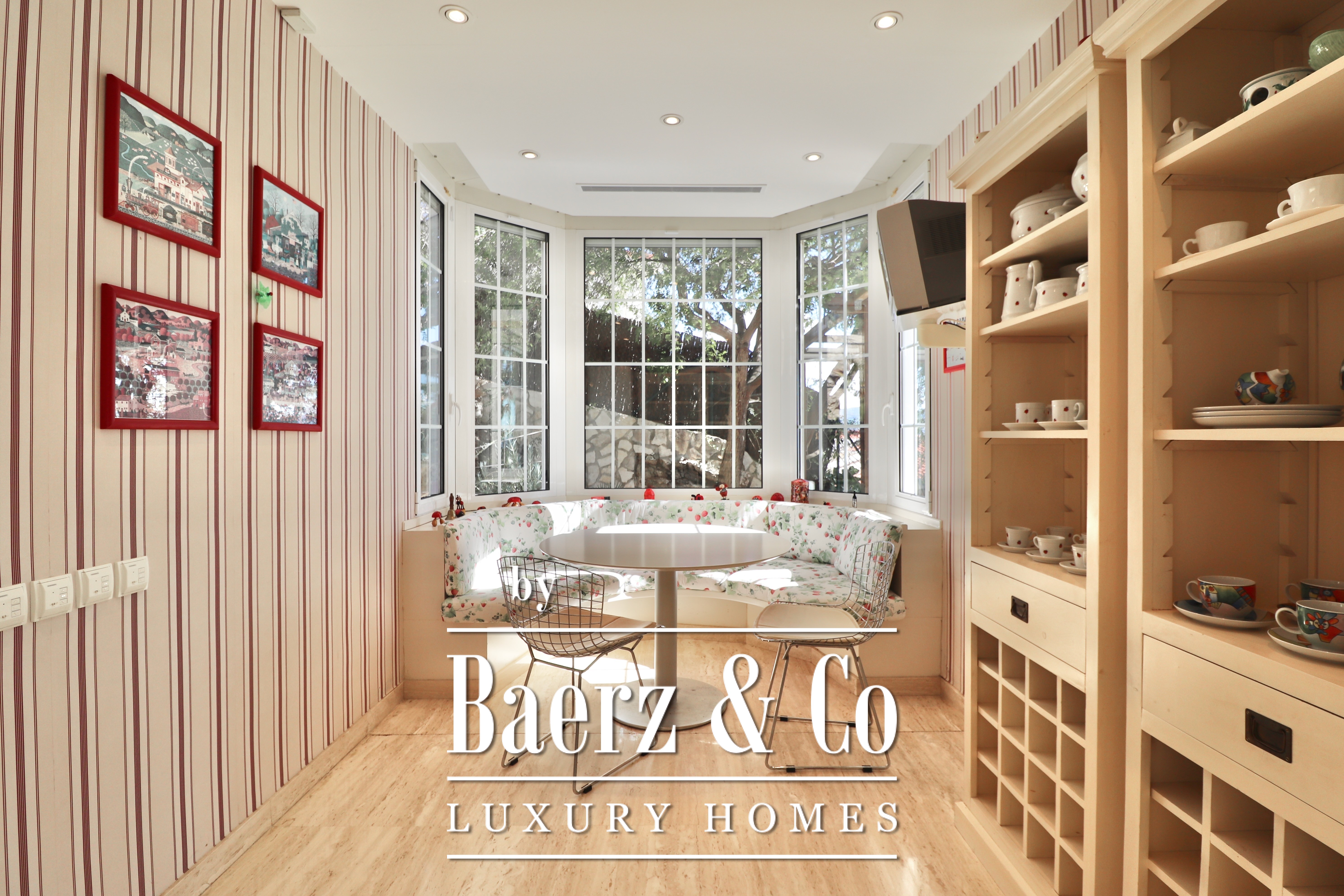 Designed for discretion and comfort, the villa unfolds across three levels, connected by a private lift. The main level opens with a refined entrance hall leading to a fluid living space, including living and dining rooms, a media zone, and a fully equipped kitchen with an adjoining service area and dedicated office. Five bedrooms and eight bathrooms allow for both family intimacy and entertaining on a generous scale.