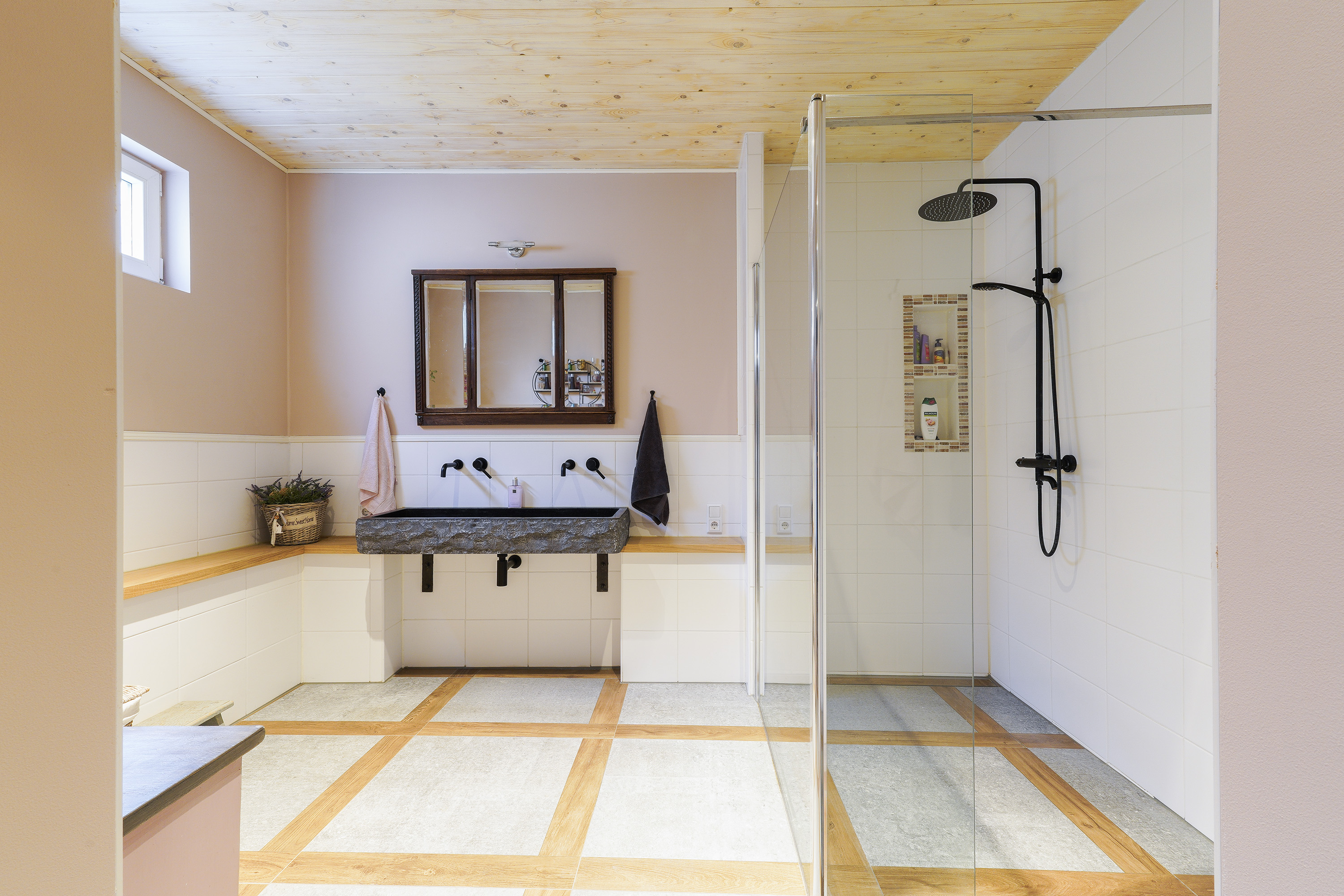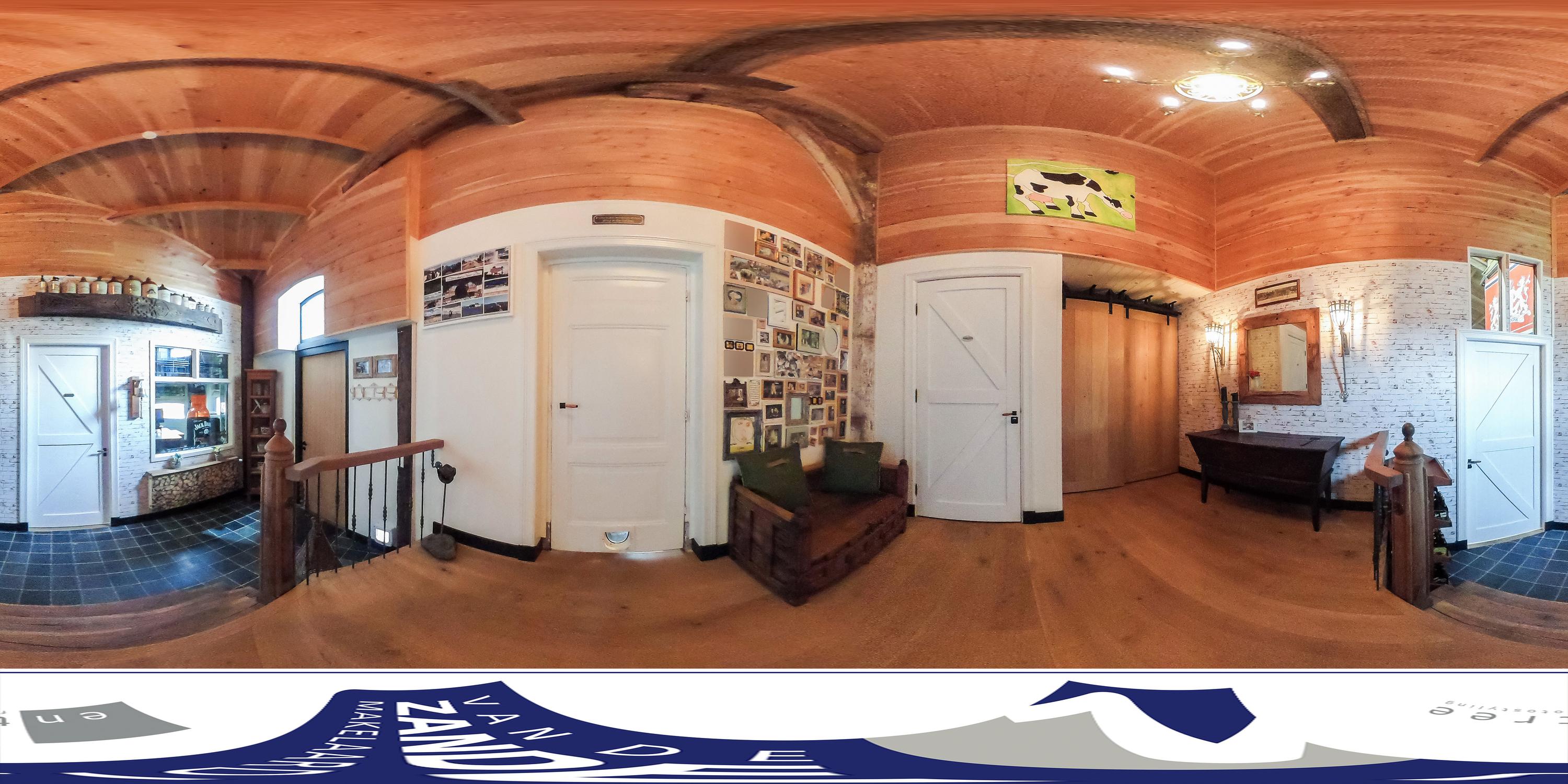 De aangrenzende garage doet zijn naam geen eer aan. Met een oppervlakte van circa 160 m², een grote sectionaaldeur aan de achterzijde van 3,5 meter breed én hoog, een vliering en extra inpandige ruimtes is dit een droom voor liefhebbers van auto’s, stallen van een camper, verzamelaars of hobbyisten. Een grote bus rijdt hier moeiteloos naar binnen. En dan hebben we het nog niet eens over de overige inpandige ruimtes gehad, want met de zolder boven de bar beschikt de woning in het geheel over ruim 300 m² aan extra ruimte naast de woonoppervlakte.