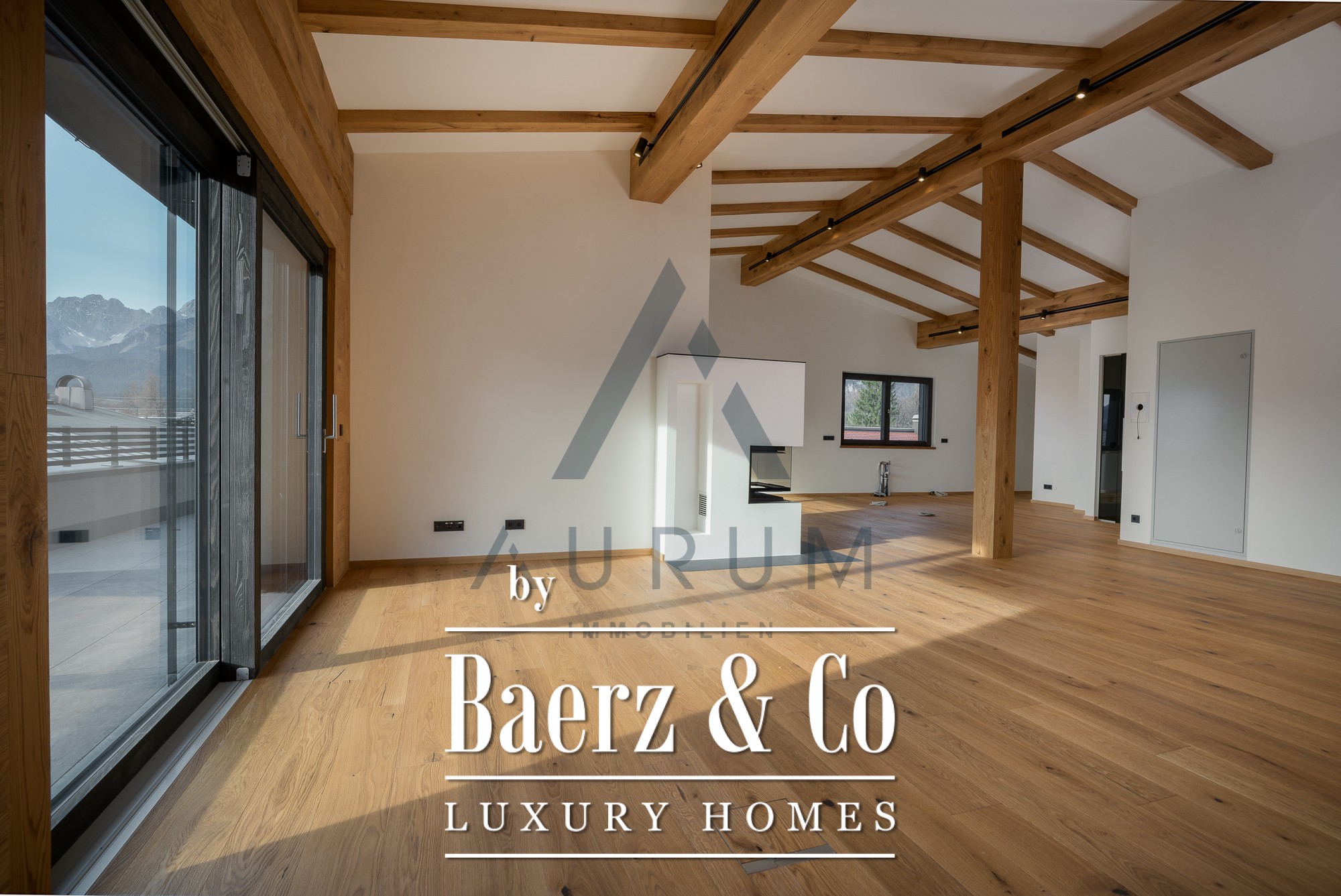 The penthouse St. Johann in Tirol brings urban elegance and mountain vistas into rare alignment. Set within a discreet new building of just five refined residences, this 175 m² home pairs a central address with thoughtfully conceived privacy. Entering the penthouse, light becomes a signature, drawn through expansive glazing onto the 110 m² sun terrace, where uninterrupted views of the Kitzbüheler Horn and Wilder Kaiser define the setting. Inside, three bedrooms and two bathrooms, marked by clean lines and high-grade fixtures, support daily comfort. The presence of a separate dressing room and underfloor heating deepens the experience of understated luxury. A fireplace anchors the living space with authentic warmth. Sustainable building methods and a renewable energy system echo a mindful approach to the future. Direct lift access, a cellar compartment, and two covered parking spaces add ease. Spend each day just steps from St. Johann’s renowned amenities—shops, schools, medical services—set against a landscape of ski slopes, cross-country trails, and hiking routes. This penthouse apartment is both a retreat and a vantage point on the best of alpine life, making it a compelling opportunity for those seeking a luxury penthouse for sale in St. Johann in Tirol.