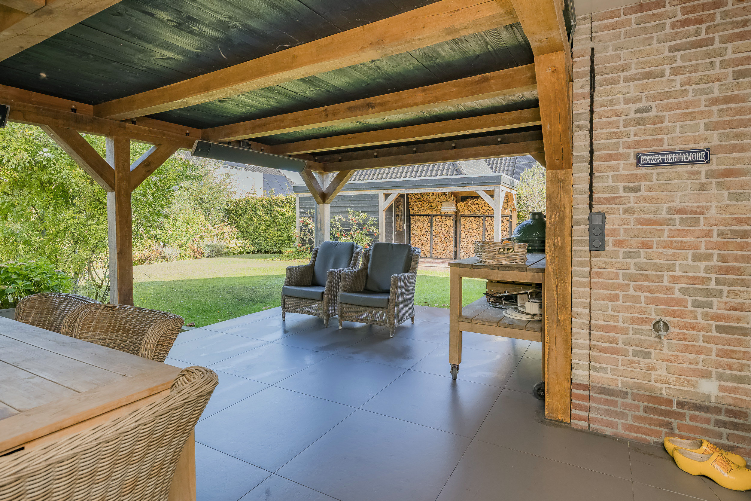 The villa is surrounded by a beautifully landscaped garden with plenty of privacy, a large rose arch, a garden shed with a canopy, and a beautiful oak veranda. Here you can enjoy the outdoors all year round; a beautiful extension of the living room.