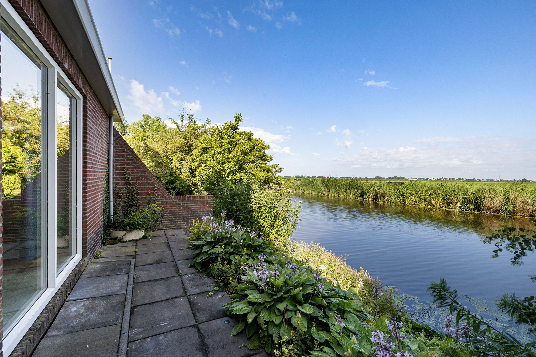 Thanks to its corner position with (private) water on all sides, the garden is completely free and offers optimal privacy. The rear garden features a small pond, a garden shed and along the bank several (older) jetties for mooring boats. Here you can enjoy the pure Frisian outdoor life from early morning until late evening. The navigable water is suitable for leisure boating and is directly connected to the Aldfeart towards Sneek, the Zwette towards Leeuwarden (Eleven Cities route) and the Bangafeart towards the Sneekermeer and Terherne.