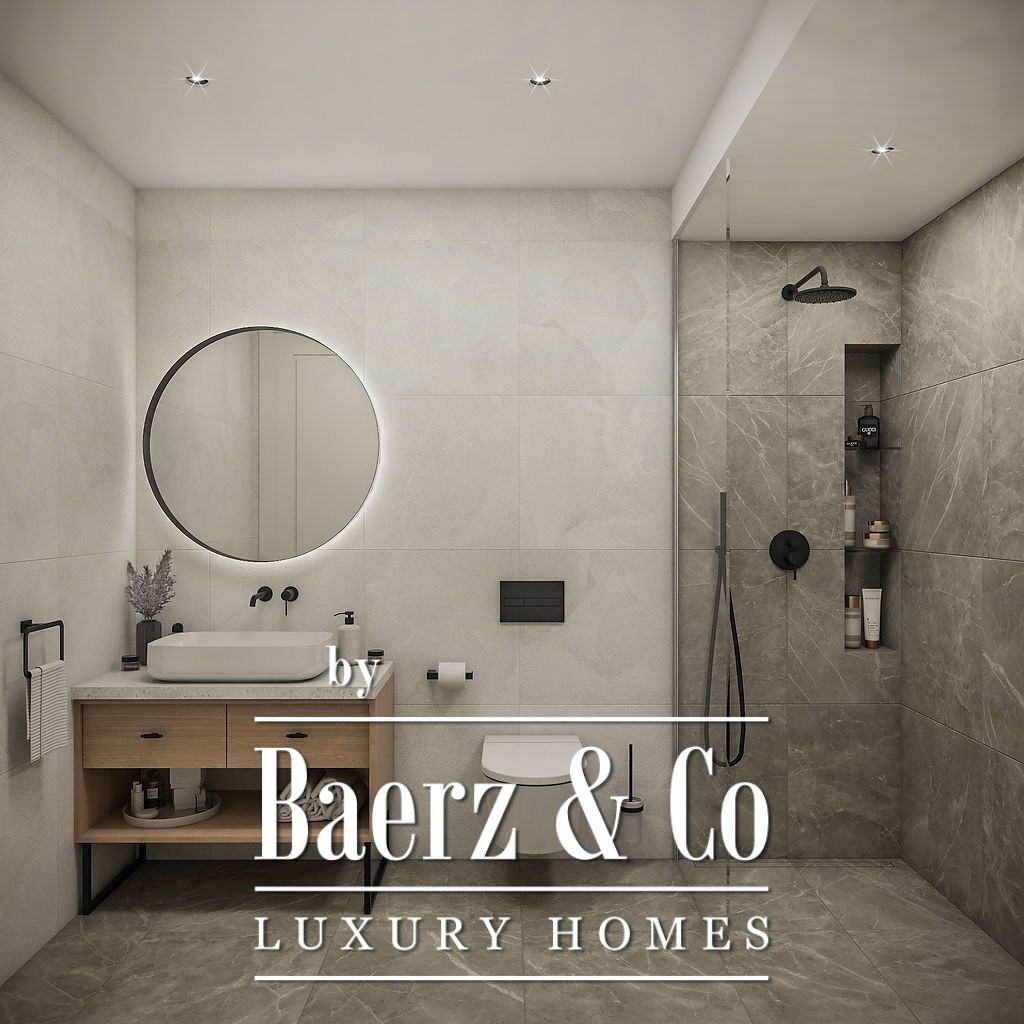 The layout supports both harmony and privacy with three bedrooms, two bathrooms, a separate toilet, and a fluid open-plan living and dining area. Floor-to-ceiling wardrobes, custom Nolte kitchens with fully integrated appliances, and underfloor heated bathrooms present a considered approach to daily life. Air flows quietly through a wind-free system, while video-enabled entry underscores privacy.