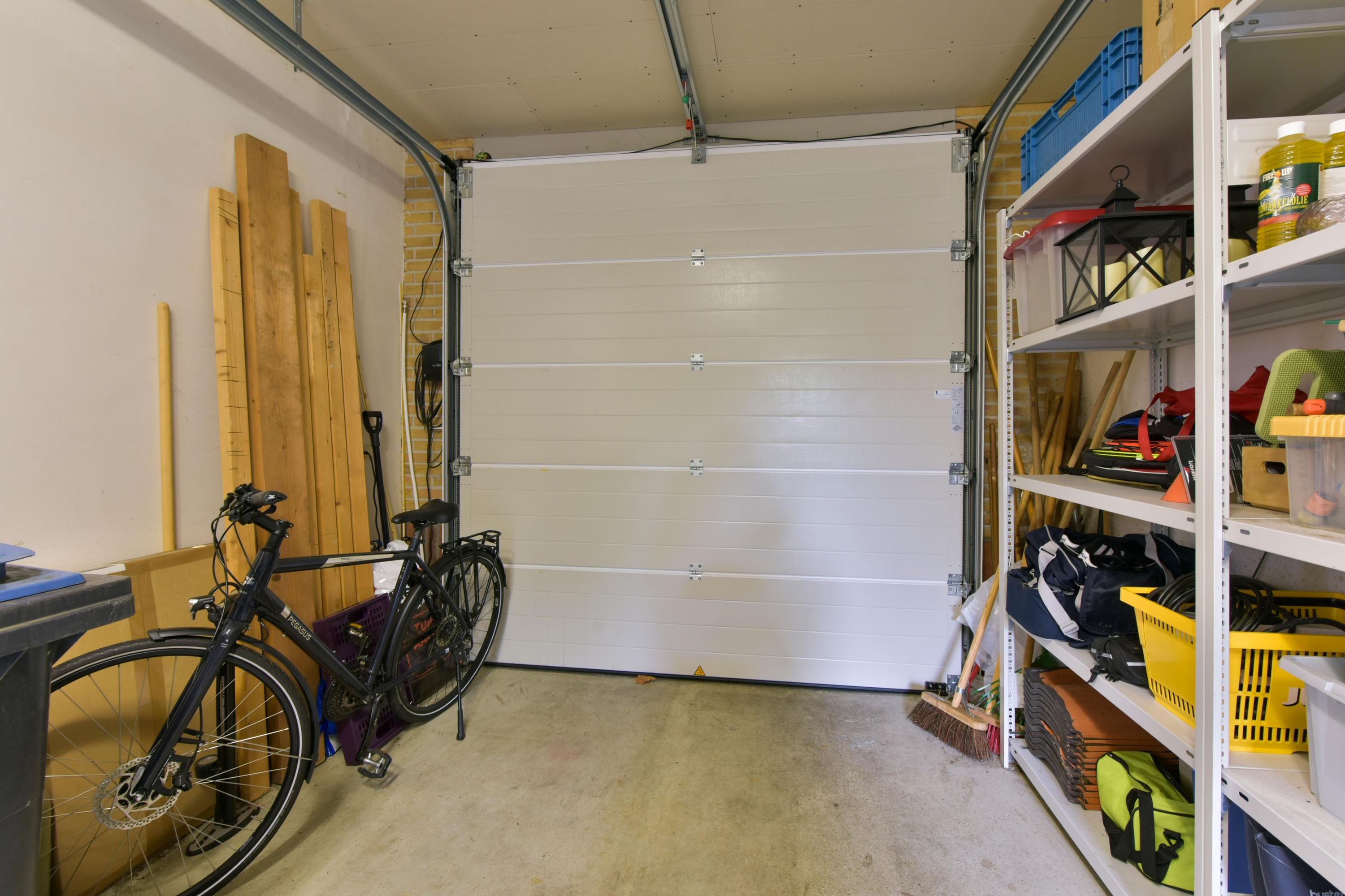 The garage is not only practical, with an electric roll-up door, water, electricity, and heating, but it can also serve as a workshop, storage, or hobby space.