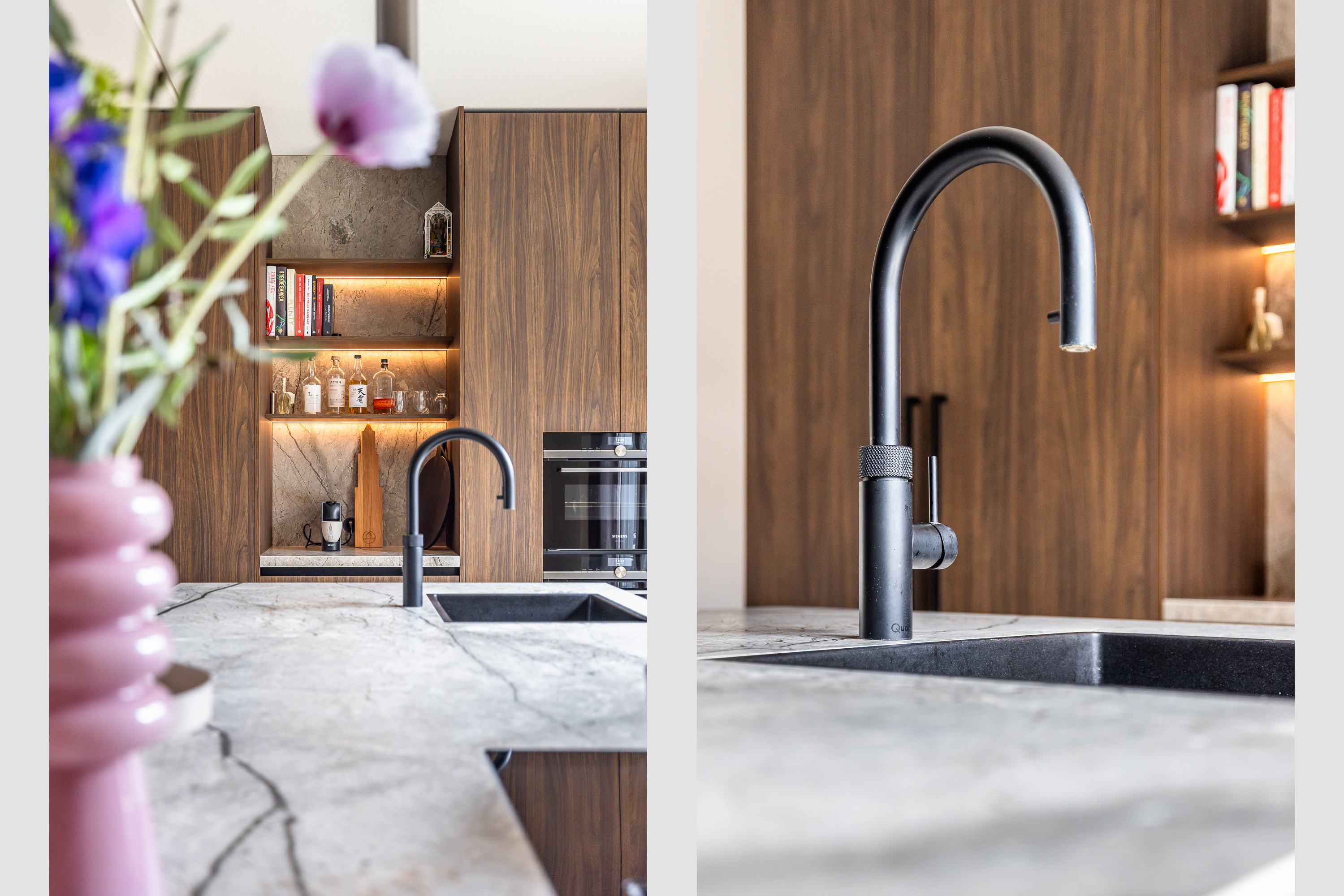 Every element of this home has been thoughtfully designed. The atmosphere is warm, contemporary and luxurious. The bespoke kitchen is a real showstopper, featuring cabinetry that extends all the way to the ceiling and state-of-the-art appliances that can even be controlled via Wi-Fi. Preheat the oven while you’re on your way home, bake your bread rolls before you even head downstairs, or start cooking your eggs straight away. Pure luxury. Every detail has been carefully considered — have you noticed the perfectly aligned oven? We’re fans.