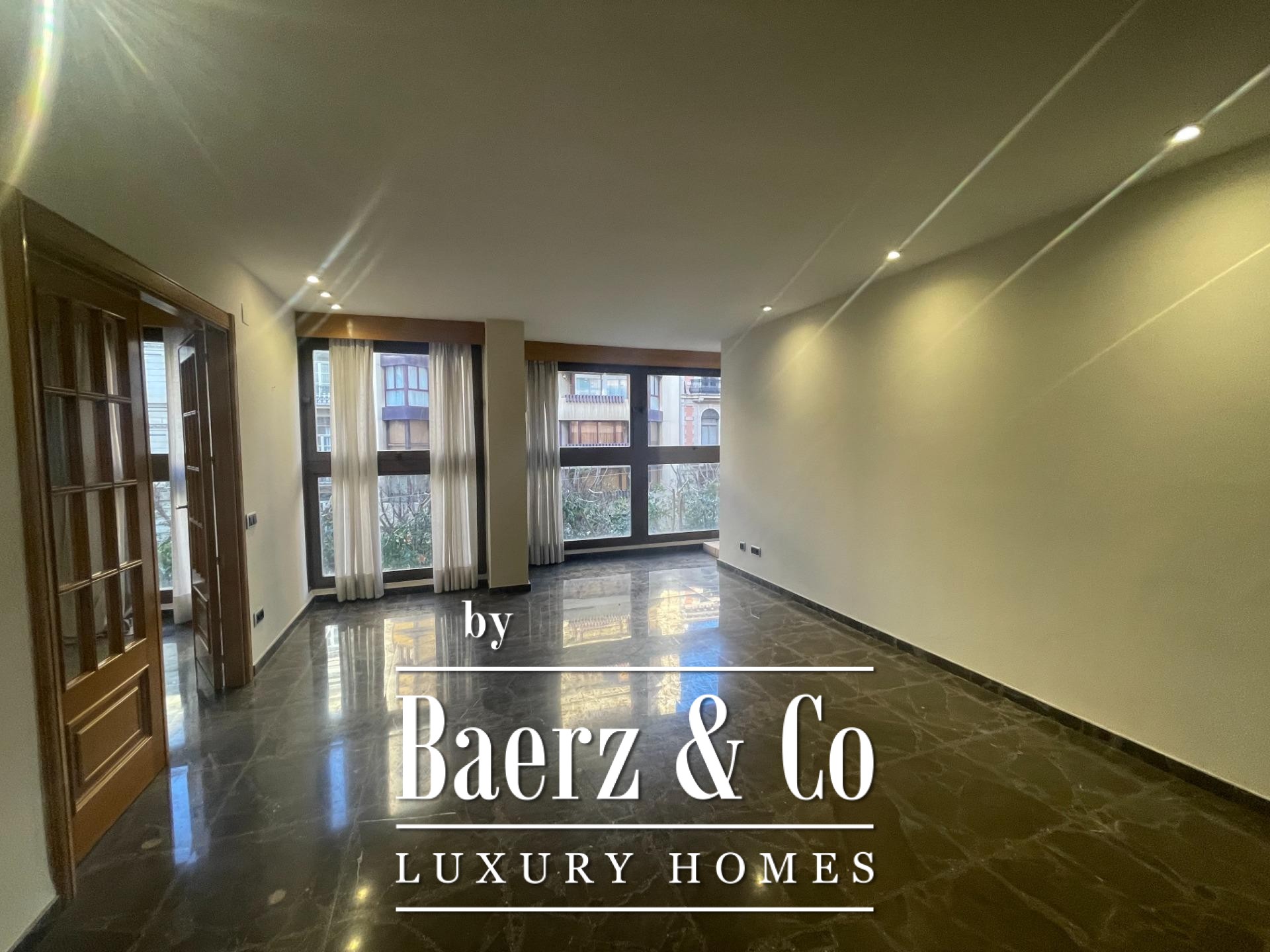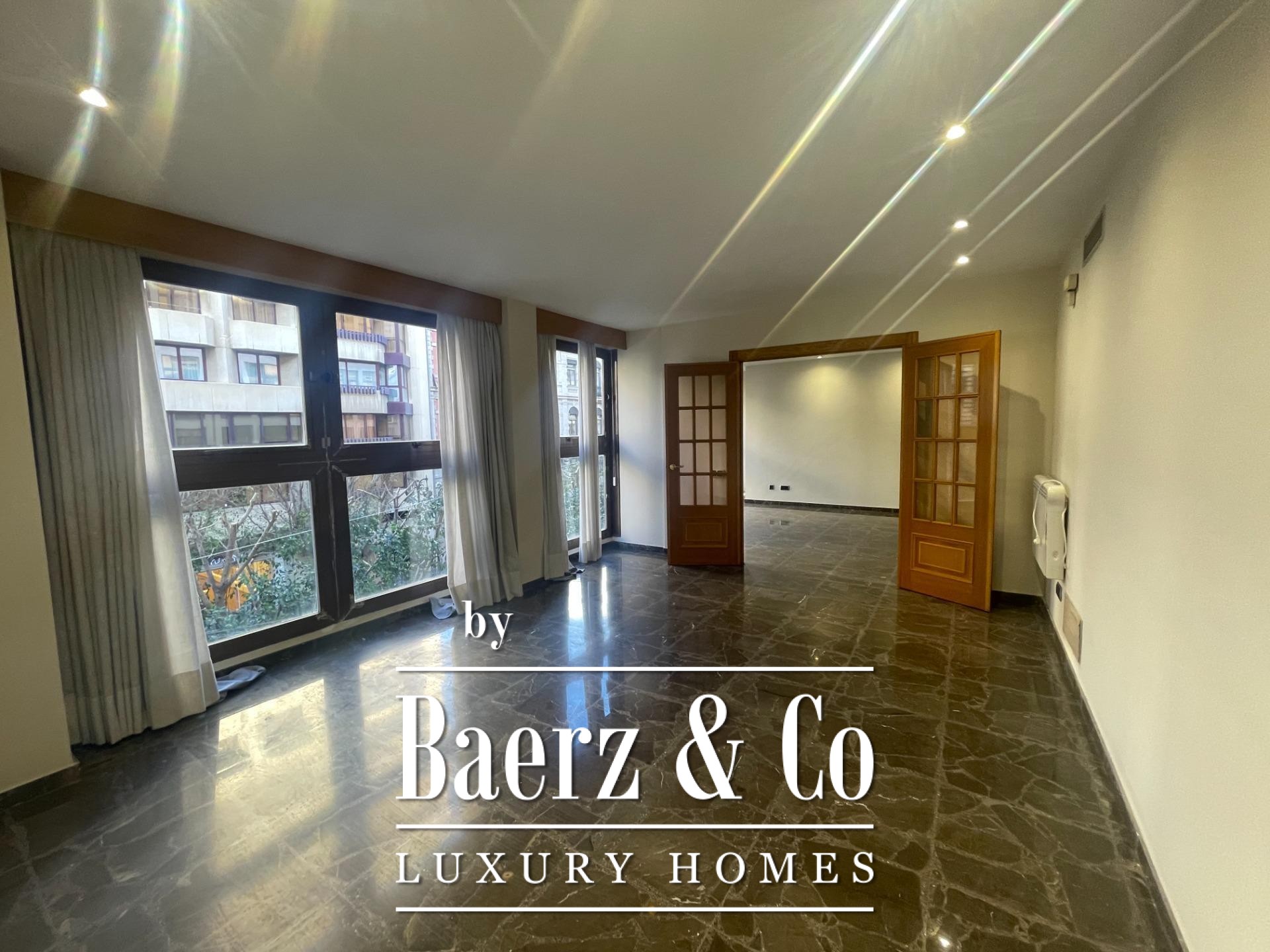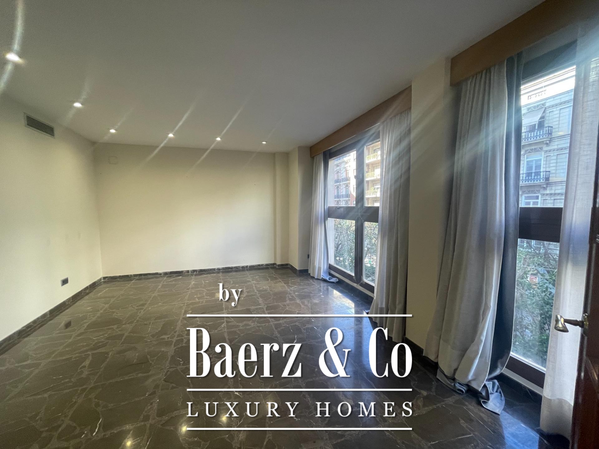 Apartment Valencia is defined by its serene presence on Colón Street within a modern building constructed in 1990. The 269 m² living area unfolds from a generous entrance hall into a broad living and dining space, illuminated by expansive windows that lend a sense of unhurried calm. Five double bedrooms, each with built-in wardrobes, include a master suite distinguished by its own dressing room. Three full bathrooms, one en suite, and a guest toilet complete the thoughtfully planned layout.