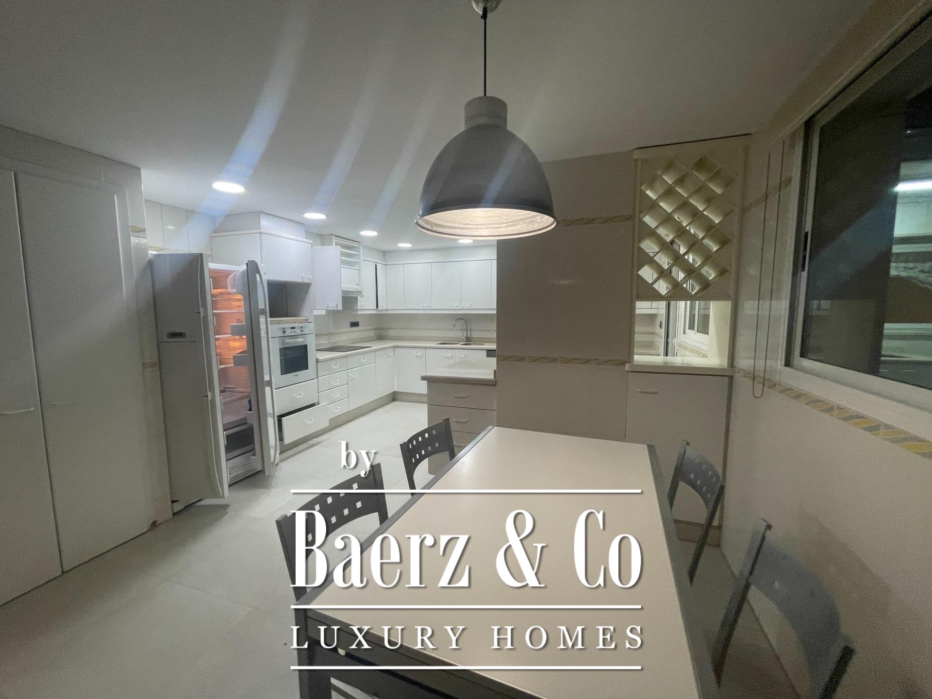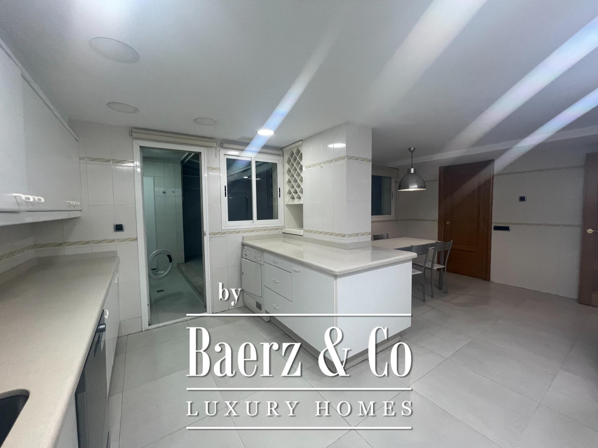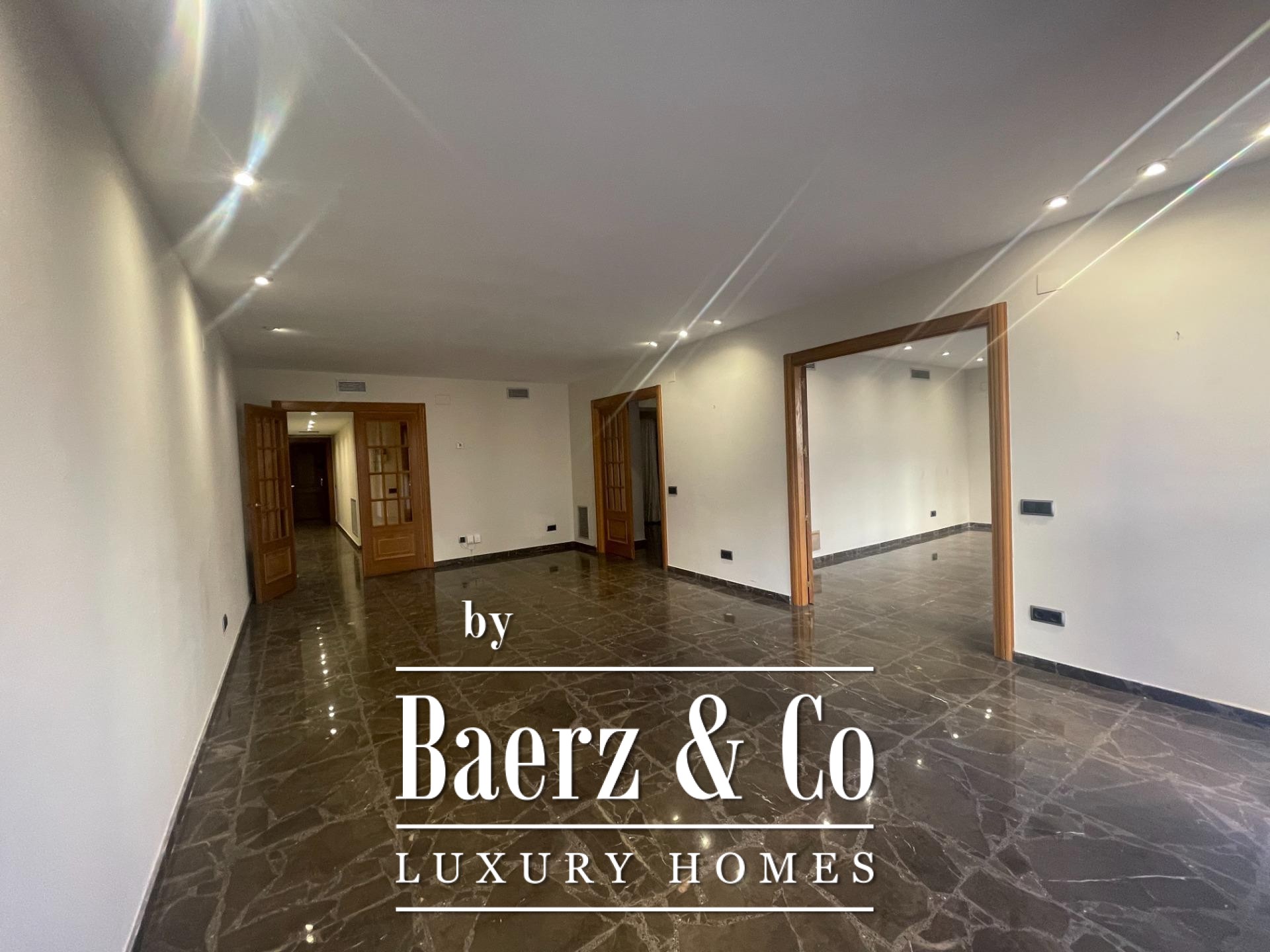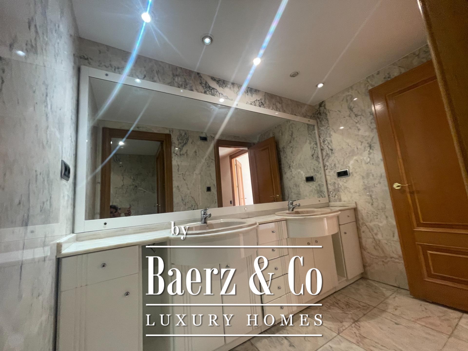 Apartment Valencia is defined by its serene presence on Colón Street within a modern building constructed in 1990. The 269 m² living area unfolds from a generous entrance hall into a broad living and dining space, illuminated by expansive windows that lend a sense of unhurried calm. Five double bedrooms, each with built-in wardrobes, include a master suite distinguished by its own dressing room. Three full bathrooms, one en suite, and a guest toilet complete the thoughtfully planned layout.
