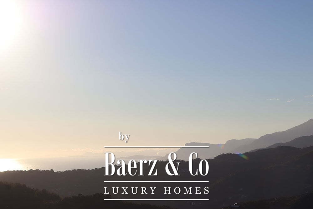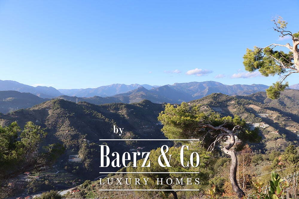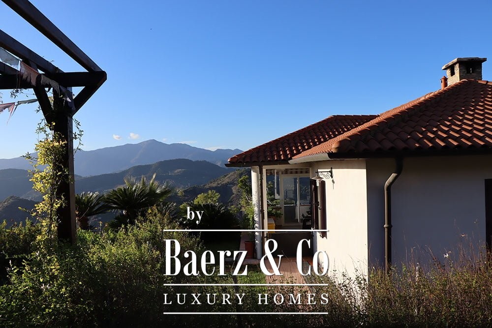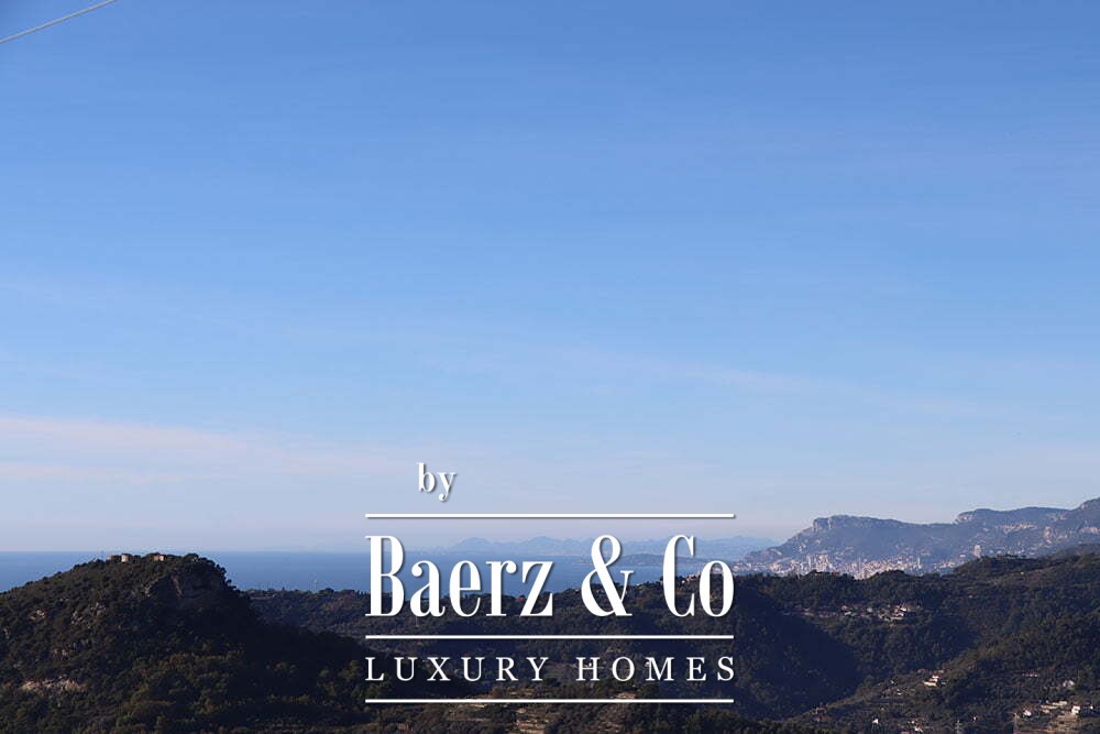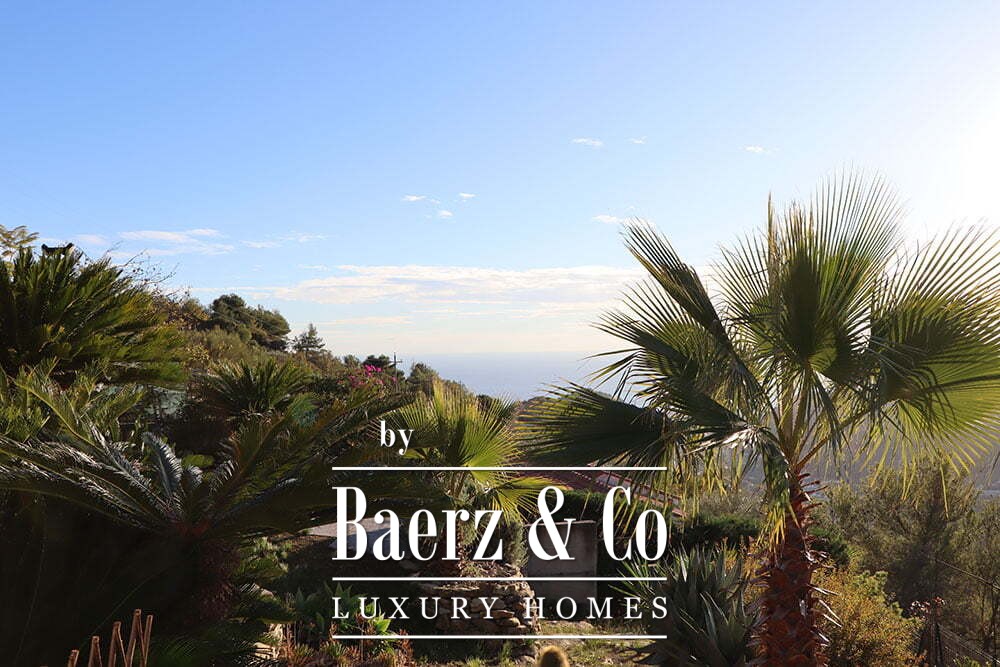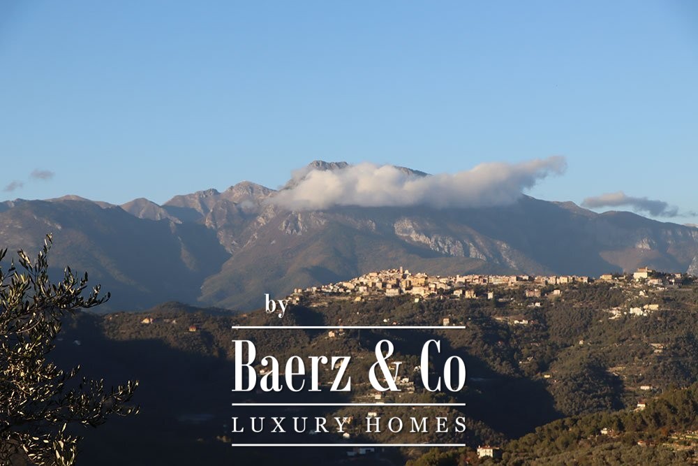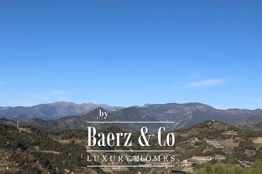 The gardens provide intimate shaded corners under a pergola, with ample space to incorporate a swimming pool if desired. The renowned beaches and coastal culture of Bordighera are a short ten-minute drive. This villa for sale in Vallebona balances cultivated seclusion and exceptional views within reach of the Ligurian coast.