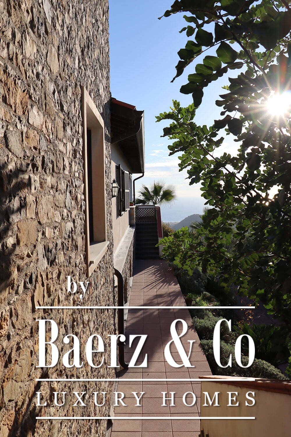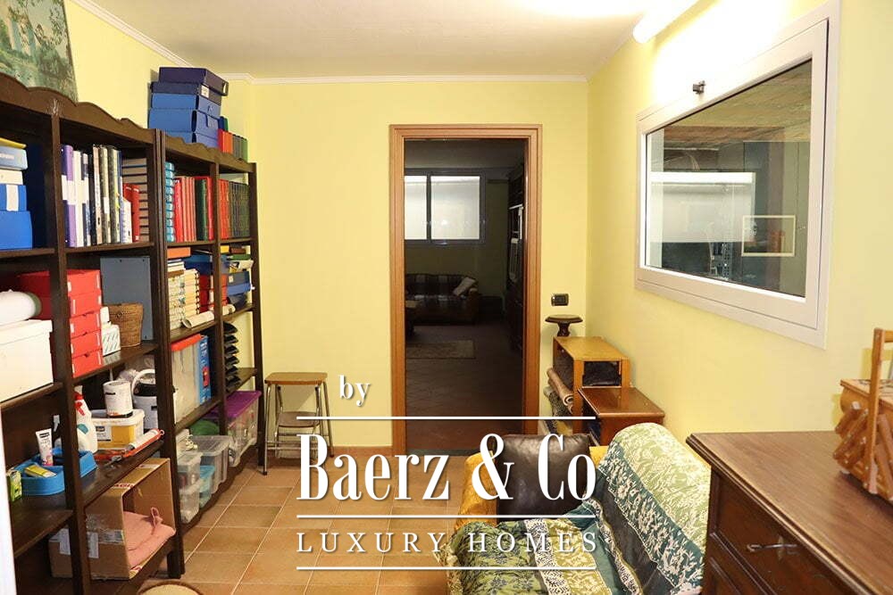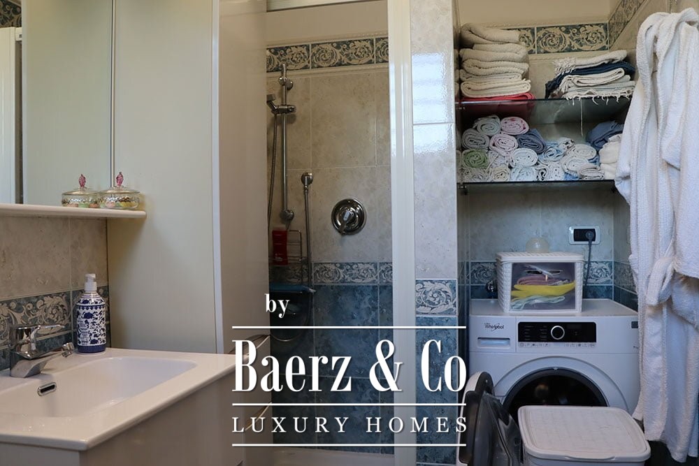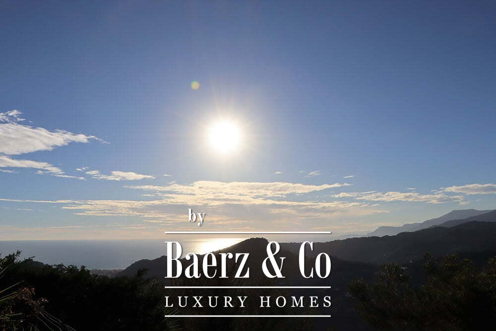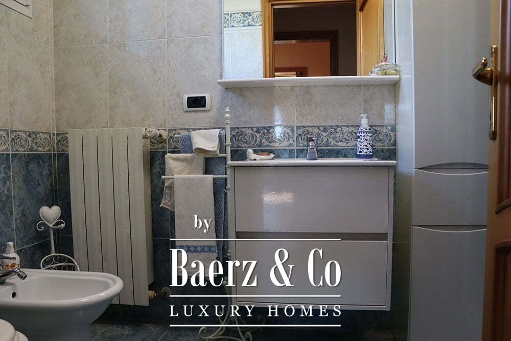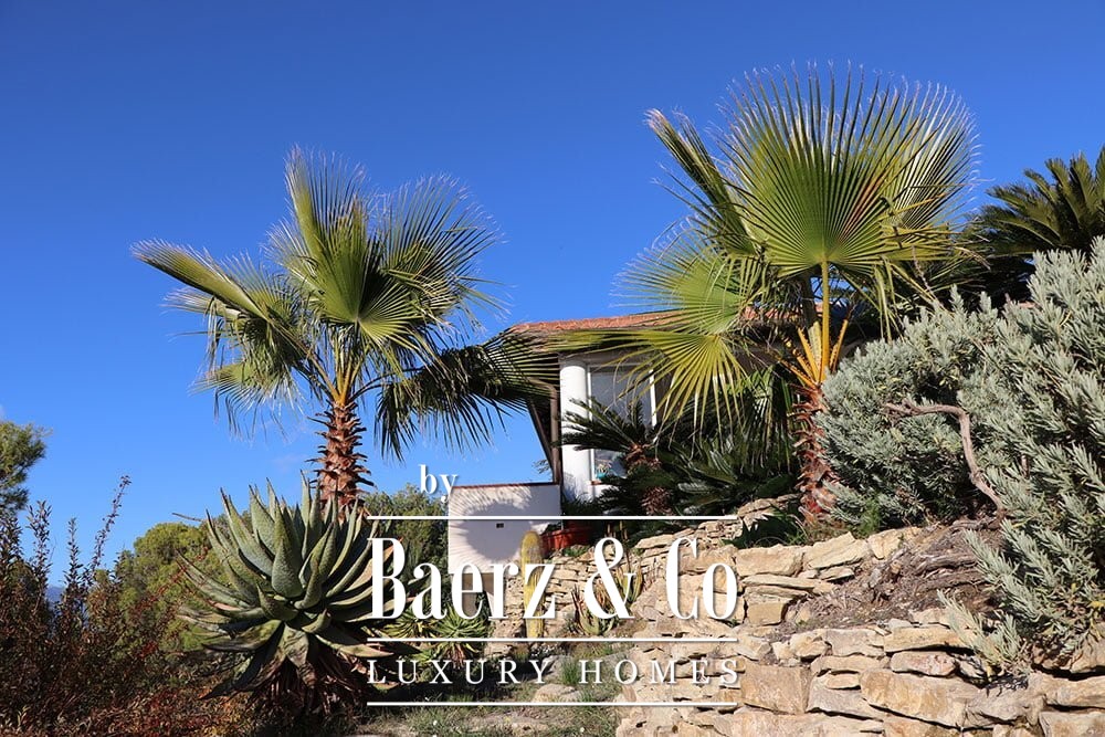 The gardens provide intimate shaded corners under a pergola, with ample space to incorporate a swimming pool if desired. The renowned beaches and coastal culture of Bordighera are a short ten-minute drive. This villa for sale in Vallebona balances cultivated seclusion and exceptional views within reach of the Ligurian coast.