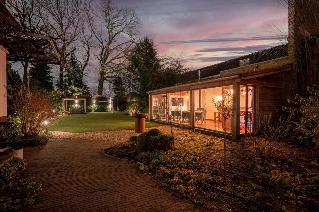 Villa Veenendaal stands as a testament to thoughtful restoration and bespoke craftsmanship. This 1937 villa, 'Domus Paterna', is gracefully set along Kerkewijk, offering 160 m² of living space and a generous plot of 1,043 m². The property exudes authenticity, with features such as a vestibule, original glass-in-lead, a living room en-suite, and a staircase with a landing. Expanses of light and classic finishes define each room, while a modern veranda with wood stove and bar overlooks lush, landscaped gardens for privacy and outdoor enjoyment.
