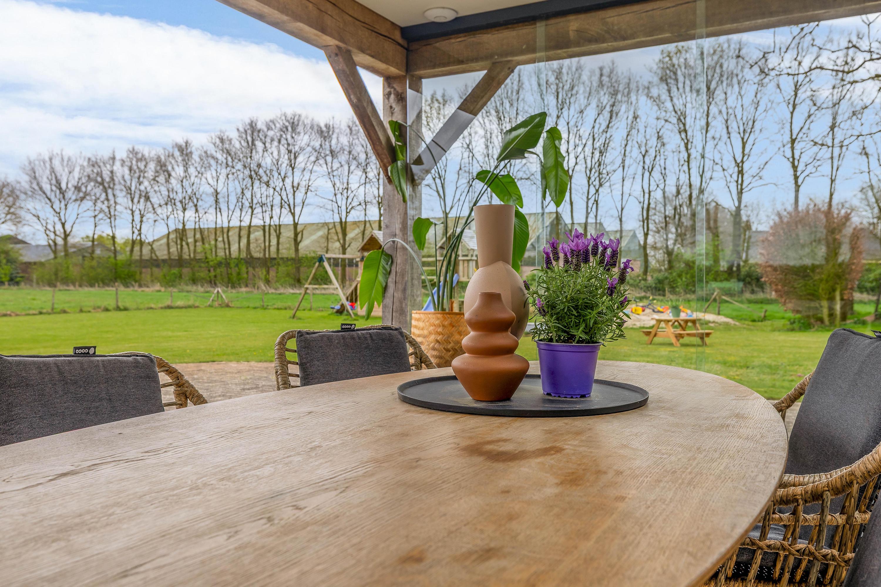 For lovers of the outdoors, the plot is an essential part of the experience. The garden surrounding the house features a covered terrace, a spacious lawn and an orchard with various fruit trees. The adjacent pasture also makes this location particularly suitable for keeping (pet) animals. Part of the plot is landscaped with rows of trees and natural vegetation, which contributes to the quality and biodiversity of the whole. Landscape management applies to this part (STILA scheme, until October 2027, with subsidy).
