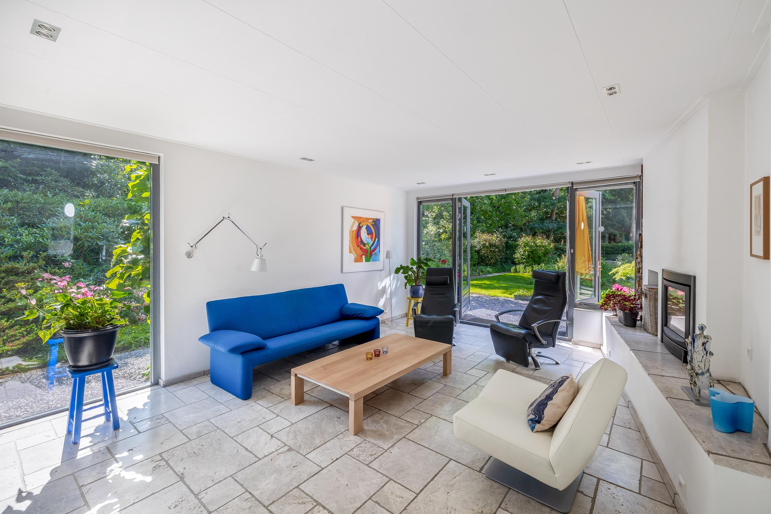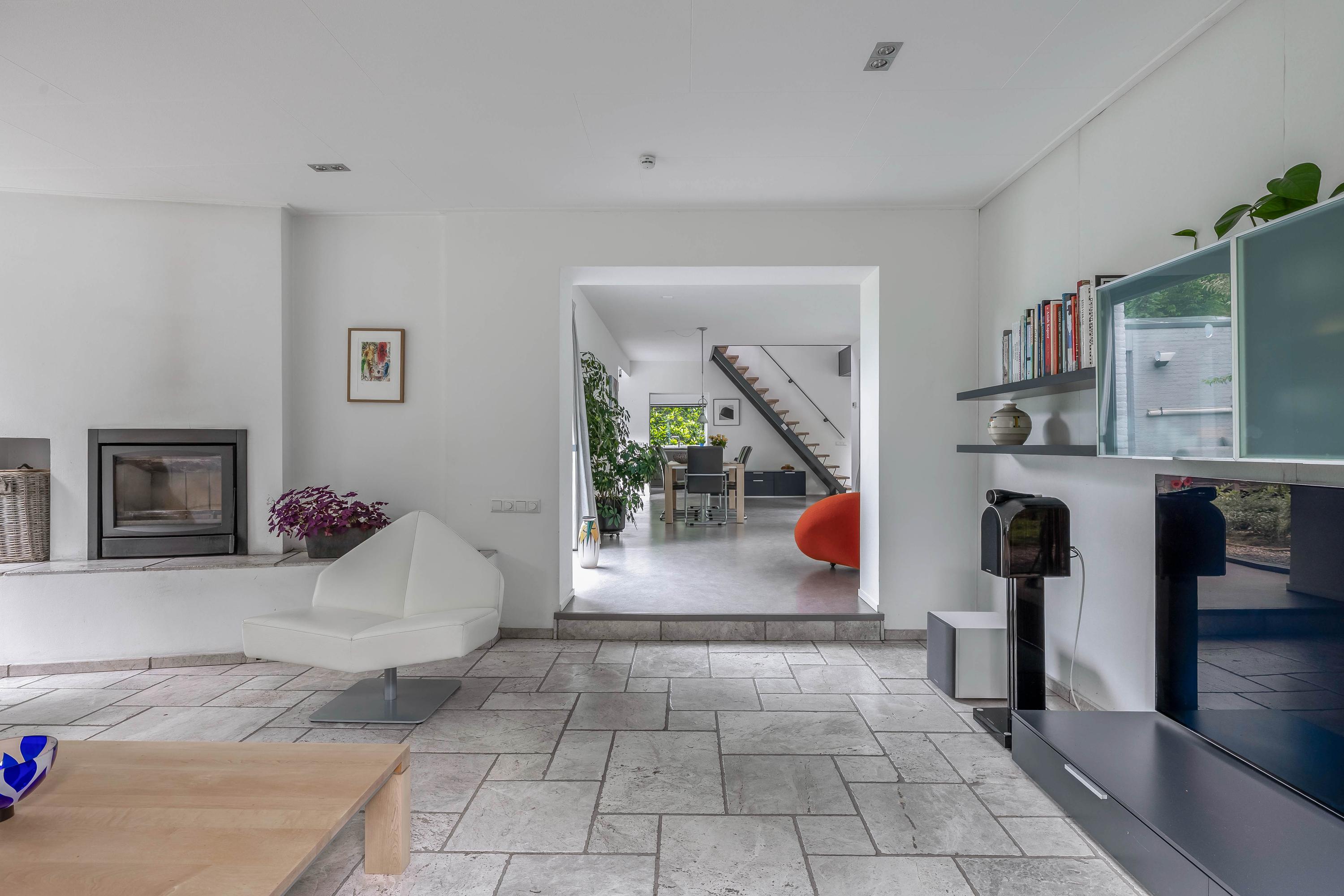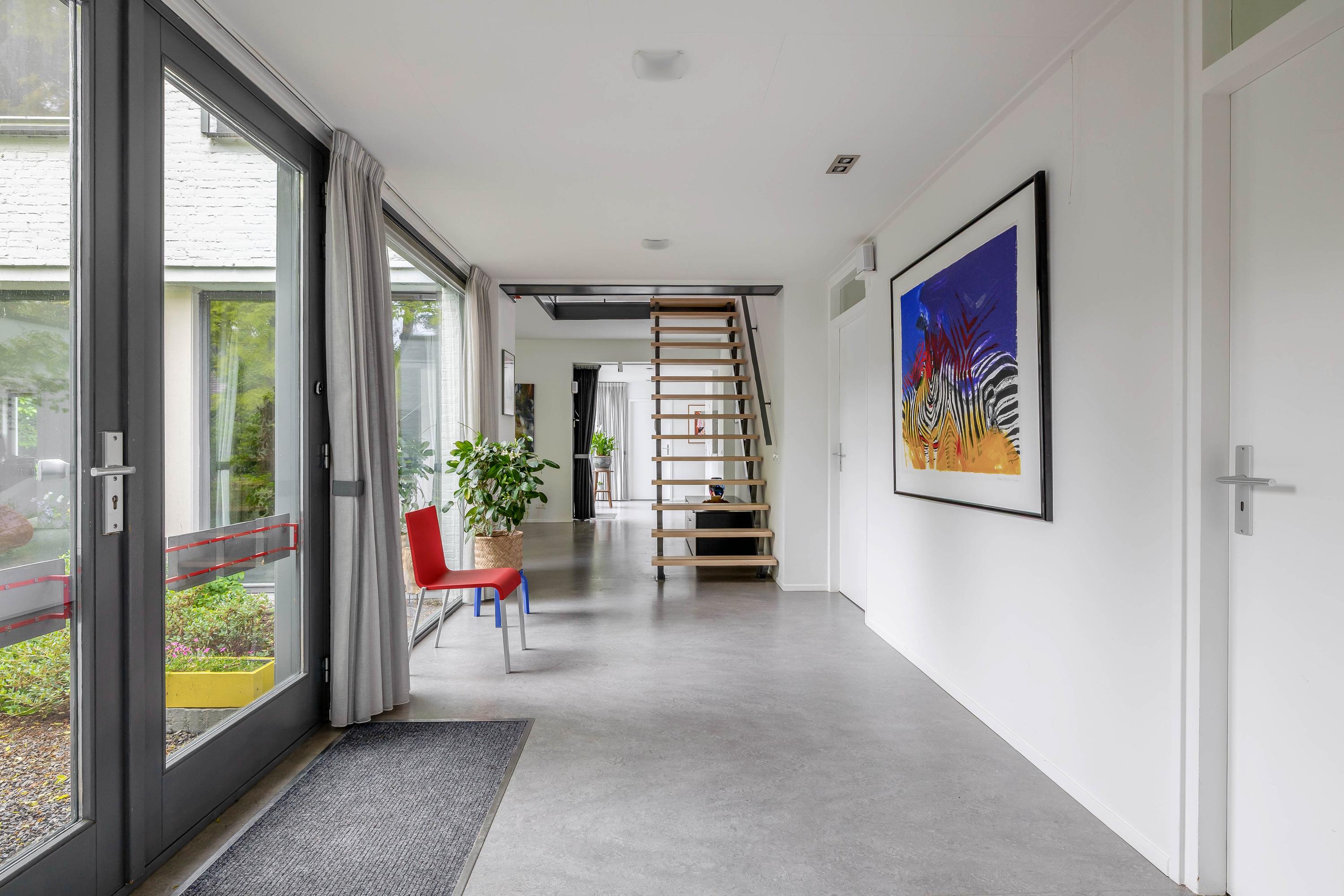 Sellers on their forest villa in Vessem: “We fell in love with the architecture”. After twenty years, the sellers are saying goodbye to their special place on the outskirts of Vessem. “At the time, we fell in love with the shape and the light, among other things”. When the seller visited the house with his then wife in the early 2000s, it was love at first sight. 'The unique architecture appealed to us immediately,' he says. 'The abundance of light and the sightlines made it feel like home right away. Later, the seller discovered that the villa was designed according to the so-called plastic number. This is a theory of proportions in which spaces and lines reinforce each other according to fixed measurements. These principles are also applied within the Bossche School, a post-war architectural movement. ‘Someone came to visit and immediately said: this is one of those houses. I had never heard of it before. But when I looked into it, it made perfect sense.’ He also finds the fifteen stained-glass windows in the style of the famous Dutch artist Piet Mondriaan remarkable. ‘I had them designed. They fit beautifully with the architecture.’