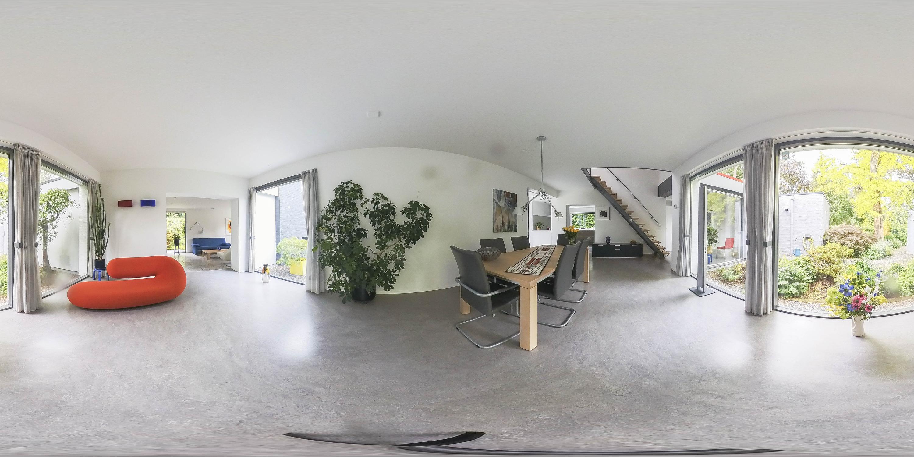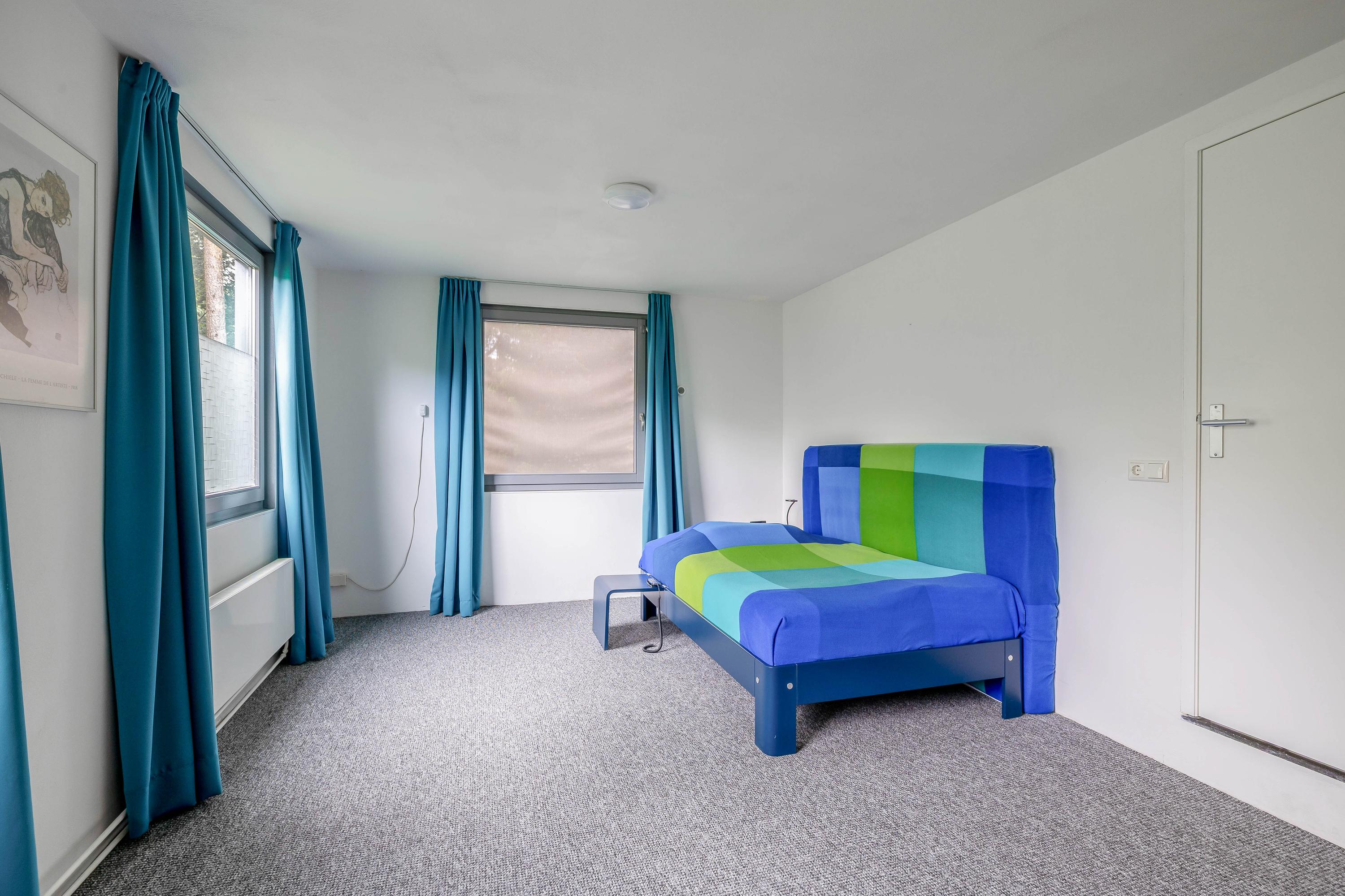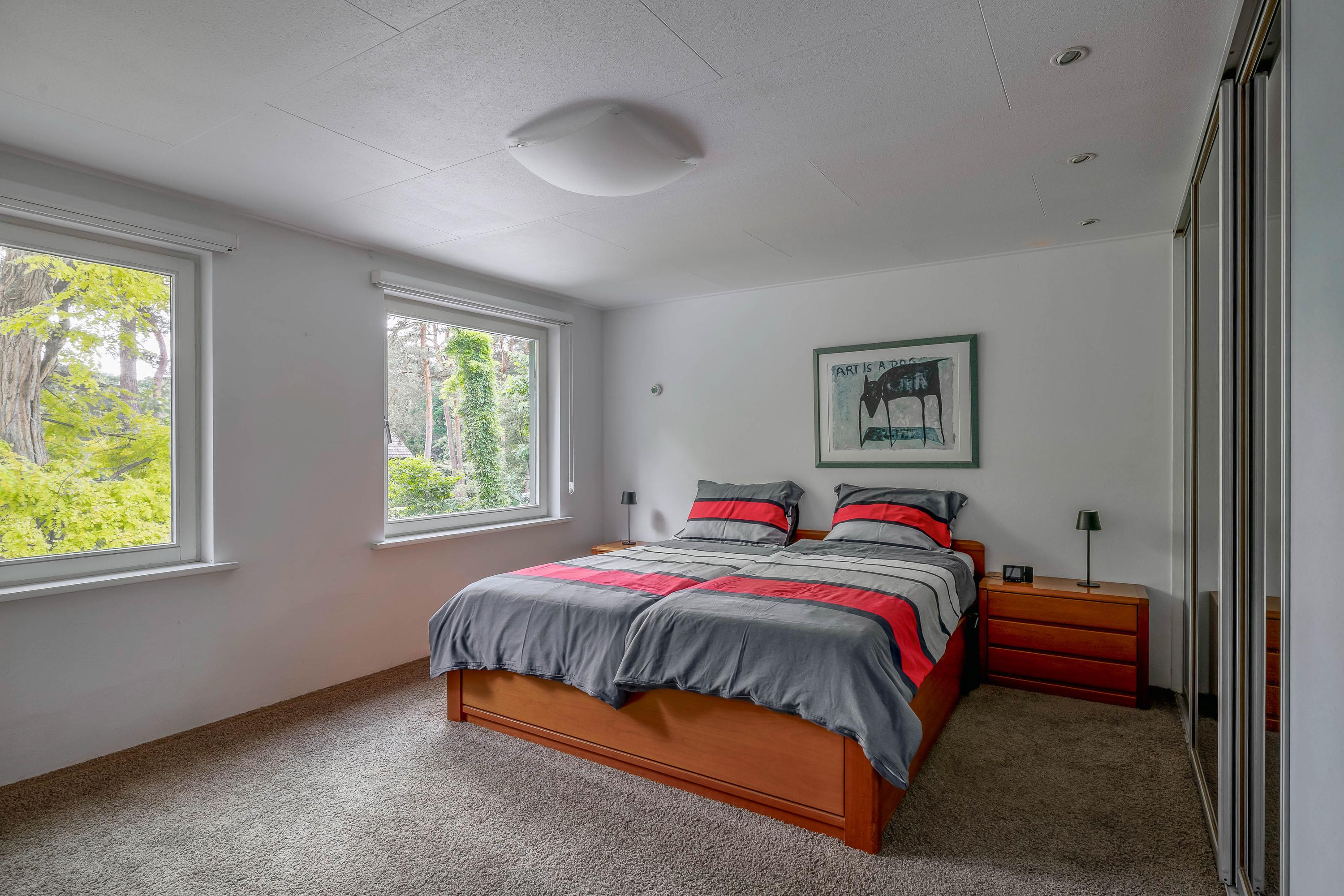 Sellers on their forest villa in Vessem: “We fell in love with the architecture”. After twenty years, the sellers are saying goodbye to their special place on the outskirts of Vessem. “At the time, we fell in love with the shape and the light, among other things”. When the seller visited the house with his then wife in the early 2000s, it was love at first sight. 'The unique architecture appealed to us immediately,' he says. 'The abundance of light and the sightlines made it feel like home right away. Later, the seller discovered that the villa was designed according to the so-called plastic number. This is a theory of proportions in which spaces and lines reinforce each other according to fixed measurements. These principles are also applied within the Bossche School, a post-war architectural movement. ‘Someone came to visit and immediately said: this is one of those houses. I had never heard of it before. But when I looked into it, it made perfect sense.’ He also finds the fifteen stained-glass windows in the style of the famous Dutch artist Piet Mondriaan remarkable. ‘I had them designed. They fit beautifully with the architecture.’