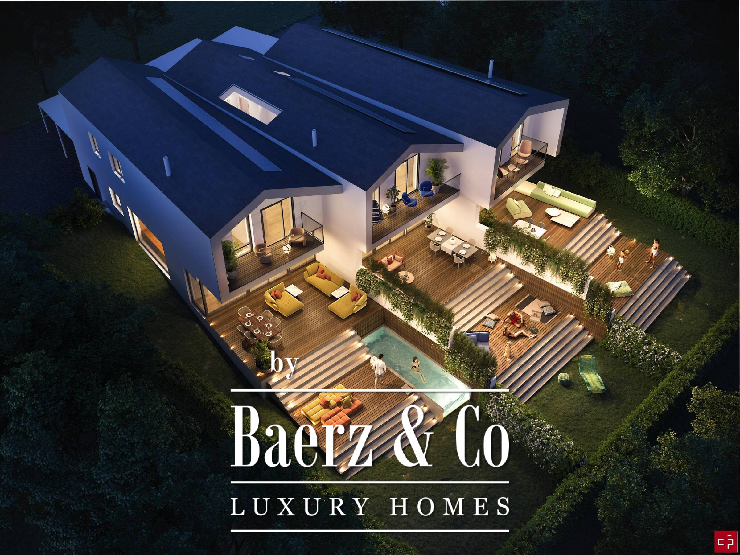 High-end finishes set an understated tone, complemented by quality materials and carefully managed transitions between indoors and out. Private gardens extend the living area, ideal for moments of quiet reflection, open-air gatherings, or a peaceful swim should a pool be desired. Terraces and balconies expand the sense of space, while features such as a garage, practical laundry room, and Minergie heating speak to life designed for both beauty and utility.