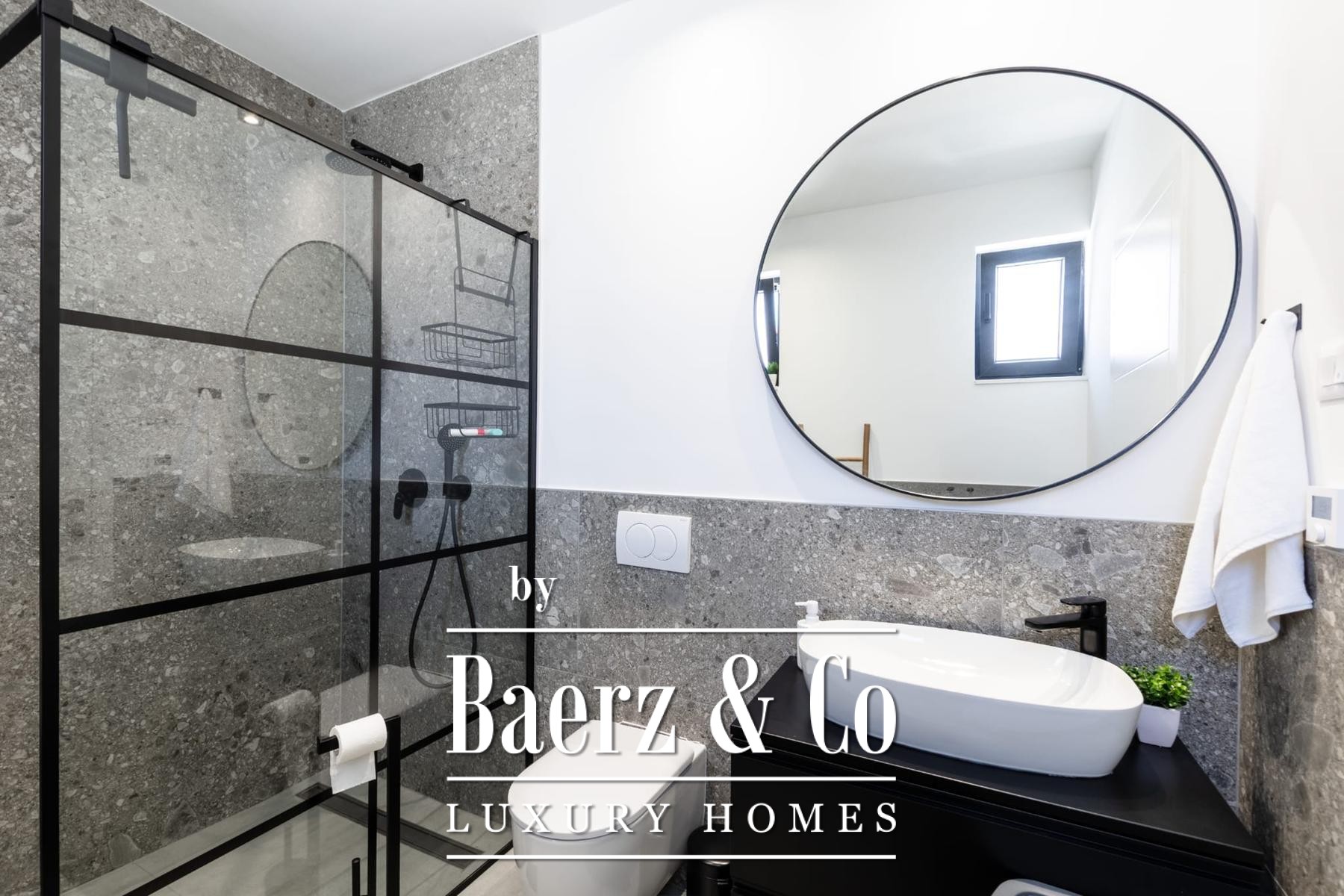 The ground floor unfolds over 92.40m² with an open kitchen, inviting dining area, tranquil living room, and a considered bathroom, balanced around the rhythm of daily gathering and retreat. A graceful staircase leads to the first floor, where 96.5m² host three en suite bedrooms, including a master suite, and access to a balcony of 13.9m², ushering in light and distant sea air. A signature feature, the 72.80m² roof terrace, presents a jacuzzi, summer kitchen, and immersive sea view, shaping a sanctuary above the landscape.