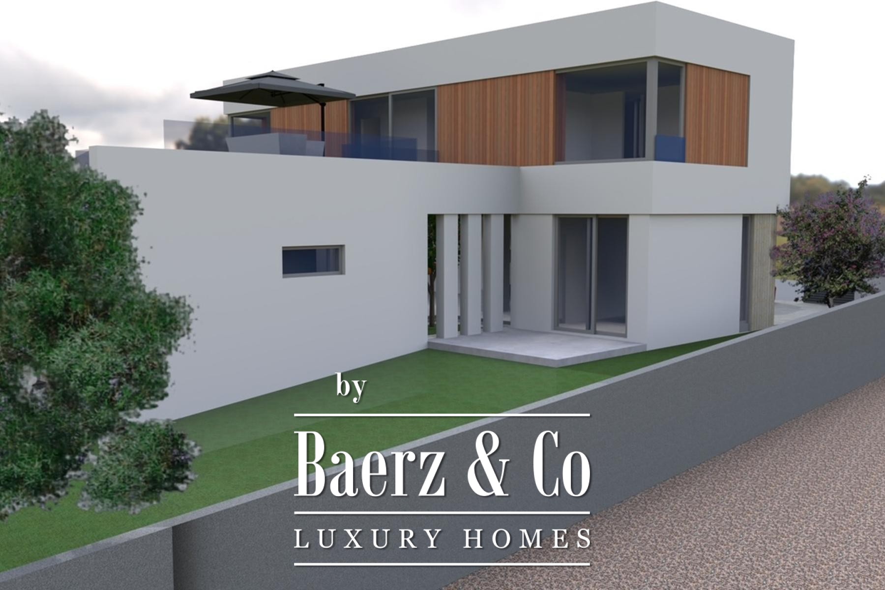 Across two levels, interconnected by both internal and external staircases, the spatial composition flows seamlessly from a generous entrance to the open living, kitchen and dining areas. The design encourages both privacy and togetherness. The ground floor houses a guest suite with private bathroom, an additional guest toilet, and a relaxation wing featuring a fitness zone, sauna, and outdoor pool. A broad terrace with fireplace sets the scene for social evenings or quiet contemplation.