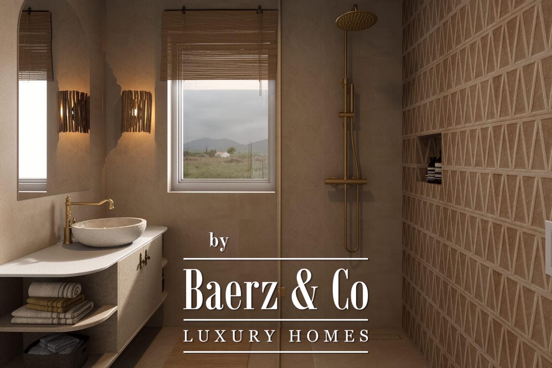 Upstairs, three bedrooms and two bathrooms open onto a covered terrace, encouraging a flow of air and light. Thoughtful material choices—stone, wood, and high-quality finishes—anchor the villa in understated luxury, while inviting warmth.