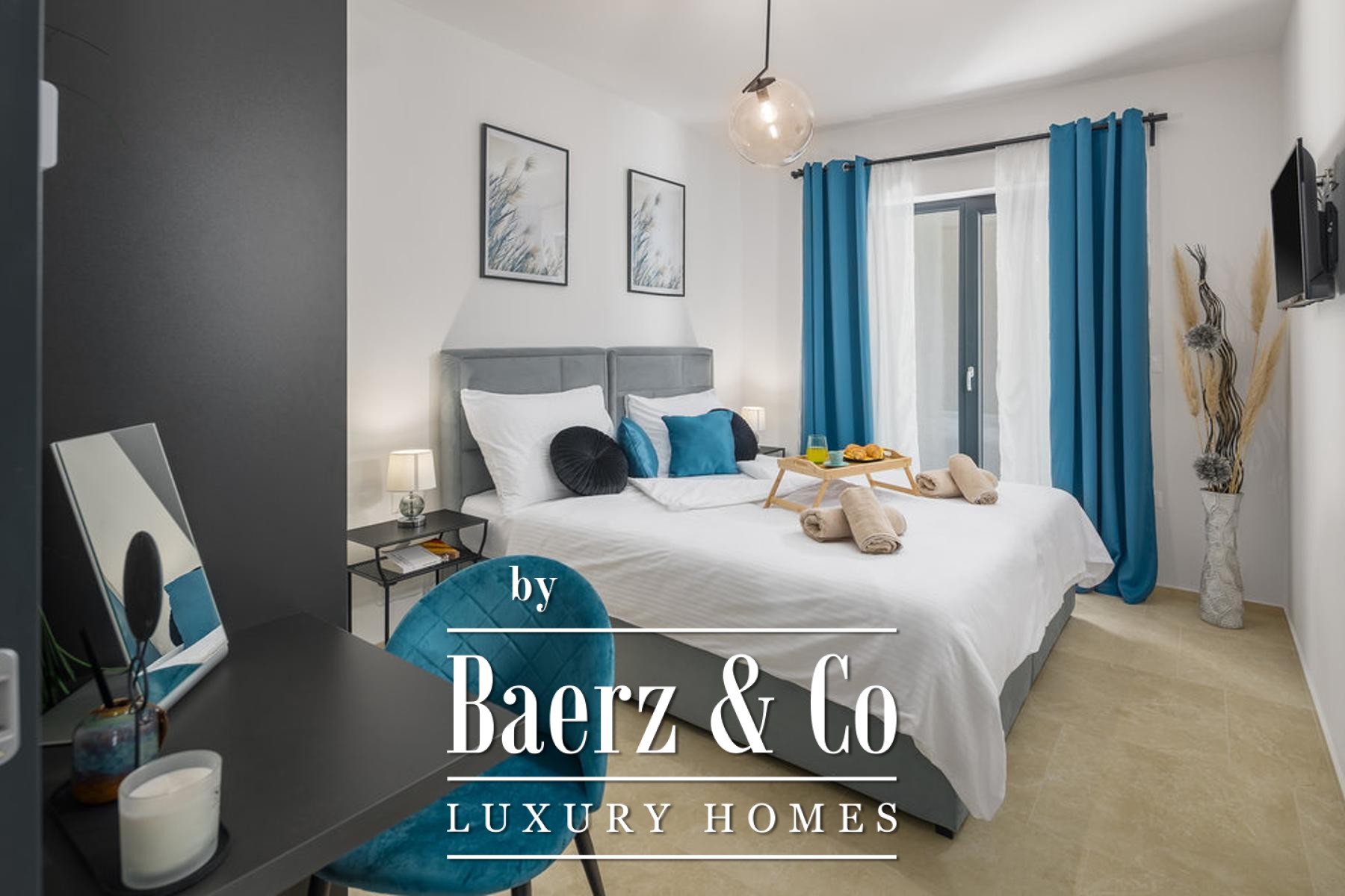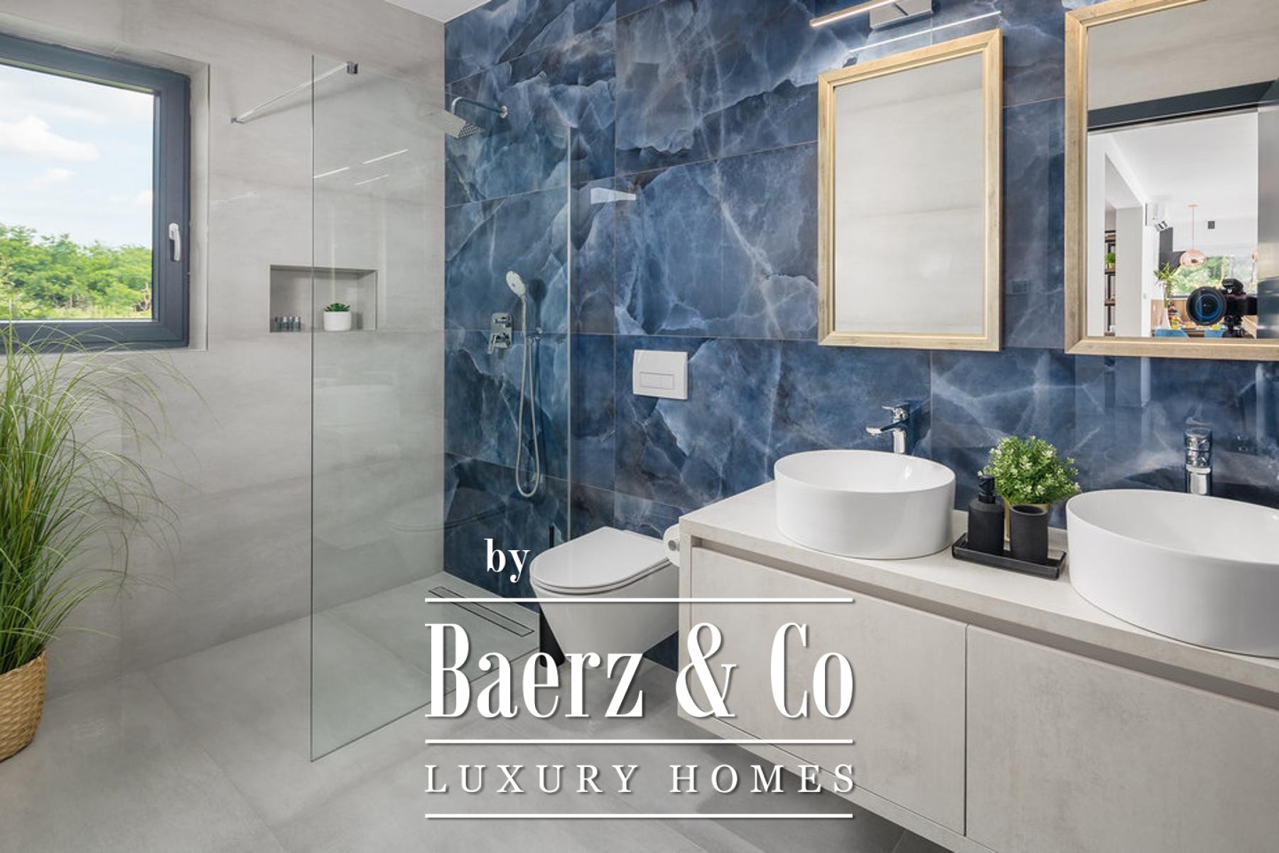bathroom, and each room has direct access to its own terrace with a beautiful view of nature.On the plot there is a sunbathing area, a heated pool with a heat pump with a total size of 38.50 m2, and a covered area with a barbecue and a place to dine with your loved ones.The best materials and equipment were used for this property, high quality construction, aluminum joinery, underfloor heating system through a heat pump. All rooms are air-conditioned. First-class parquet and ceramics, all furniture is designer and of well-known brands.A first-class property that deserves attention.For more information or to arrange a viewing, please feel free to contact us.