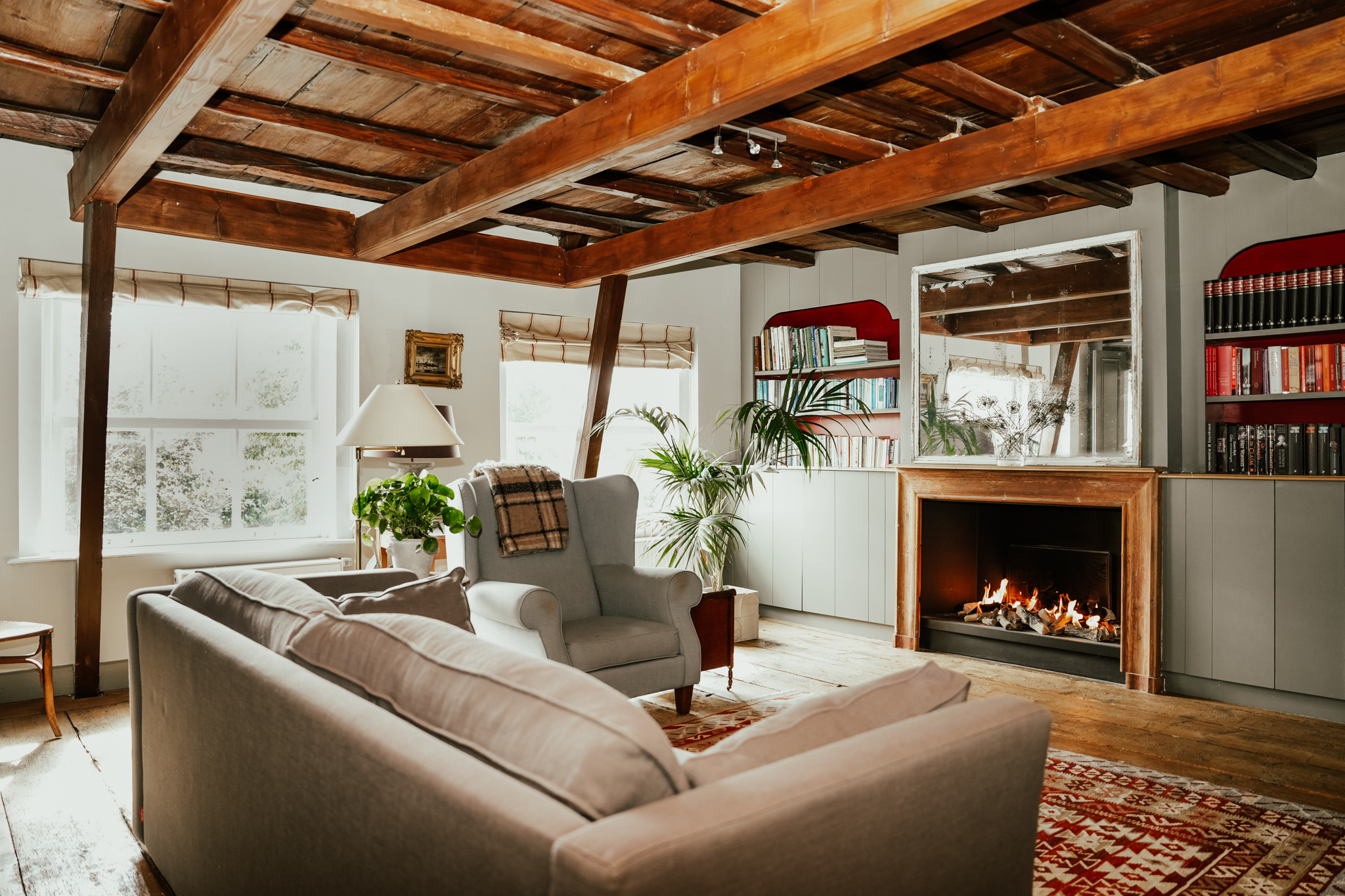 La casa principal ofrece una secuencia de espacios elegantes: salón inundado de luz con chimenea abierta, comedor orientado al jardín, cocina de roble a medida presidida por una estufa AGA y una chimenea de piedra, y despacho con vistas a las históricas avenidas del pueblo. Cada estancia evidencia una conservación esmerada—altos ventanales de guillotina, parquet estilo Versalles y vigas originales—respaldados por innovaciones tecnológicas discretas que incluyen calefacción por suelo radiante, acristalamiento con aislamiento al vacío y nuevas instalaciones solares. Una casa de invitados completamente independiente, con su propia zona de estar y baño, ofrece comodidad tanto a visitantes como a familiares.