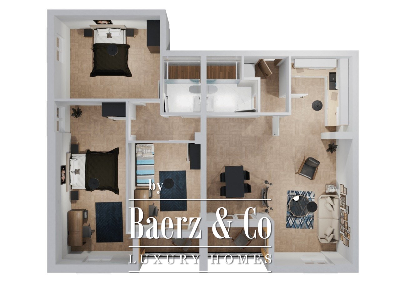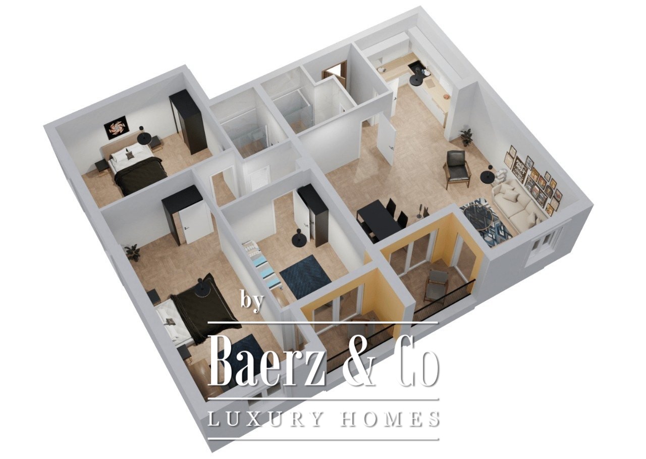 L’agencement de l’appartement, soigné et fonctionnel, comprend un espace de vie ouvert sur une cuisine et une salle à manger, trois chambres, deux salles de bains ainsi que deux terrasses. Les intérieurs seront livrés entièrement finis, avec des sols posés, des surfaces carrelées, la climatisation et des salles de bains entièrement équipées. L’altitude de l’étage garantit une lumière abondante et met en valeur à la fois le littoral et les reliefs majestueux qui façonnent l’environnement.