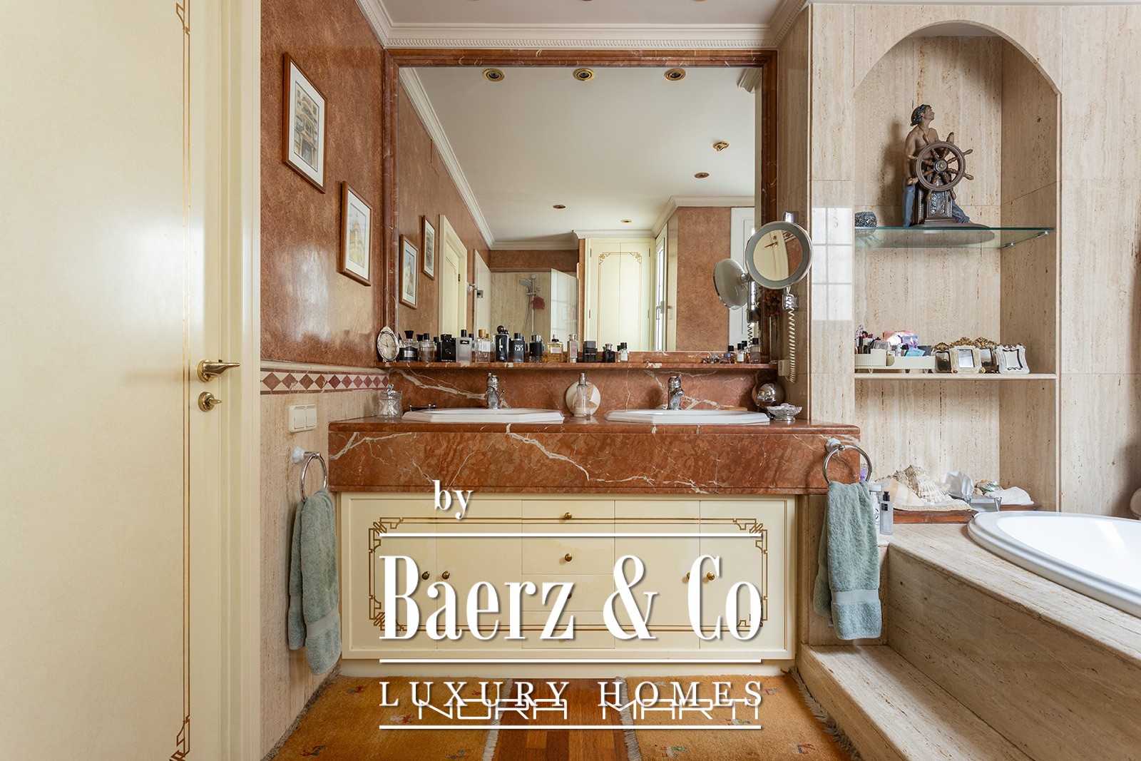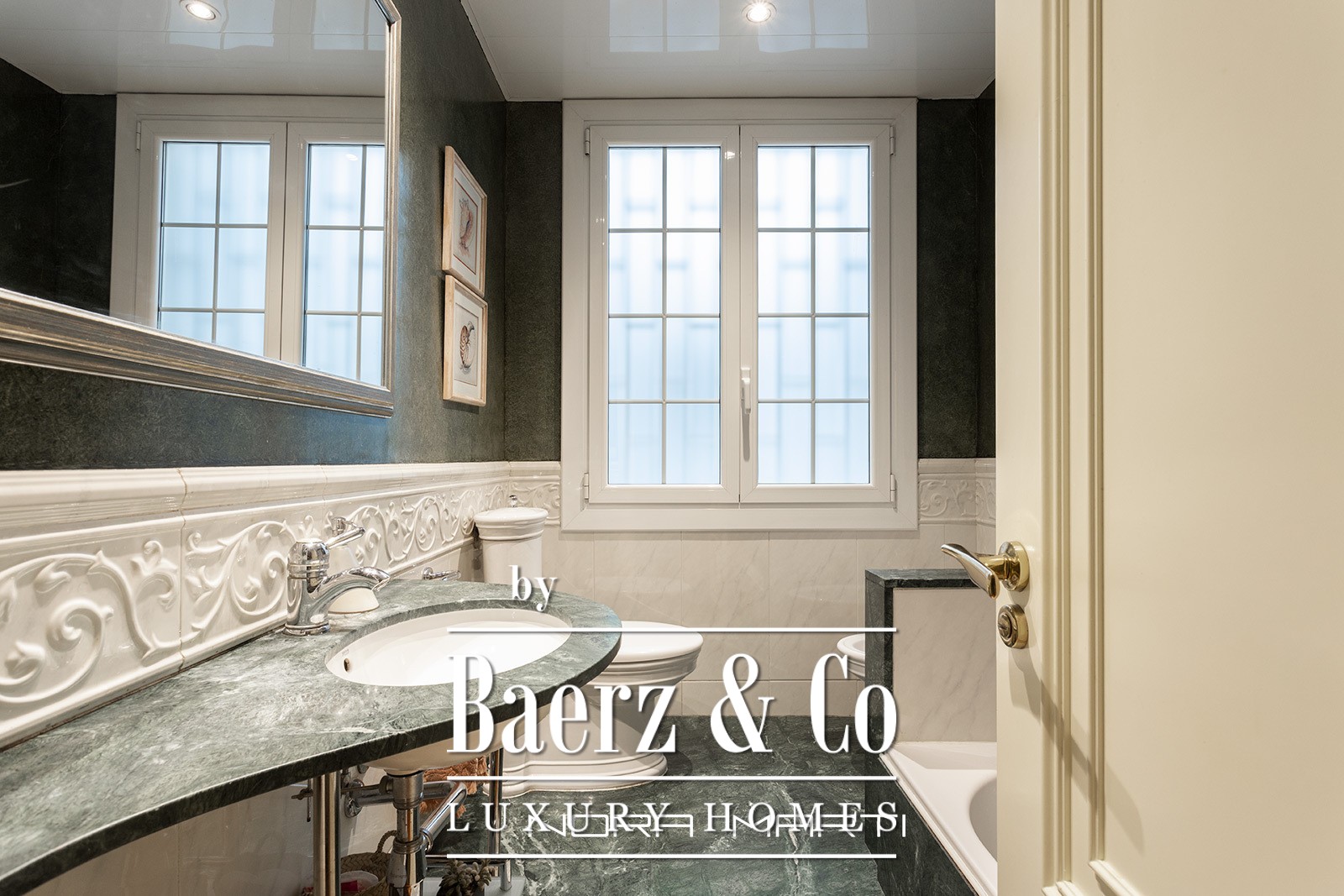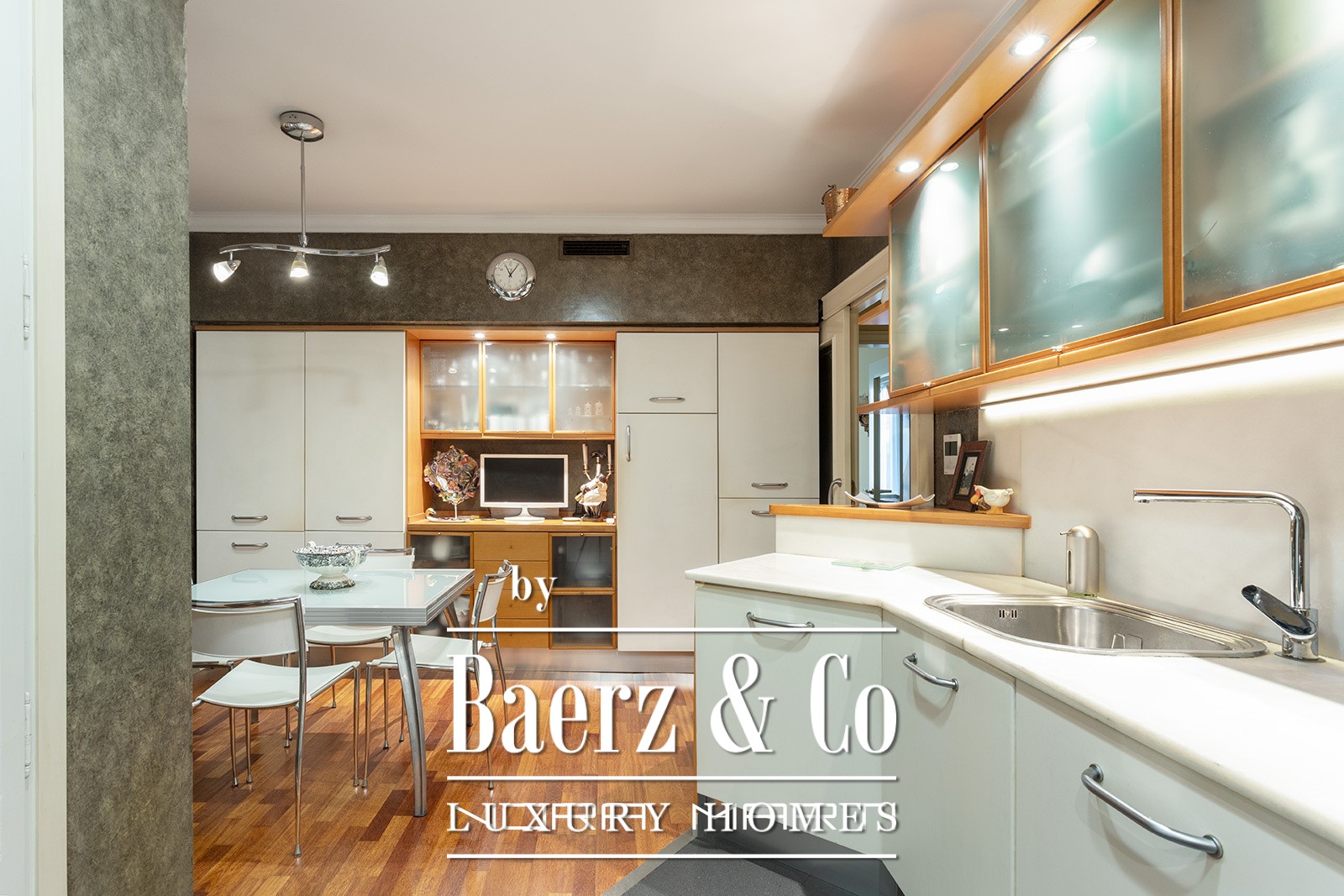 La pièce à vivre et la salle à manger sont spacieuses, baignées de lumière naturelle, et bénéficient d’un accès direct à deux balcons orientés au nord-est, qui offrent un point de vue paisible sur le rythme quotidien de la ville. La cuisine neuve, équipée d’appareils électroménagers intégrés, est prête pour toute expérience culinaire et affiche des lignes résolument contemporaines.