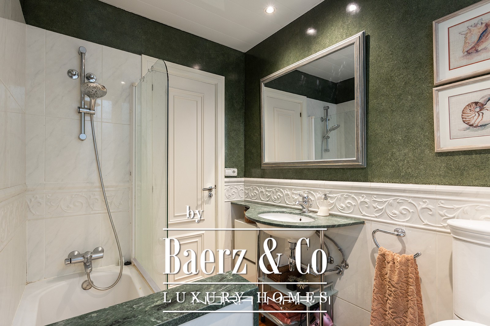 Le confort climatique est assuré toute l’année par un chauffage au sol et une climatisation installés dans chaque pièce. Les fenêtres de la suite donnent sur une cour intérieure calme, constituant un espace propice à la détente au cœur de Barcelone. L’emplacement offre un accès direct aux commerces et aux transports en commun, au sein d’une architecture caractéristique et prisée de ce quartier recherché. Ce bien incarne la modernité discrète dans l’un des cadres les plus convoités de Barcelone.